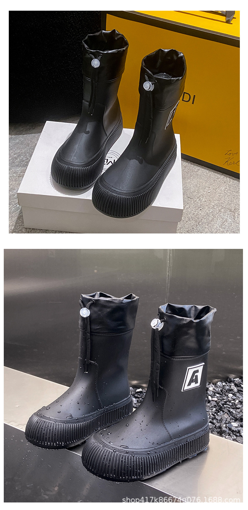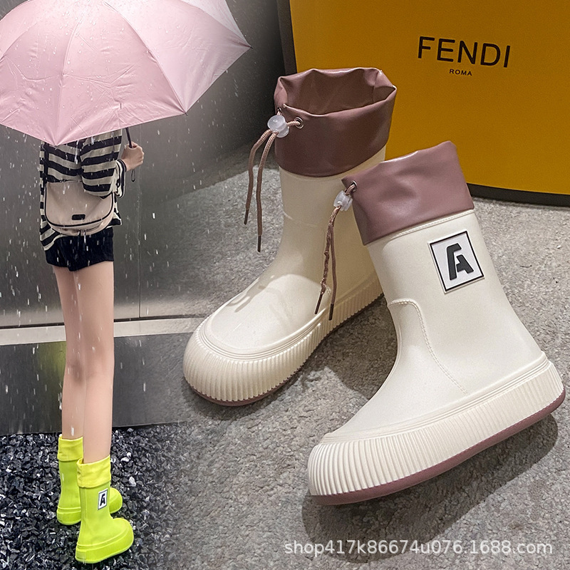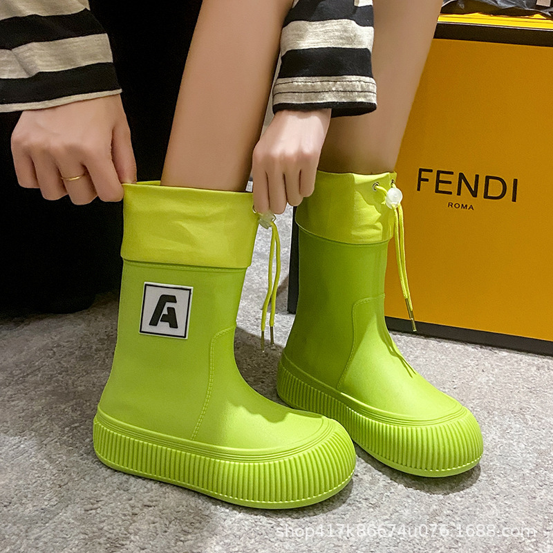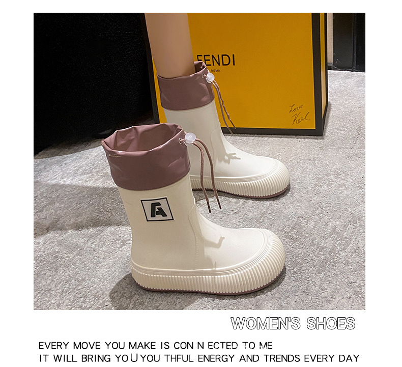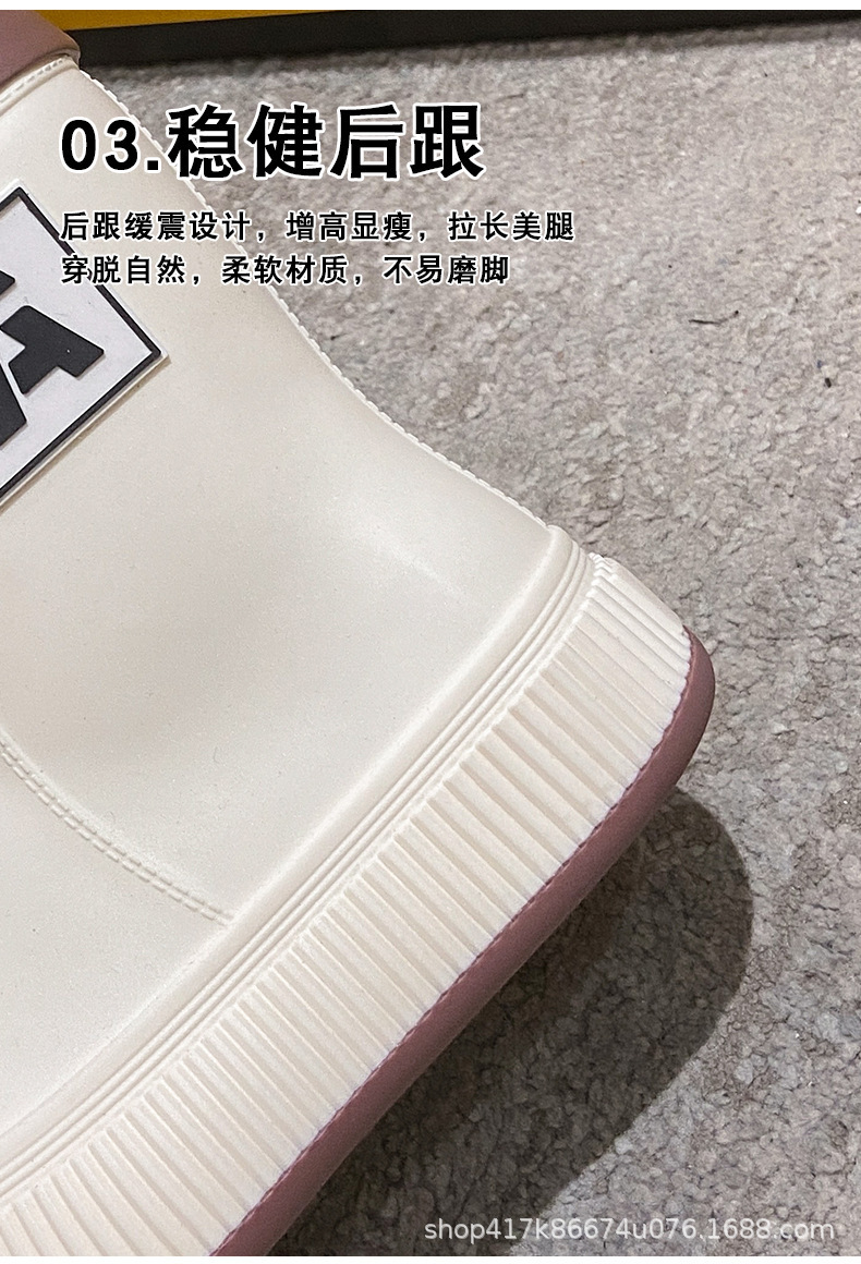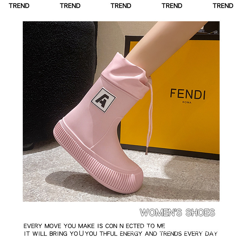 재고 한국 스타일 트렌디 한 미드 튜브 패셔너블 여성용 부츠 편안한 방수 미끄럼 방지 경량 소프트 내마모성 두꺼운 하단 비 부츠