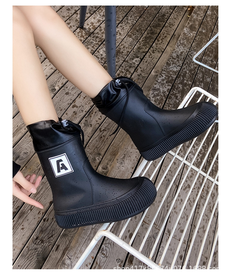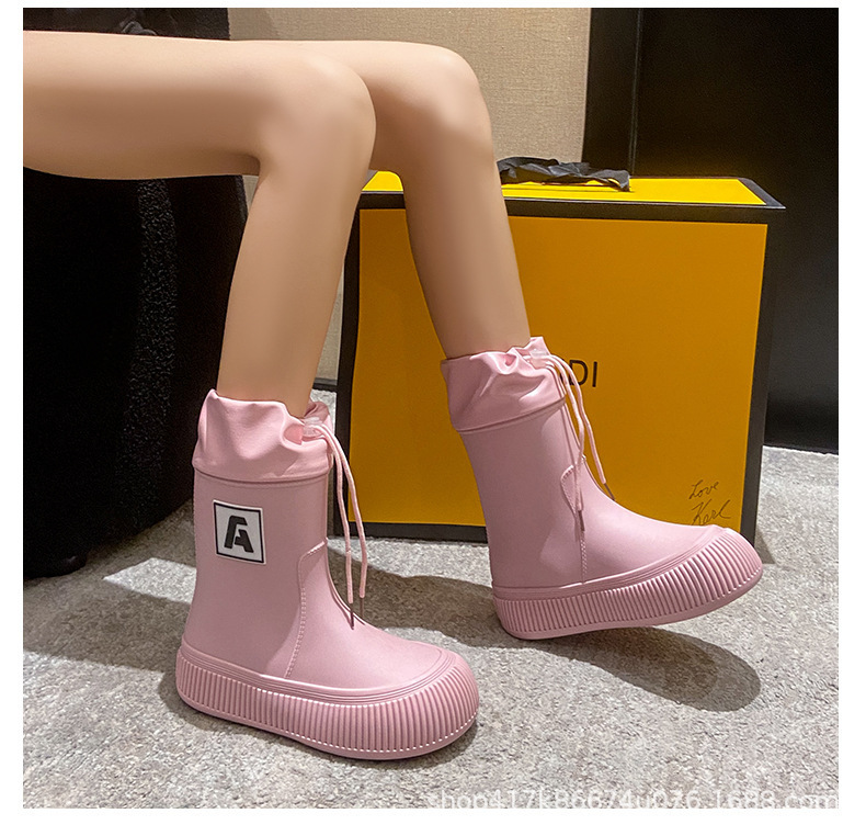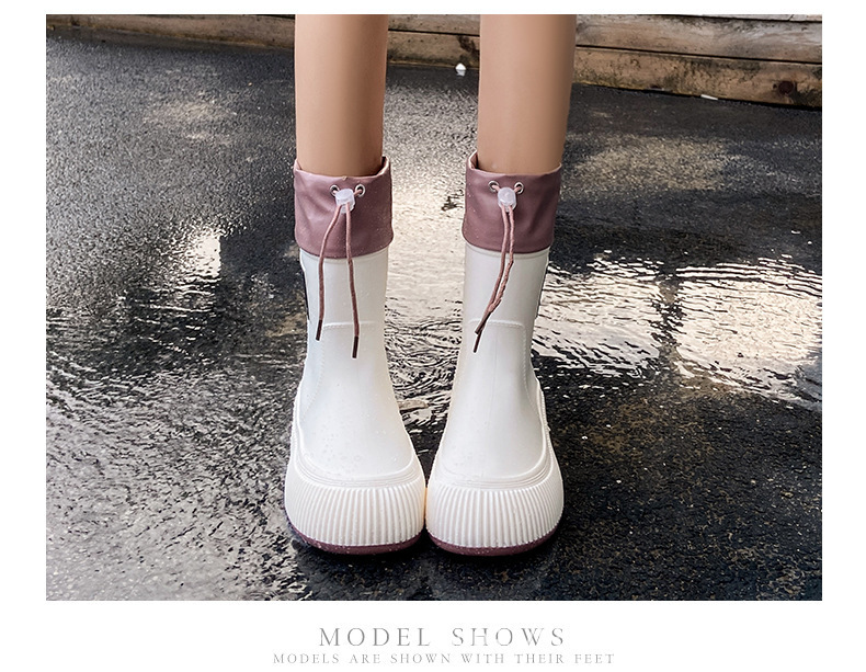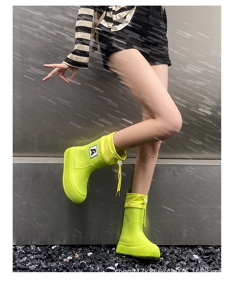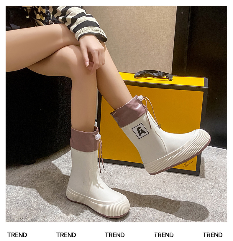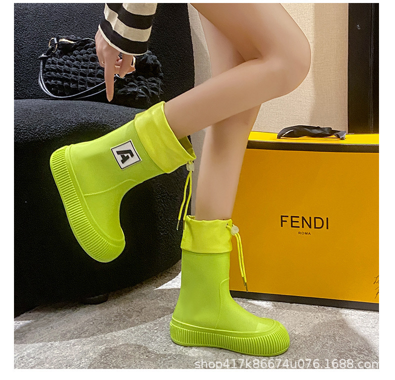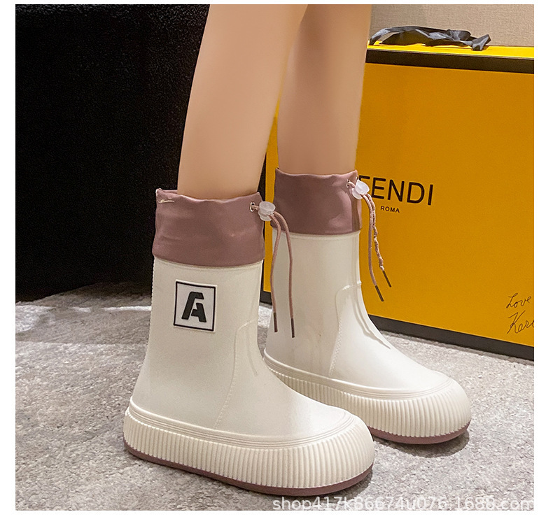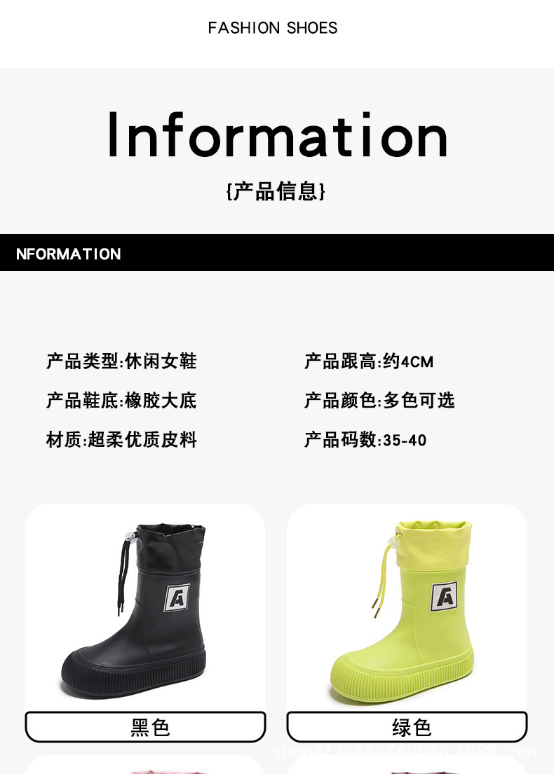재고 한국 스타일 트렌디 한 미드 튜브 패셔너블 여성용 부츠 편안한 방수 미끄럼 방지 경량 소프트 내마모성 두꺼운 하단 비 부츠