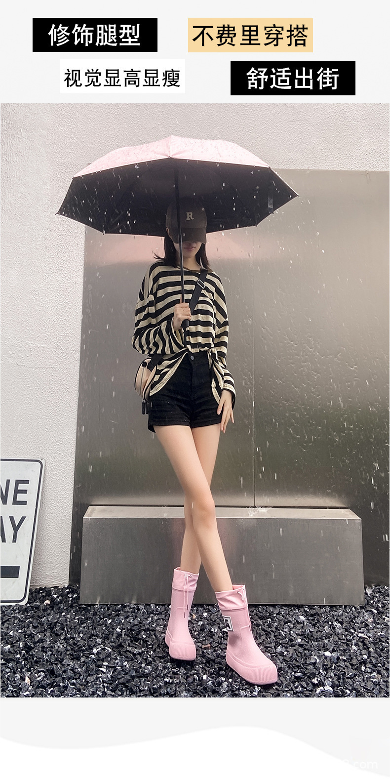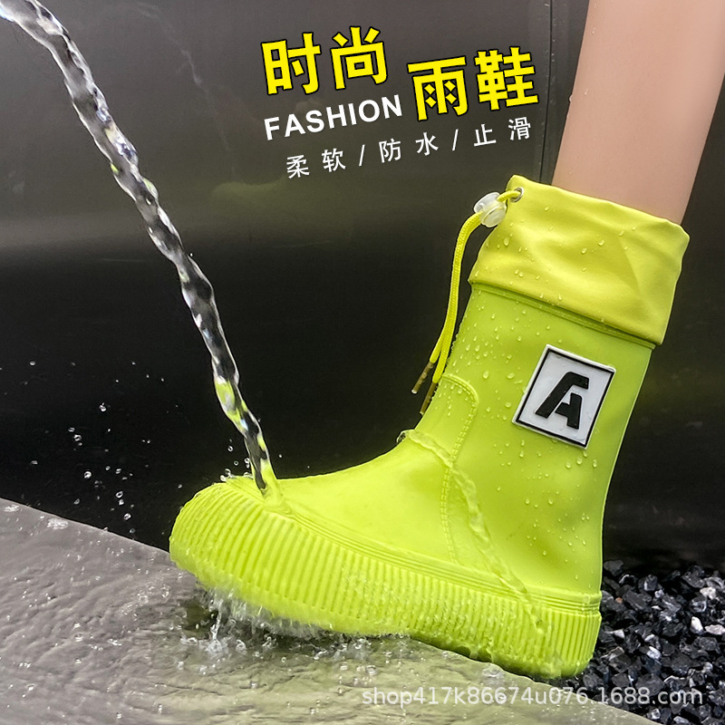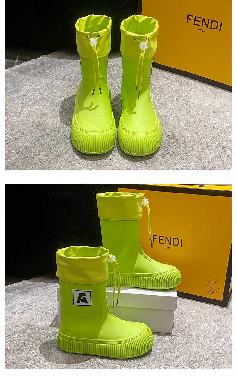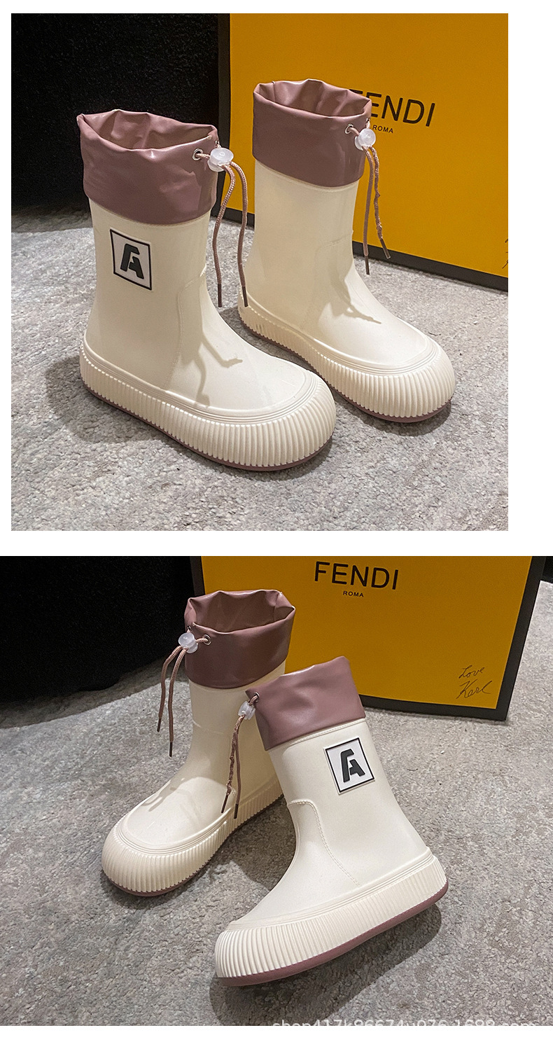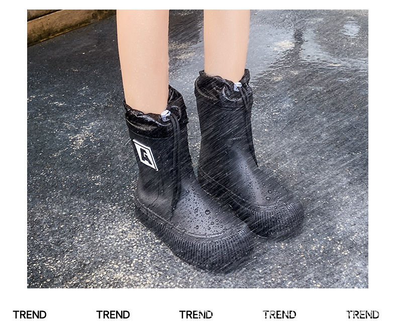 재고 한국 스타일 트렌디 한 미드 튜브 패셔너블 여성용 부츠 편안한 방수 미끄럼 방지 경량 소프트 내마모성 두꺼운 하단 비 부츠