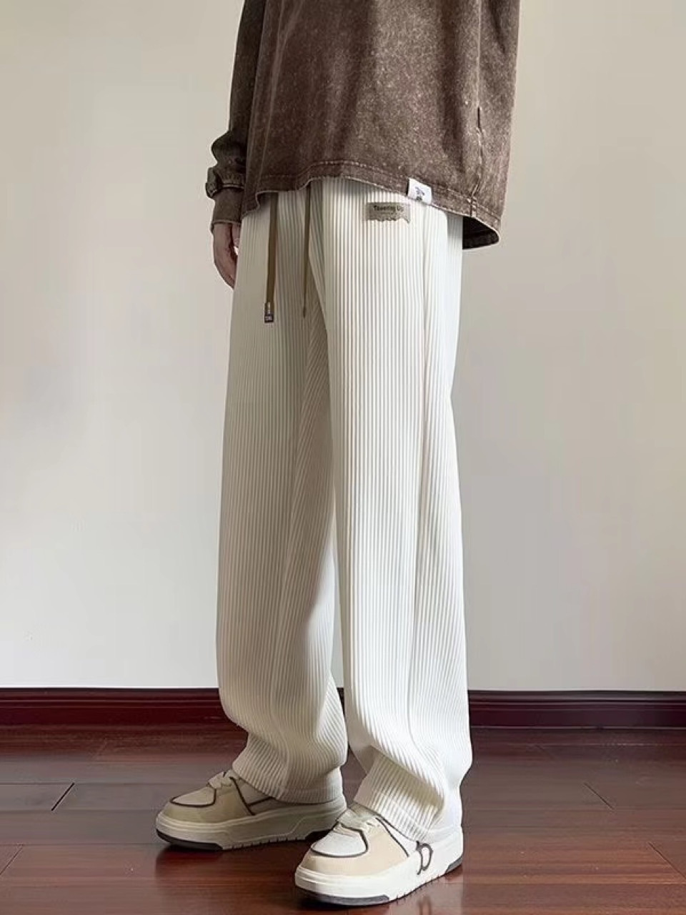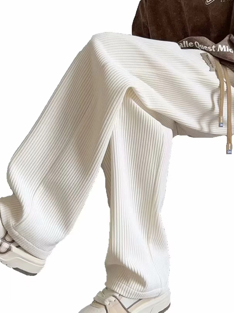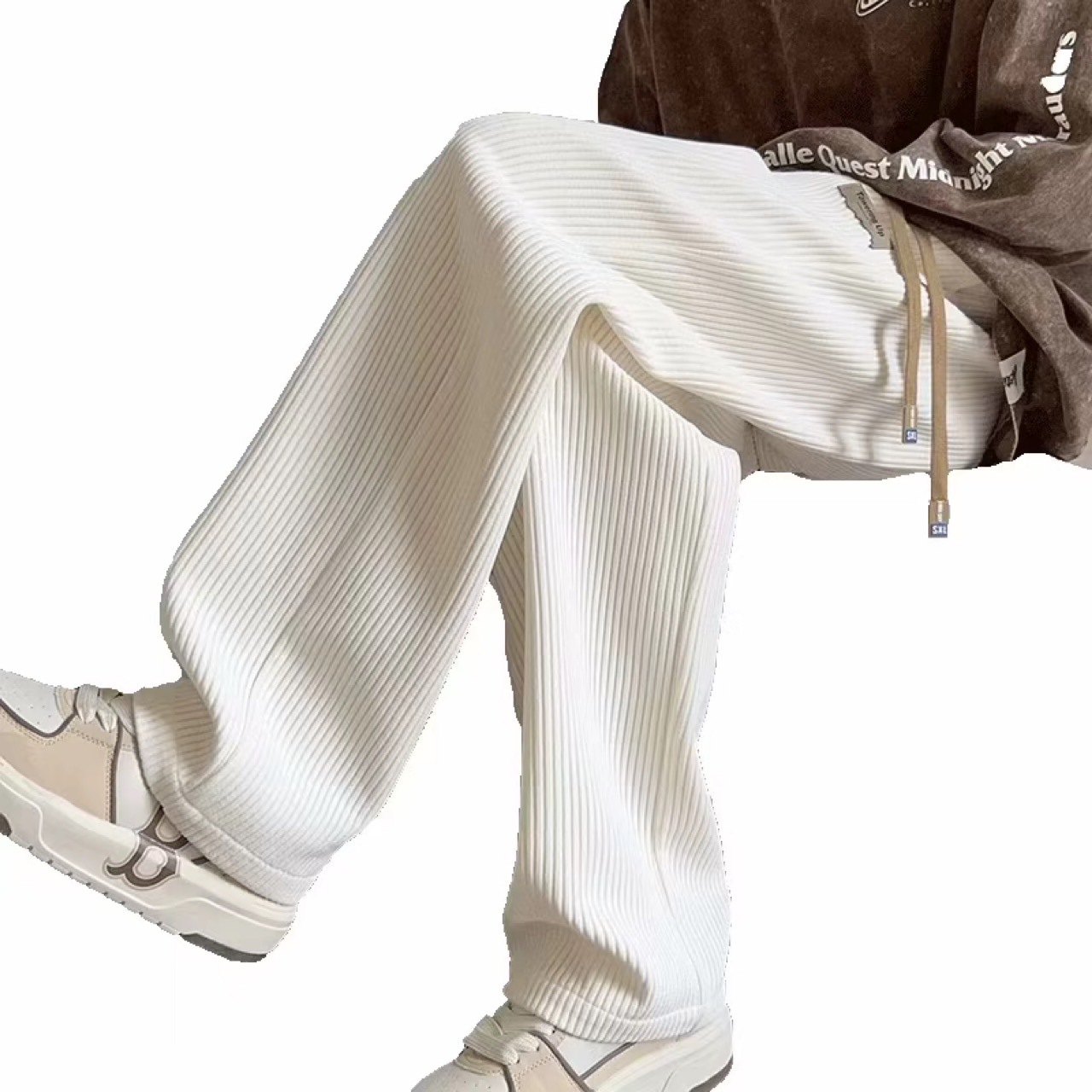 코듀로이 캐주얼 바지 남자 2024 년 봄과 가을 새로운 미국 스타일 느슨한 와이드 레그 스포츠 바지 텍스처 센스 스트레이트 바지