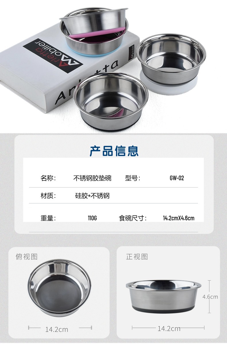 전복 방지 고양이 그릇 개 그릇 애완 동물 스테인레스 스틸 작은 실리콘 미끄럼 음용수 먹이 개 그릇 고양이 그릇 애완 동물 용품
