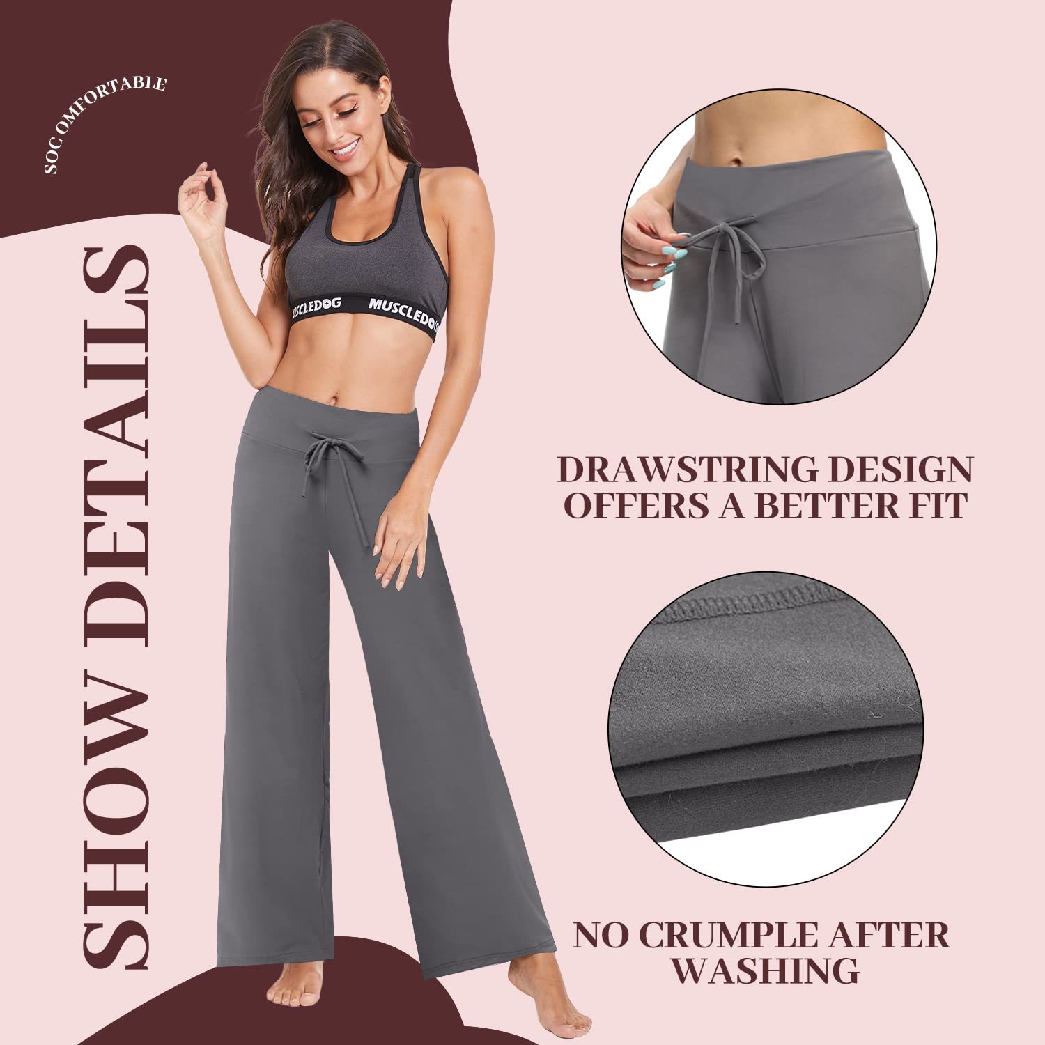 아마존 슬리밍 하이 웨이스트 피트니스 와이드 레그 팬츠 제로 센스 허리 드로스트링 와이드 레그 팬츠 여성용 피트니스 스포츠 캐주얼 바지