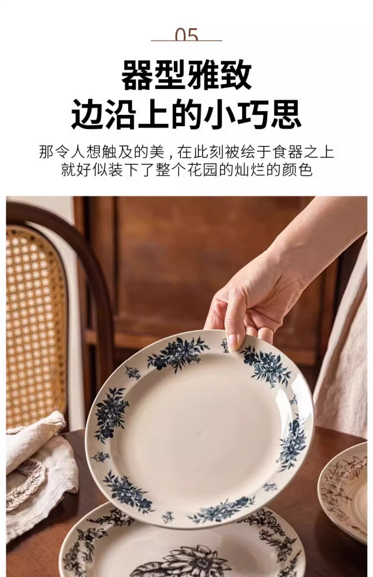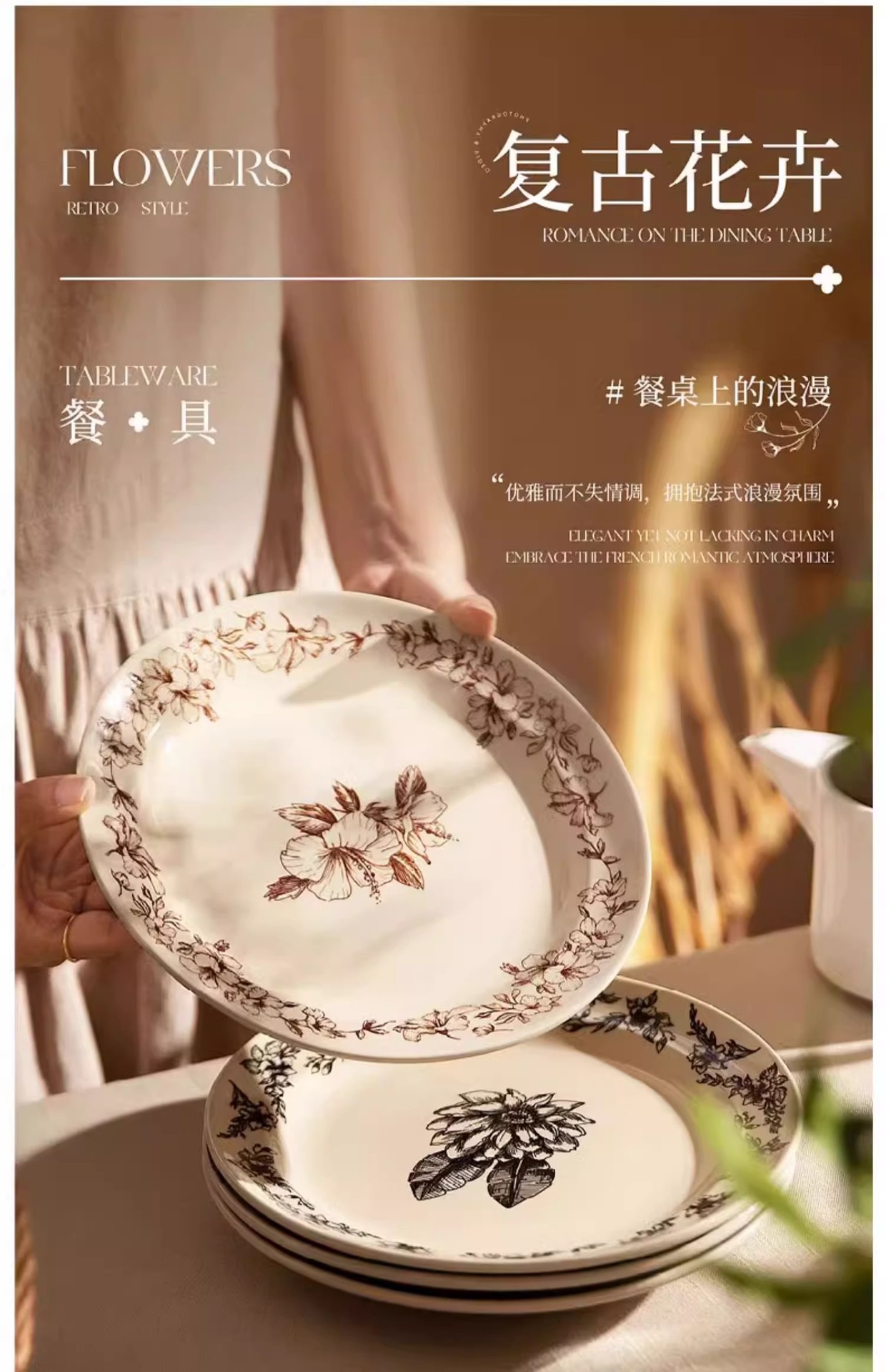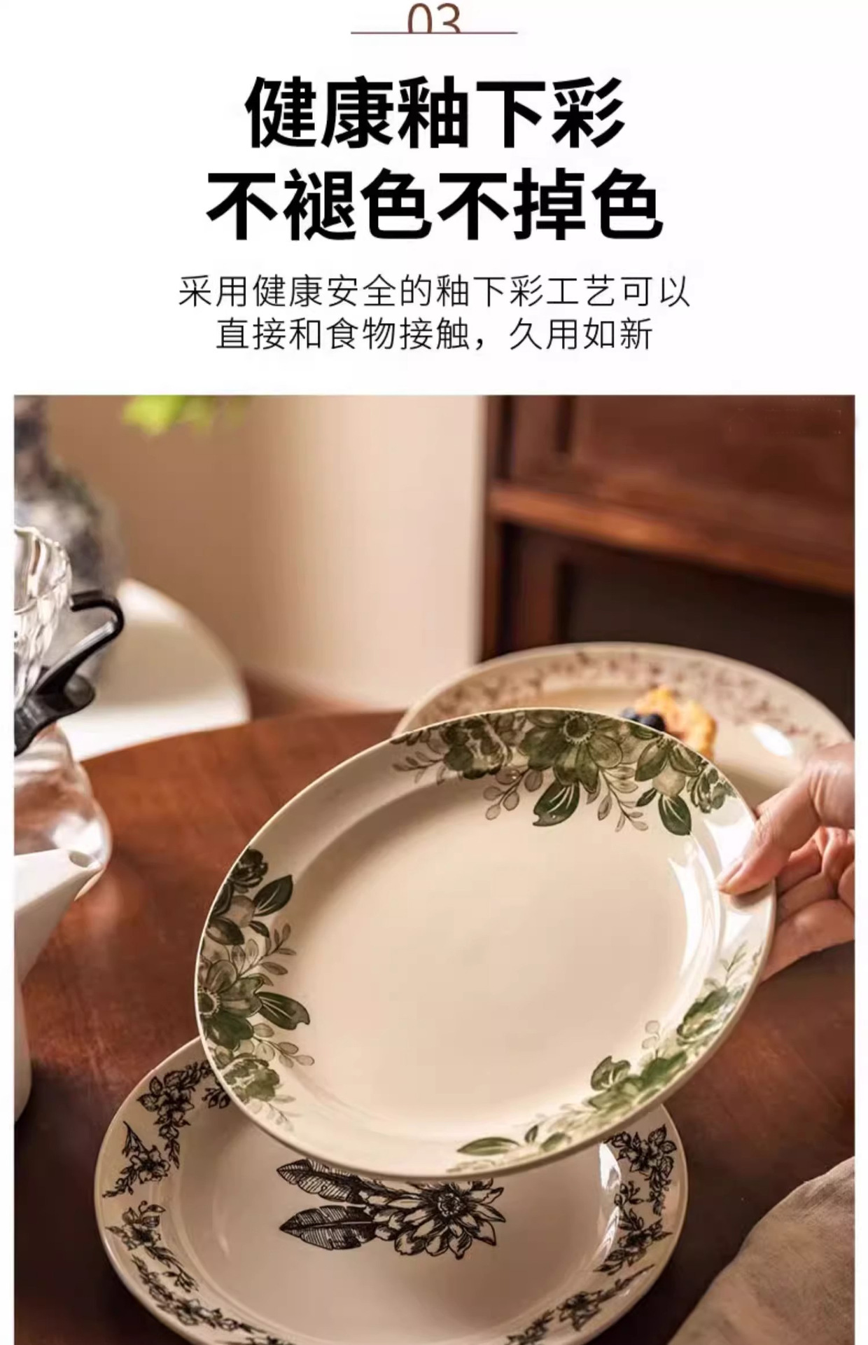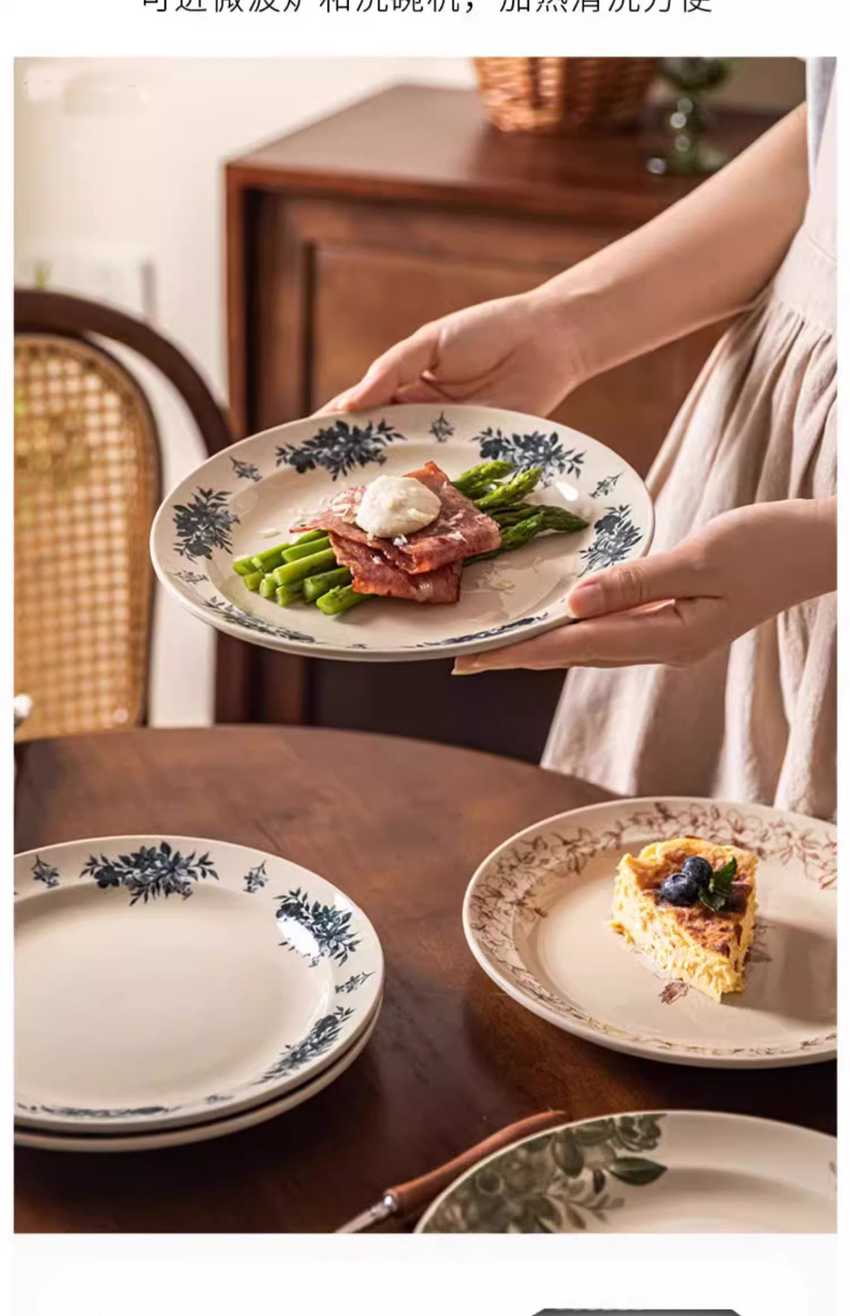 중국 스타일의 꽃 세라믹 플레이트 가정용 접시 저 유약 컬러 식기 고급 감각 서양 식품 플레이트 디저트 아침 식사 플레이트