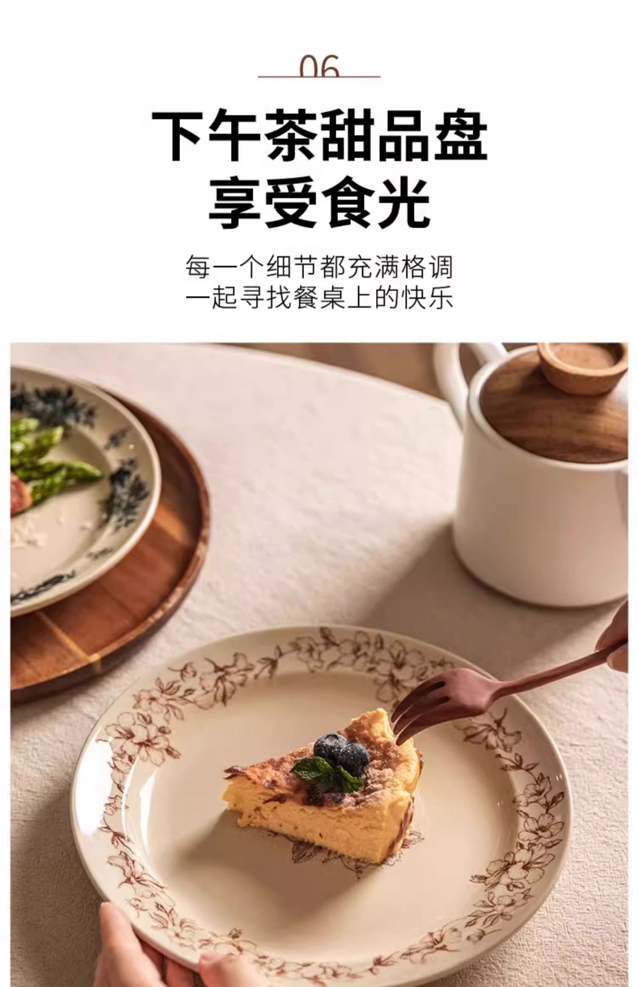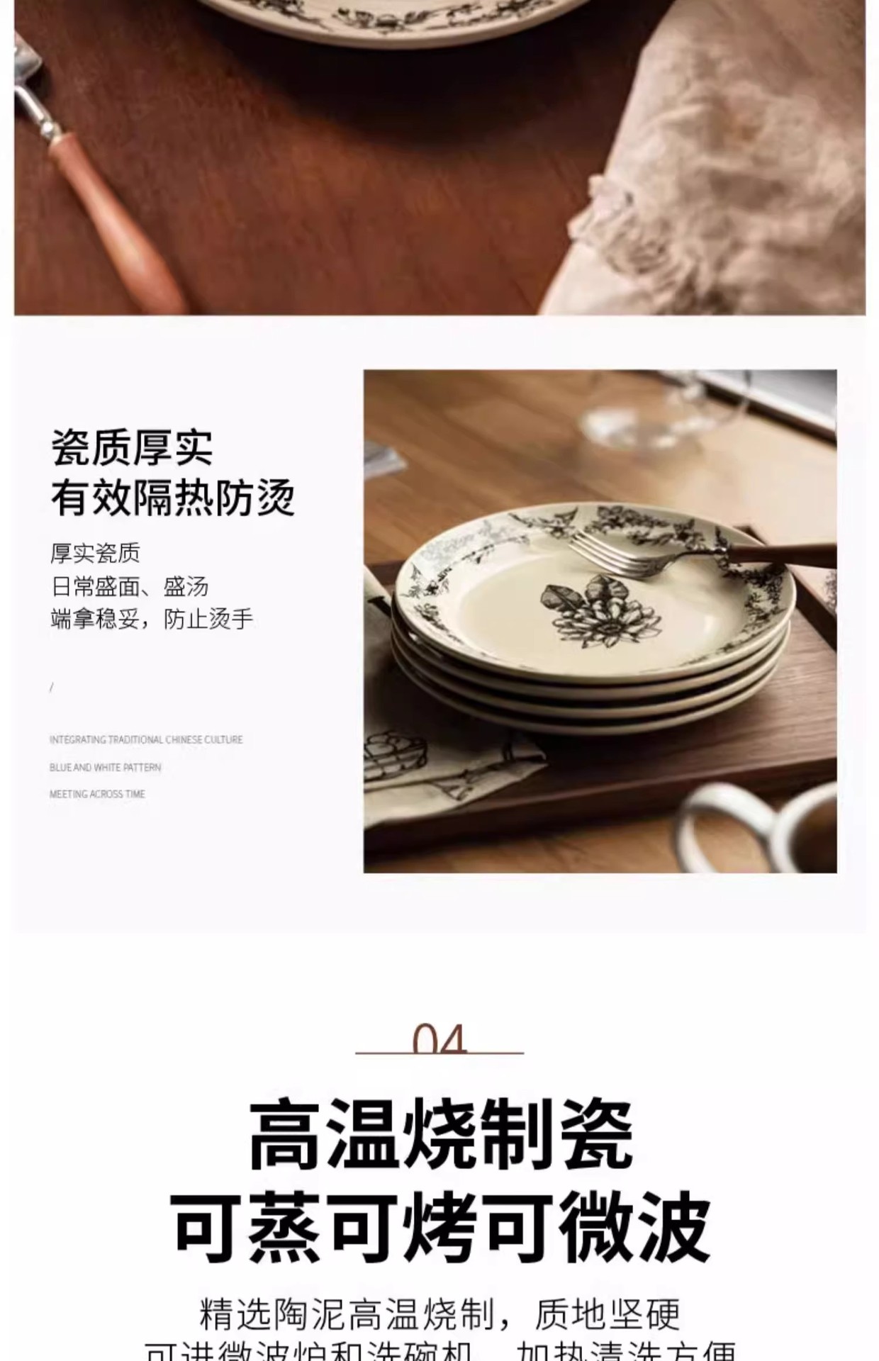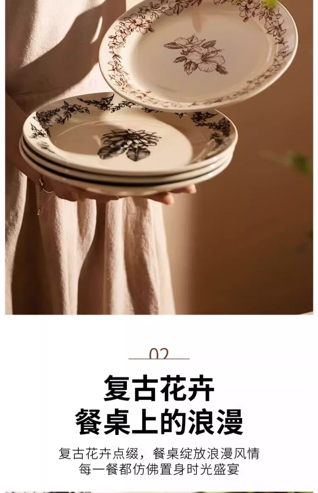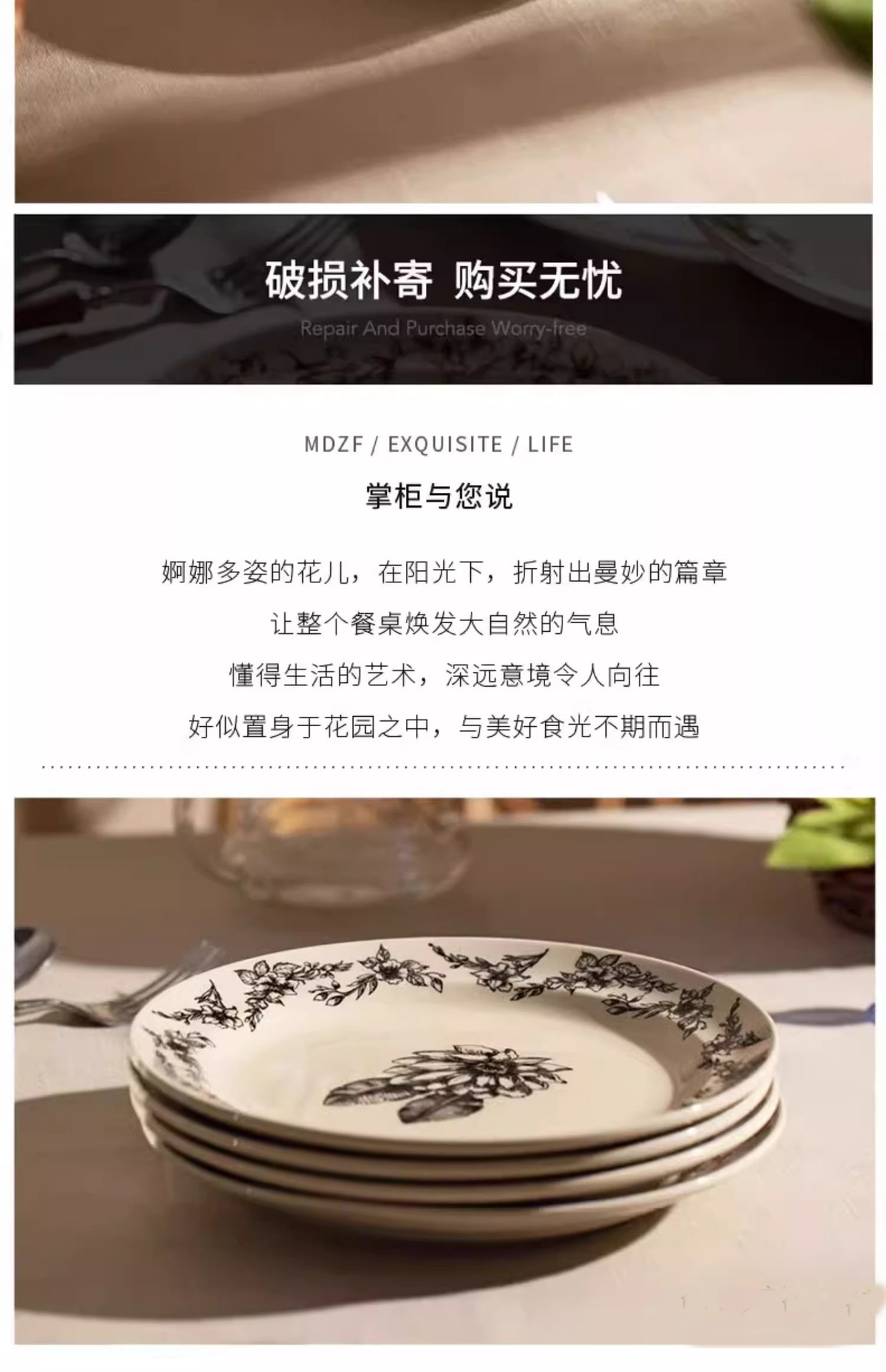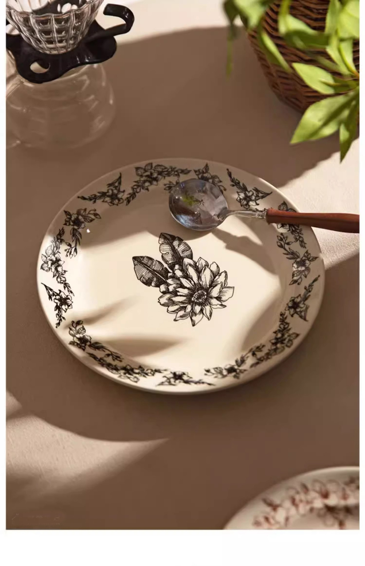 중국 스타일의 꽃 세라믹 플레이트 가정용 접시 저 유약 컬러 식기 고급 감각 서양 식품 플레이트 디저트 아침 식사 플레이트
