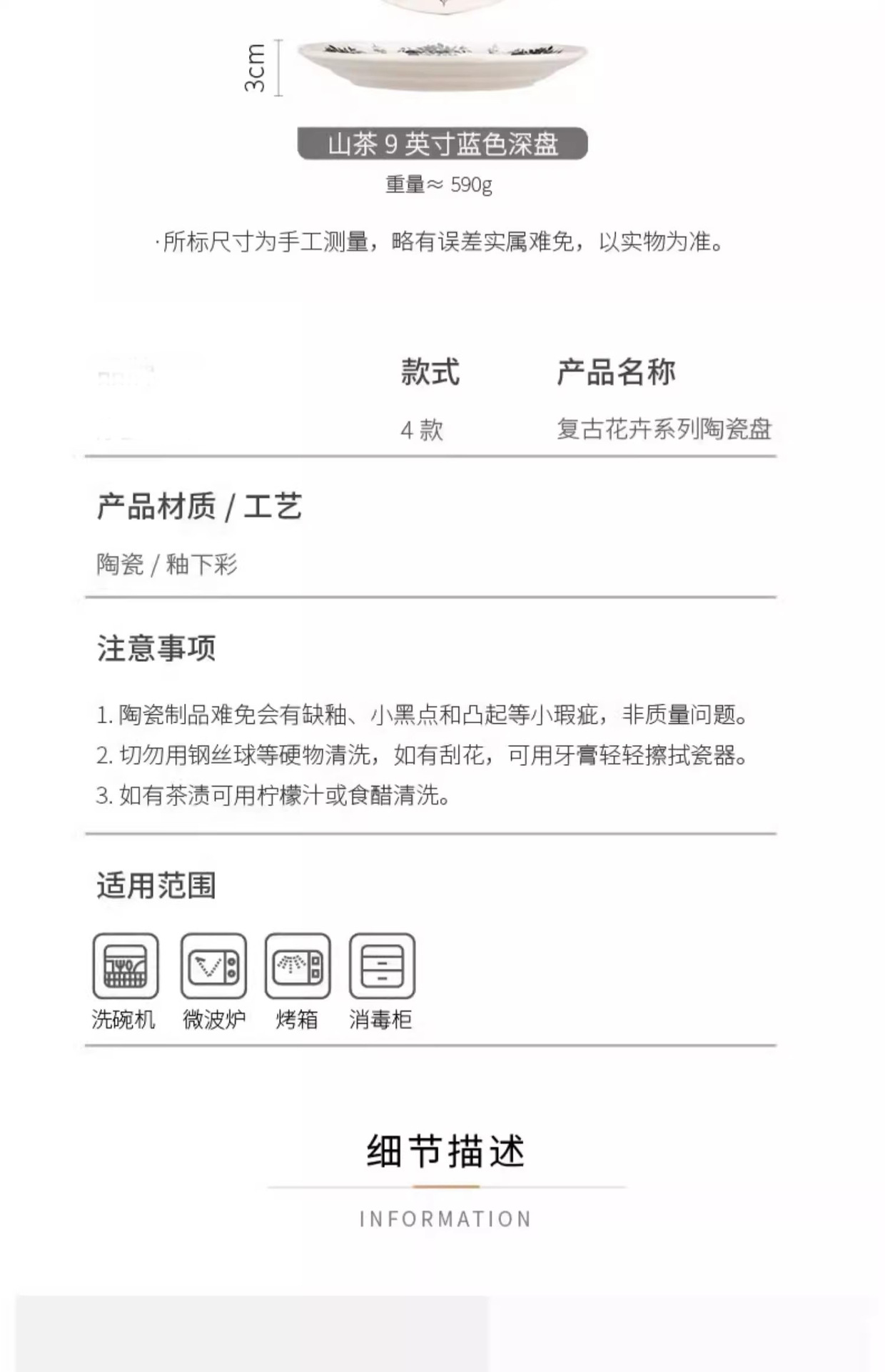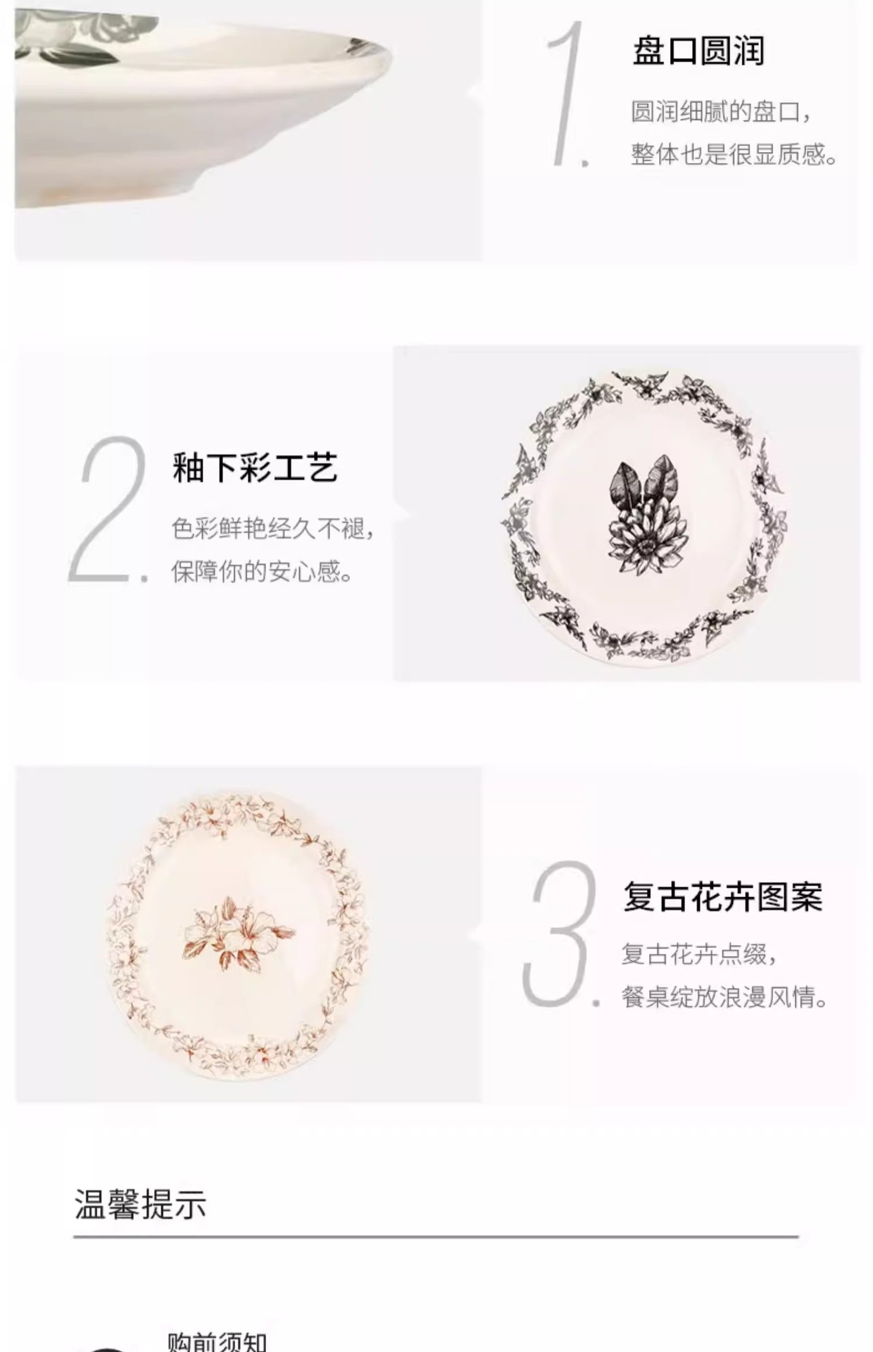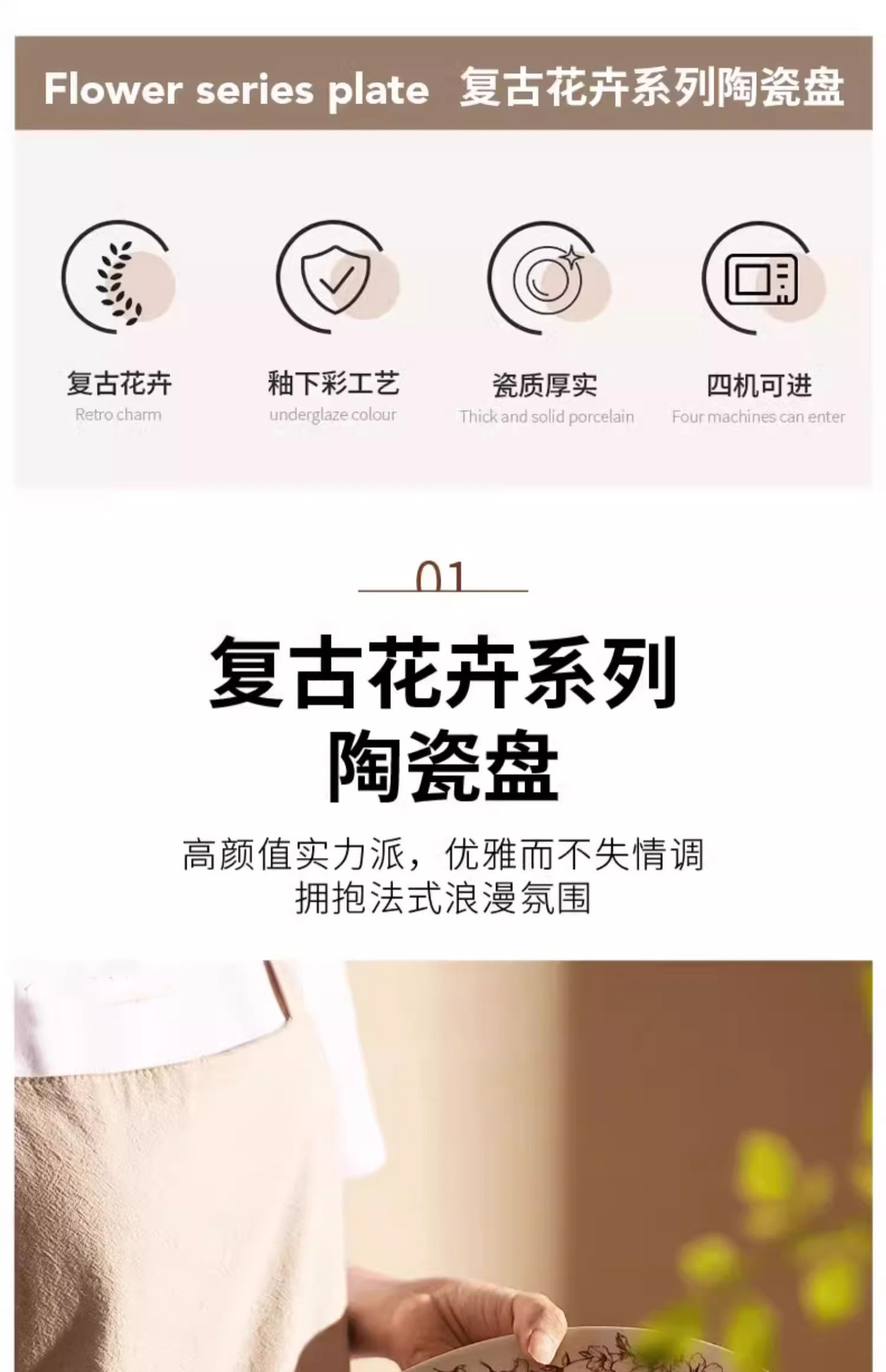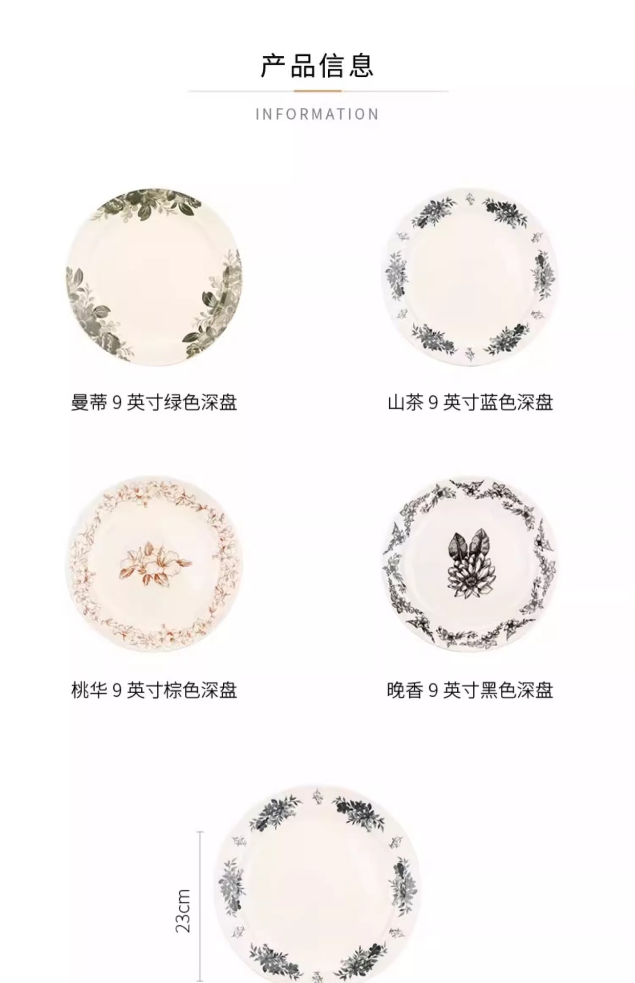 중국 스타일의 꽃 세라믹 플레이트 가정용 접시 저 유약 컬러 식기 고급 감각 서양 식품 플레이트 디저트 아침 식사 플레이트