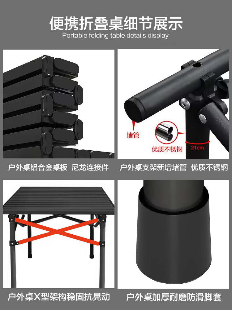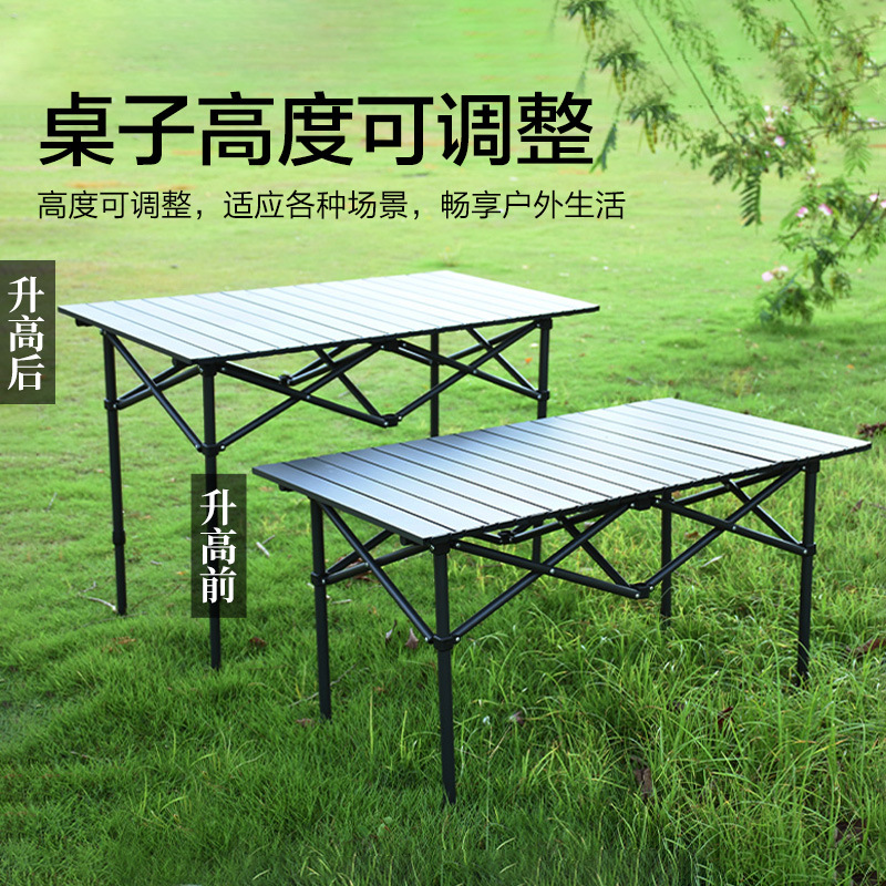 야외 접이식 테이블 알루미늄 합금 휴대용 스톨 피크닉 바베큐 리프팅 계란 롤 테이블 필드 용품 캠핑 장비