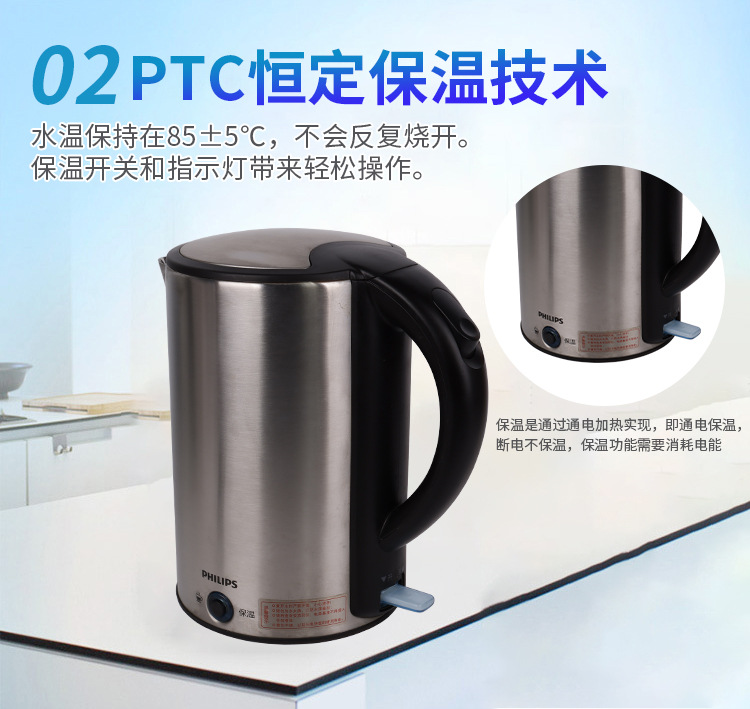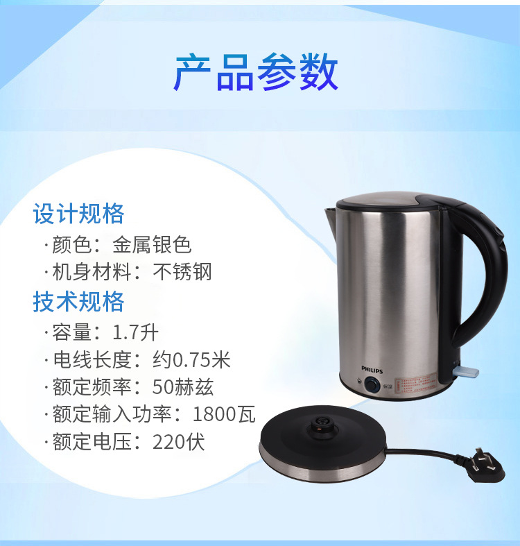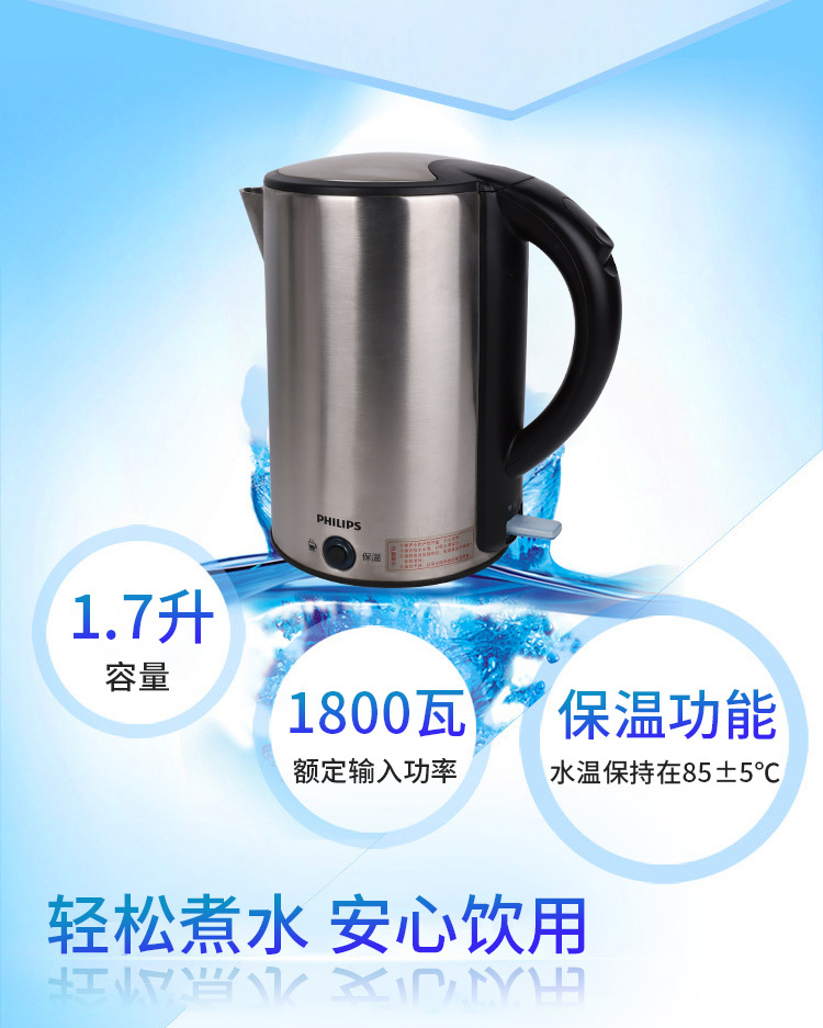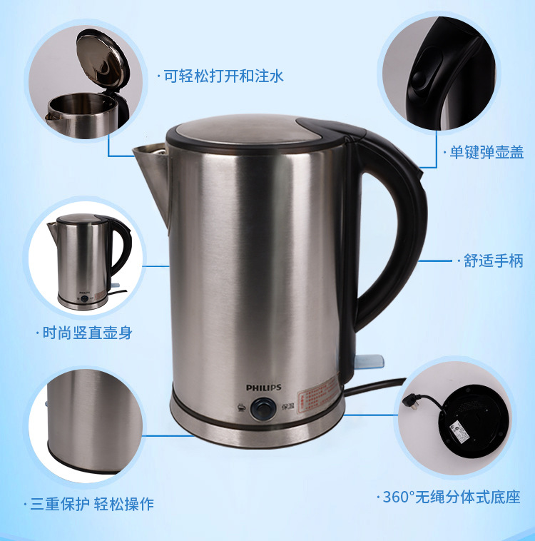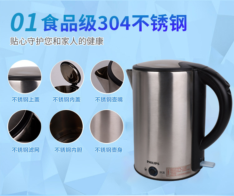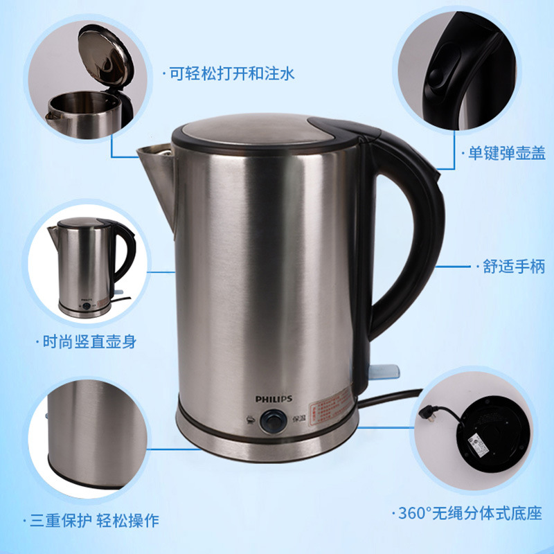 필립스 전기 주전자 HD9316 가구 304 식품 학년 스테인레스 스틸 1.7L 절연 주전자 전기 주전자
