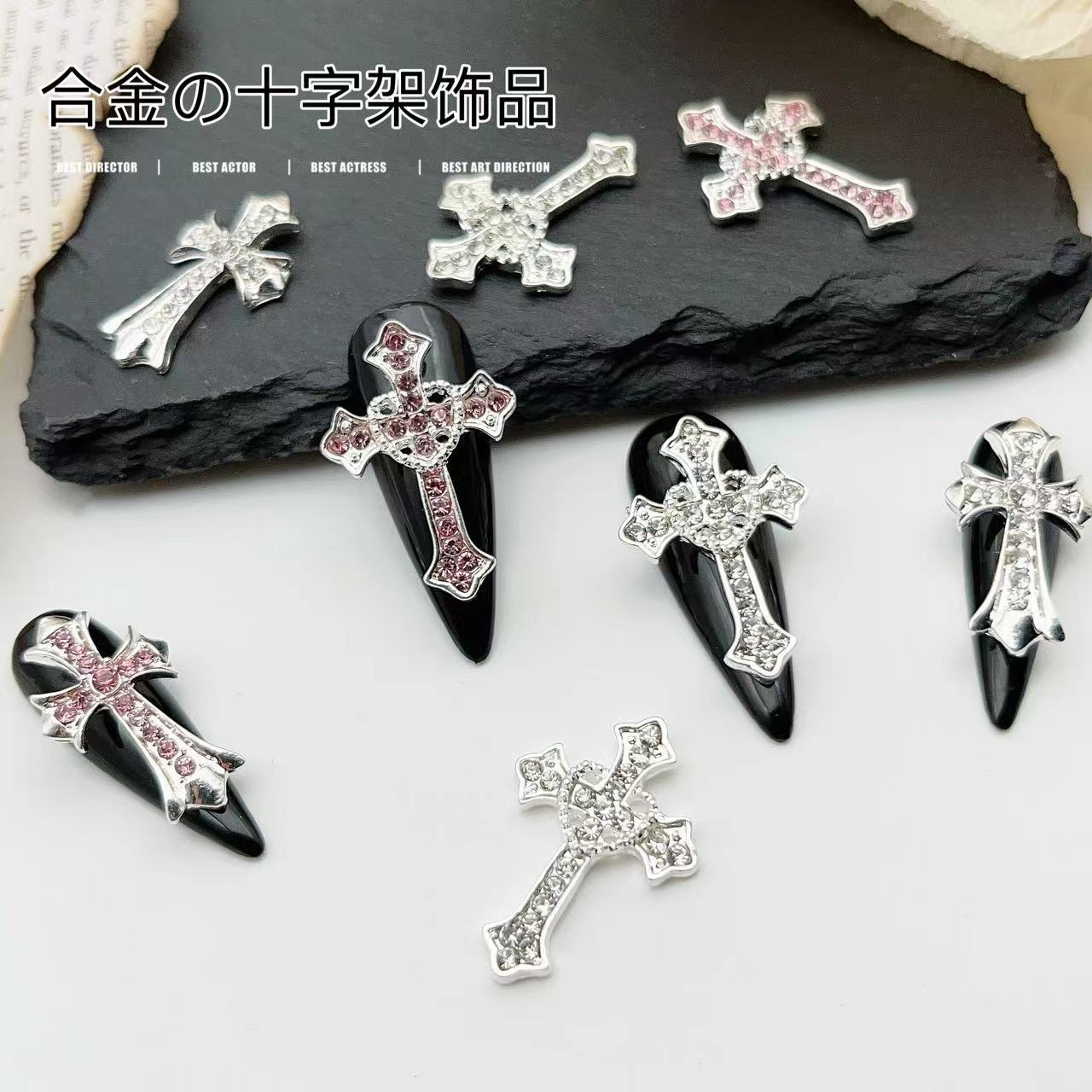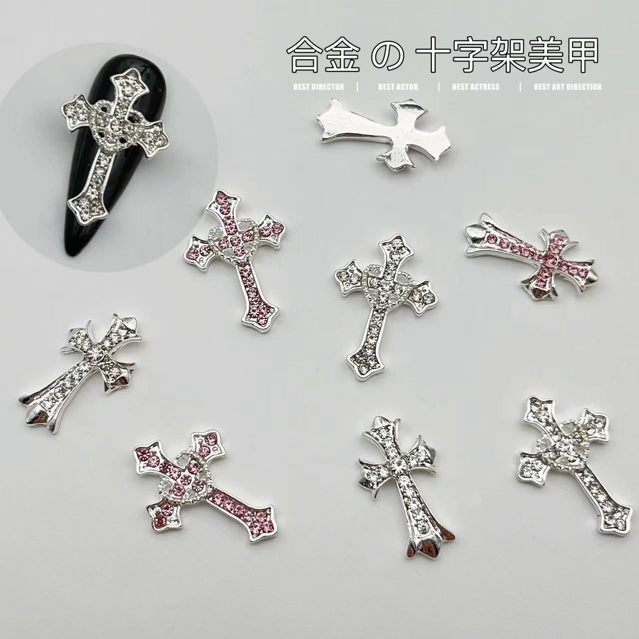 국경 새로운 네일 아트 큰 사랑 크로스 보석 3 차원 컬러 다이아몬드 합금 간단한 네일 드릴 액세서리 도매