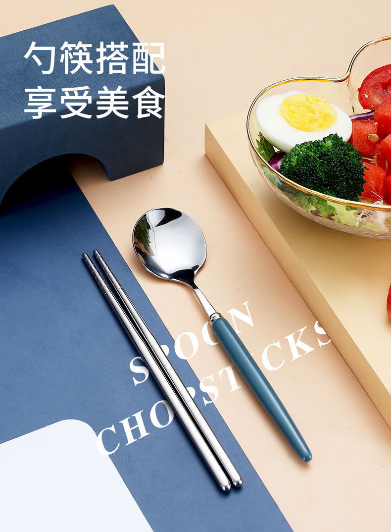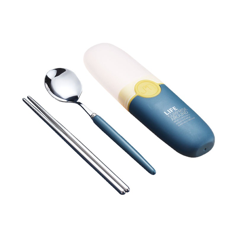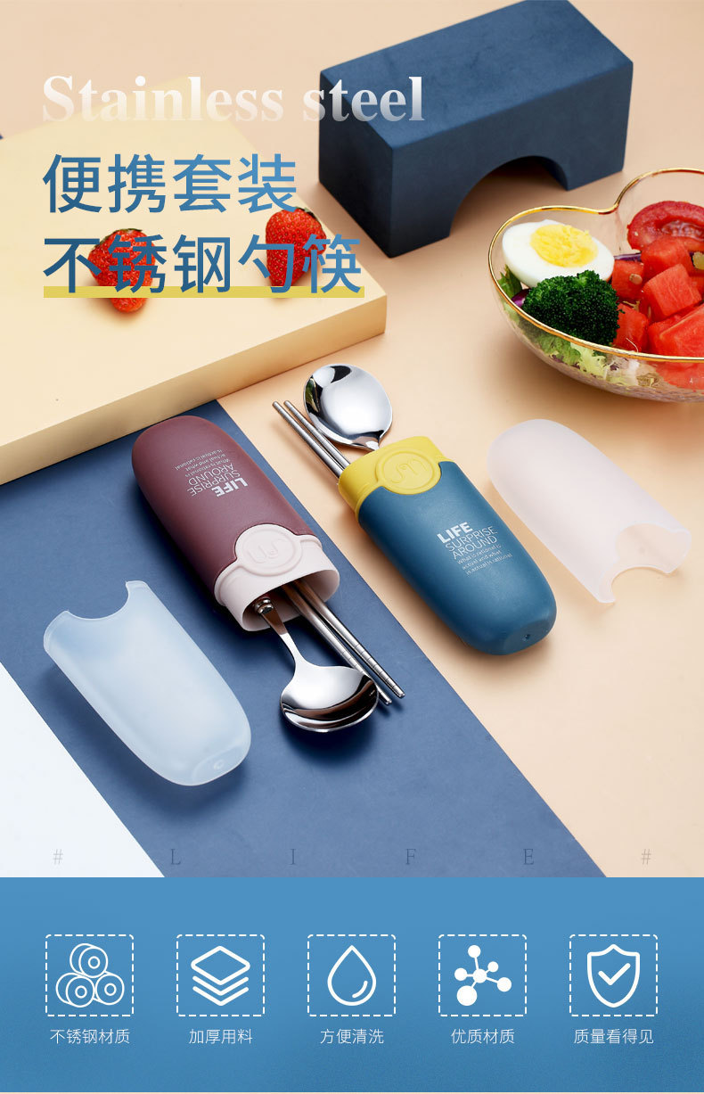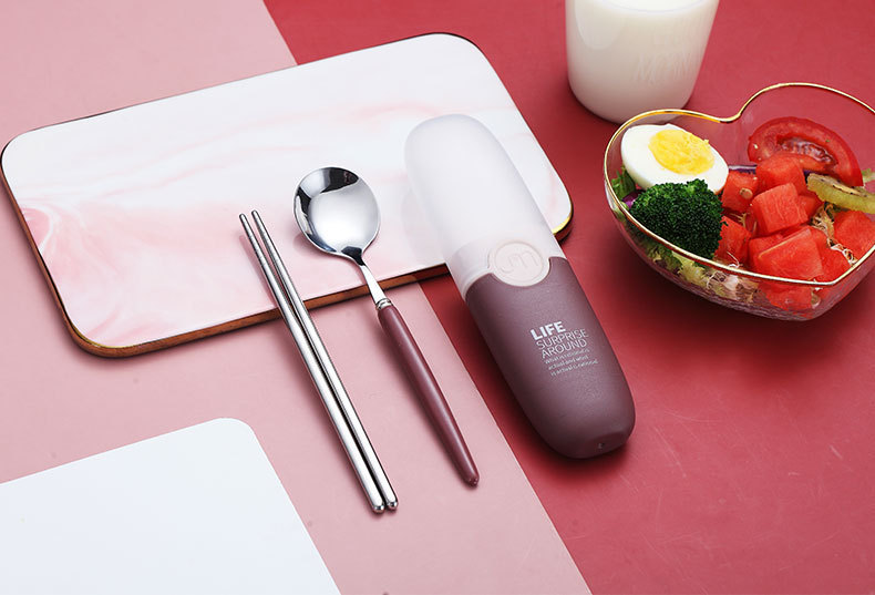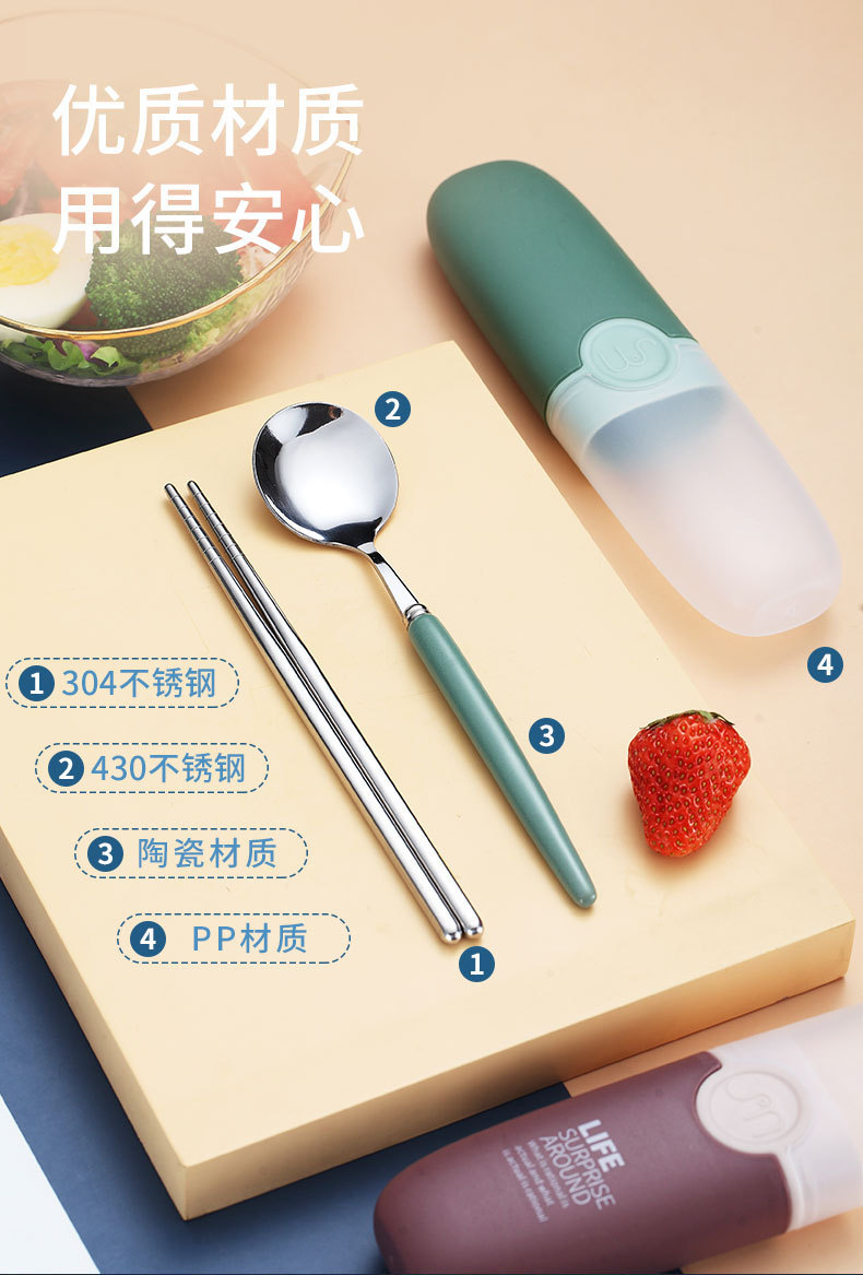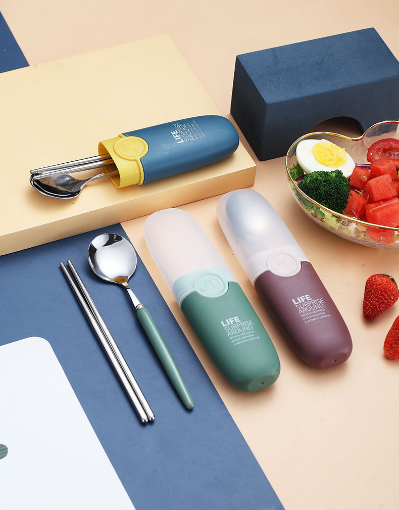 간단한 304 스테인레스 스틸 식기 세트 창조적 인 저장 상자 쉬운 청소 휴대용 숟가락 젓가락 투피스 선물