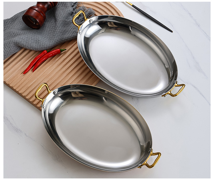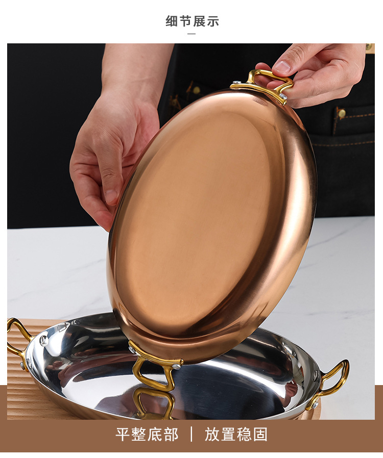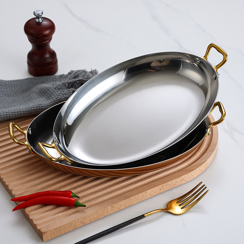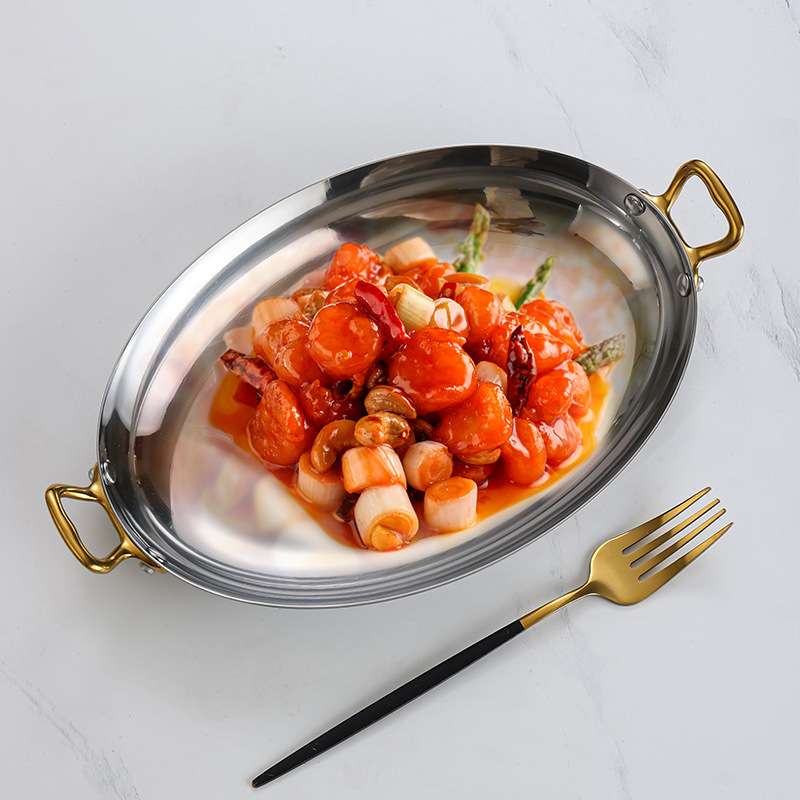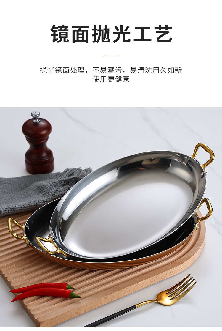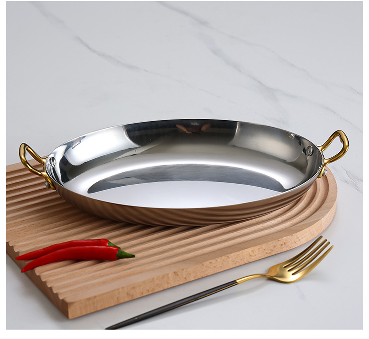 매우 두꺼운 금 바닥 스테인레스 스틸 달걀 모양의 판 플러스 사이즈