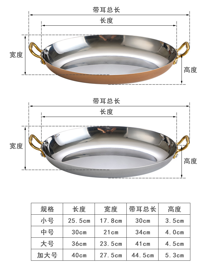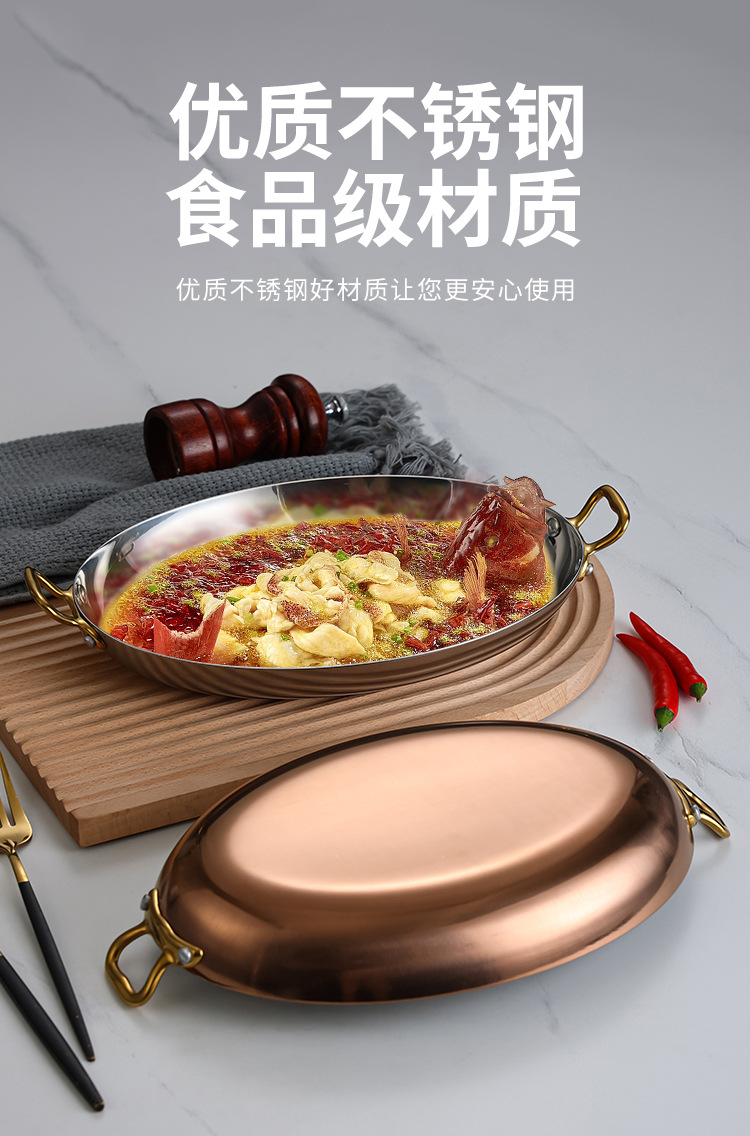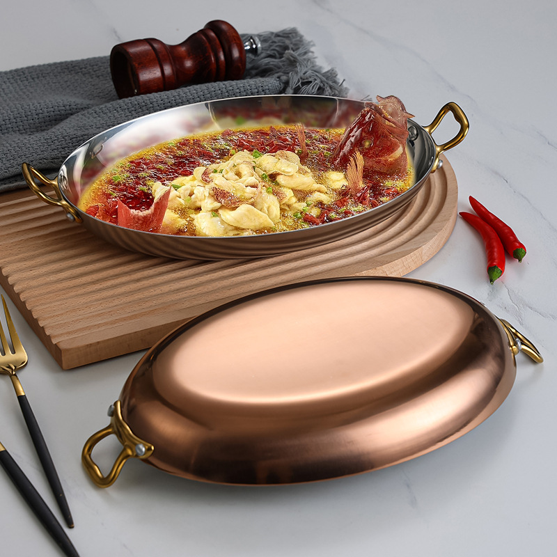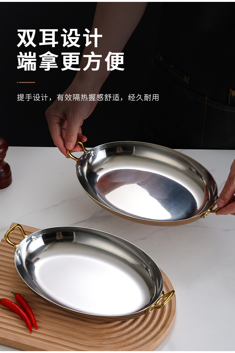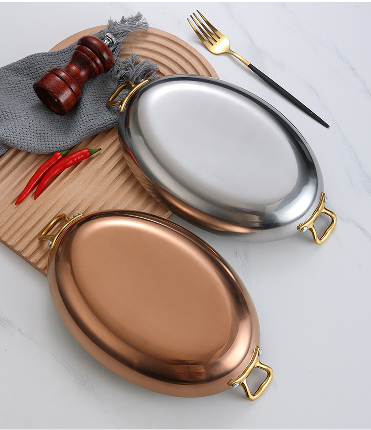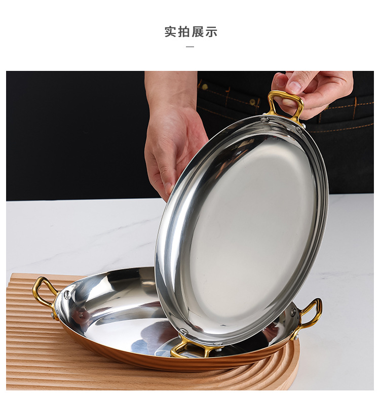 매우 두꺼운 금 바닥 스테인레스 스틸 달걀 모양의 판 플러스 사이즈