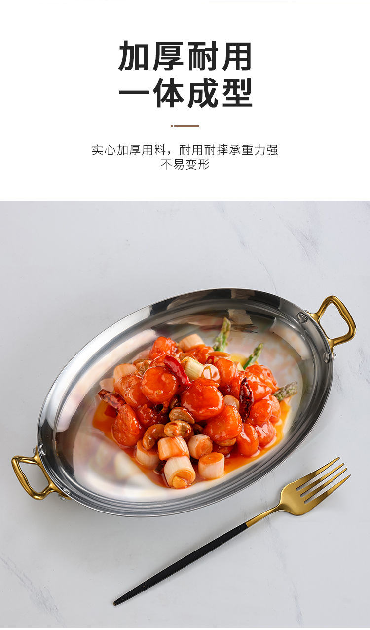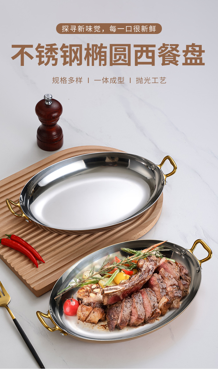 스테인레스 스틸 웨스턴 푸드 플레이트 스페인 해산물 랍스터 플레이트 상업용 바이 노럴 타원형 토마 호크 스테이크 플레이트 프렌치 식기