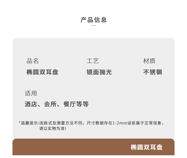 매우 두꺼운 스테인레스 스틸 달걀 모양의 판 플러스 사이즈