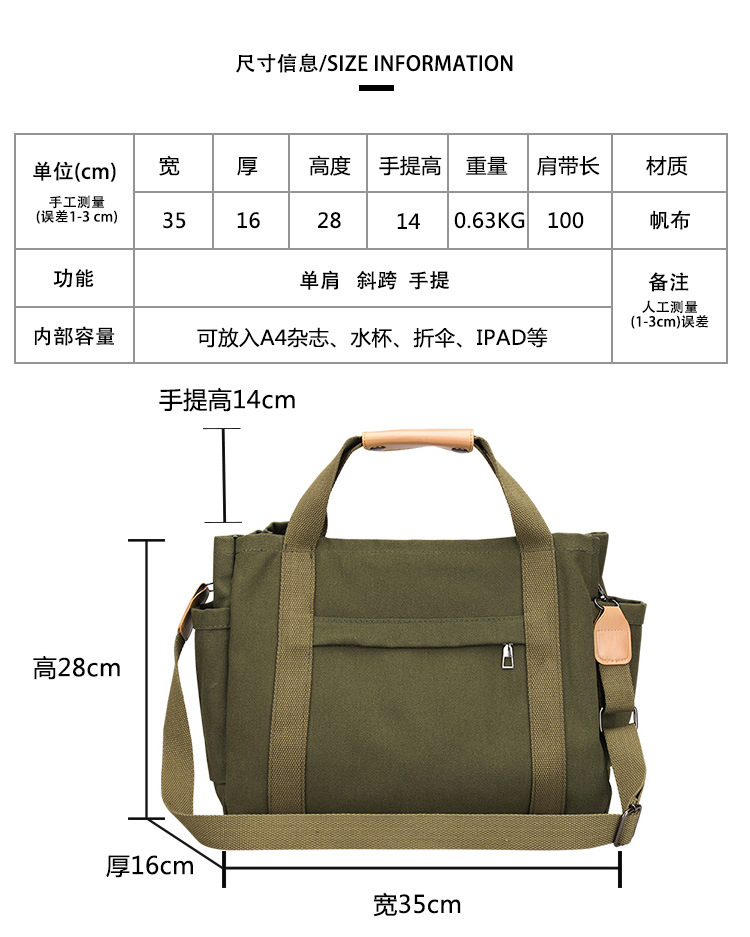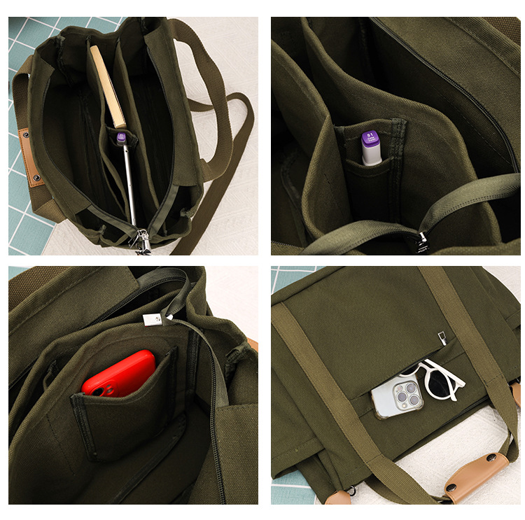 국경을 넘는 전용 캔버스백, 대용량, 다중 수납공간, 고품질 토트백, 다기능 핸드백/크로스백, 원산지 직수입
