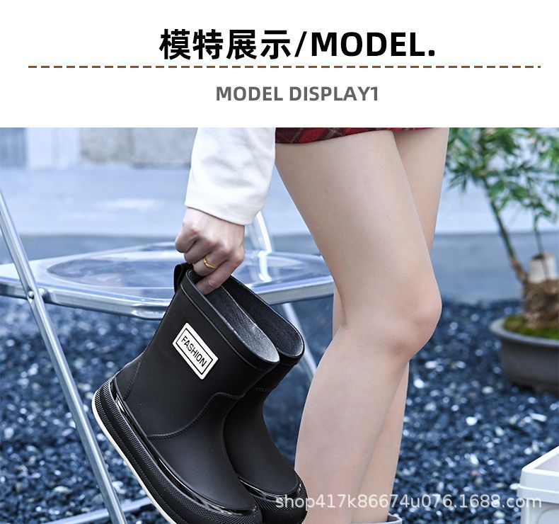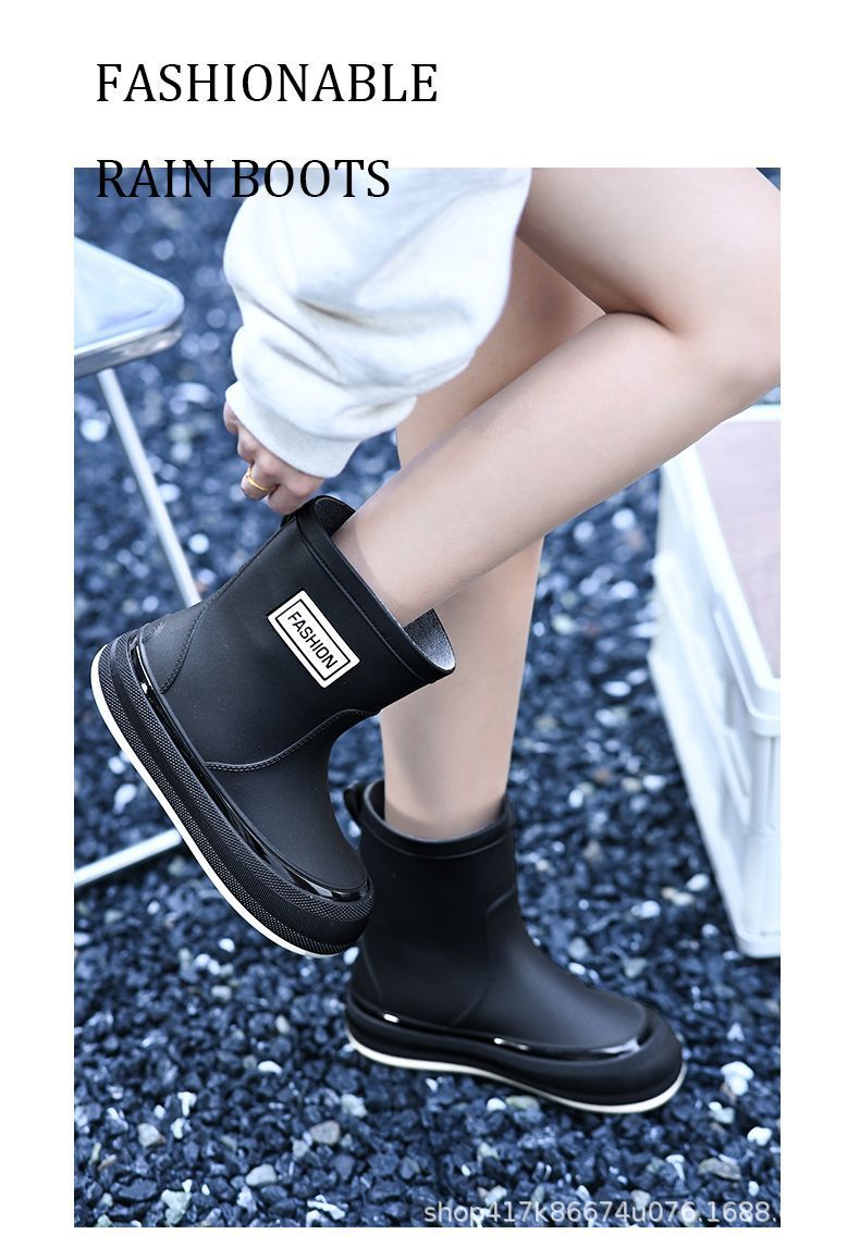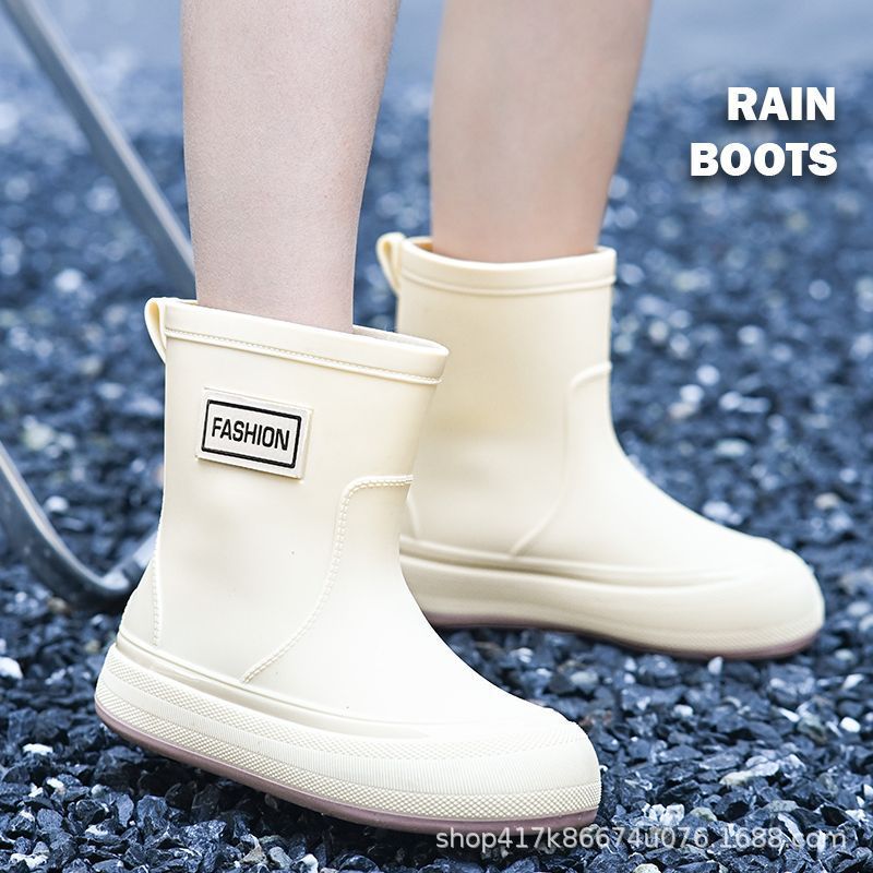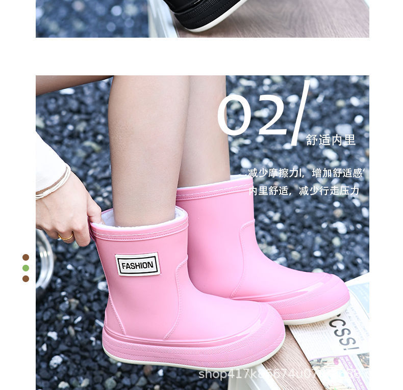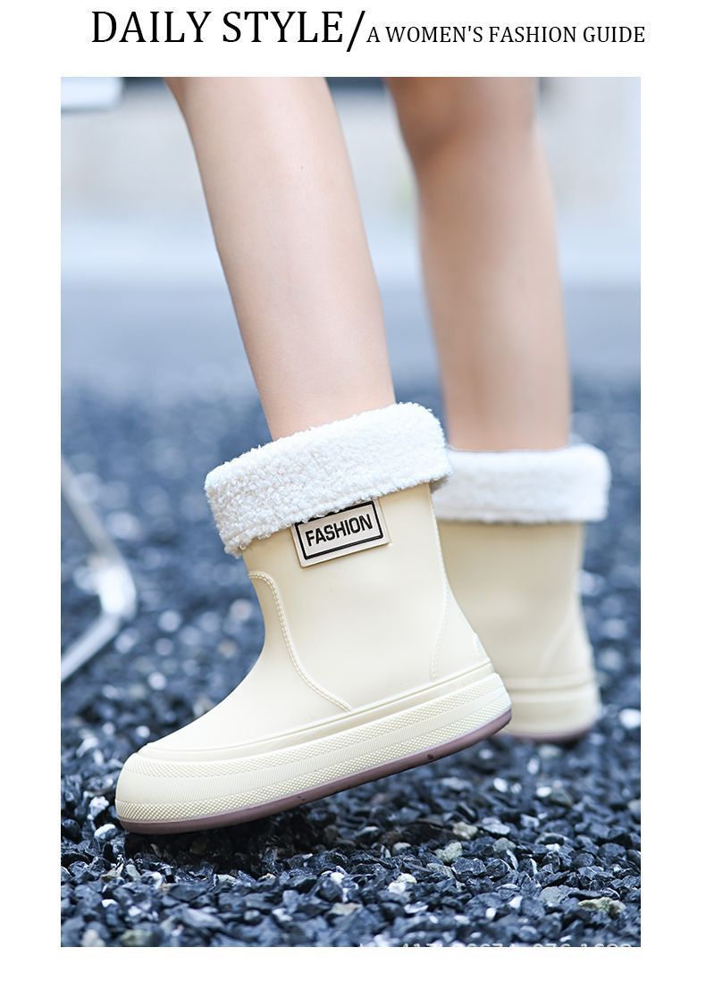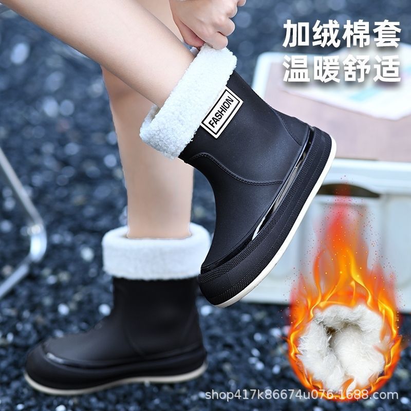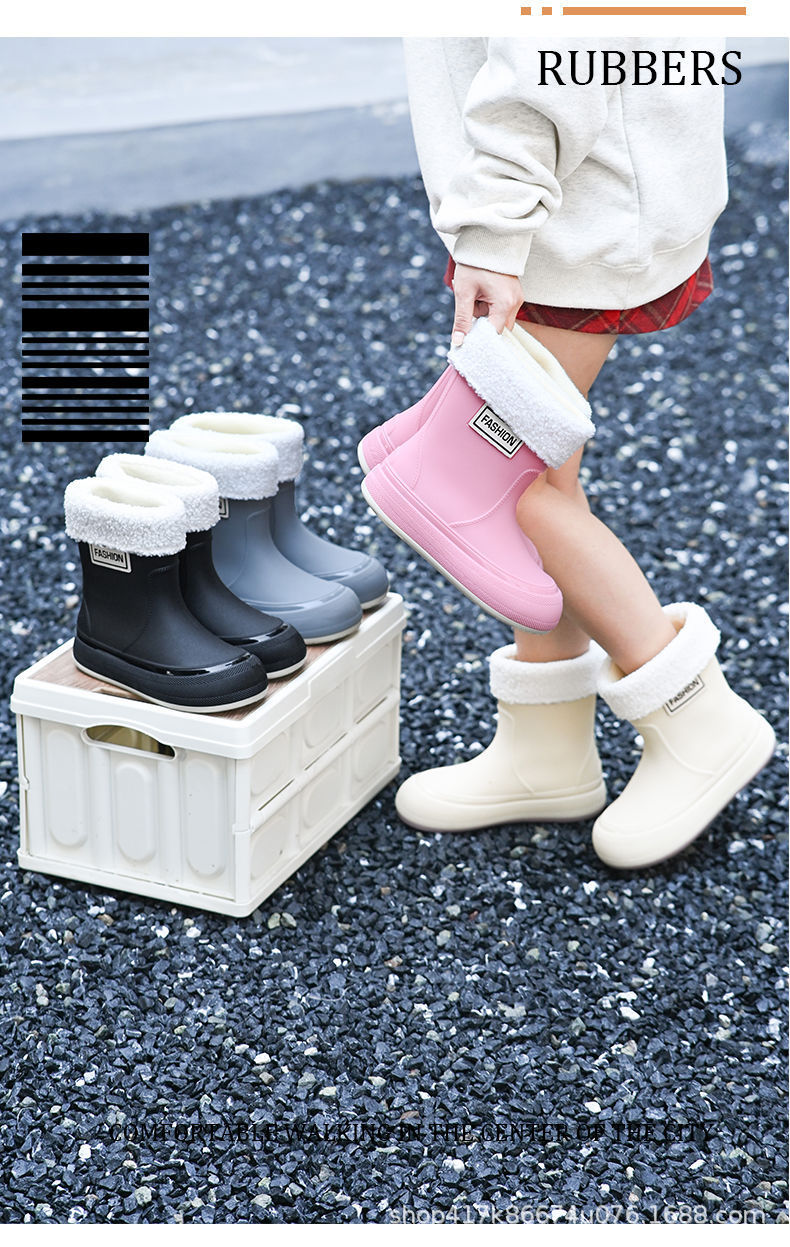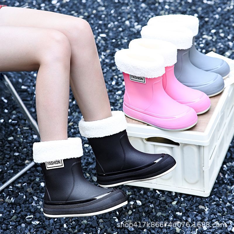 빔 방수 비 신발 여성 패션 새로운 미끄럼 방지 물 신발 외부 착용 학생 고무 신발 따뜻한 기모 물 부츠 여성 도매