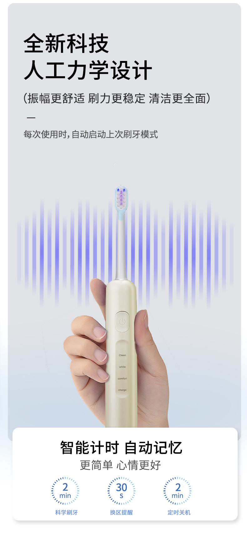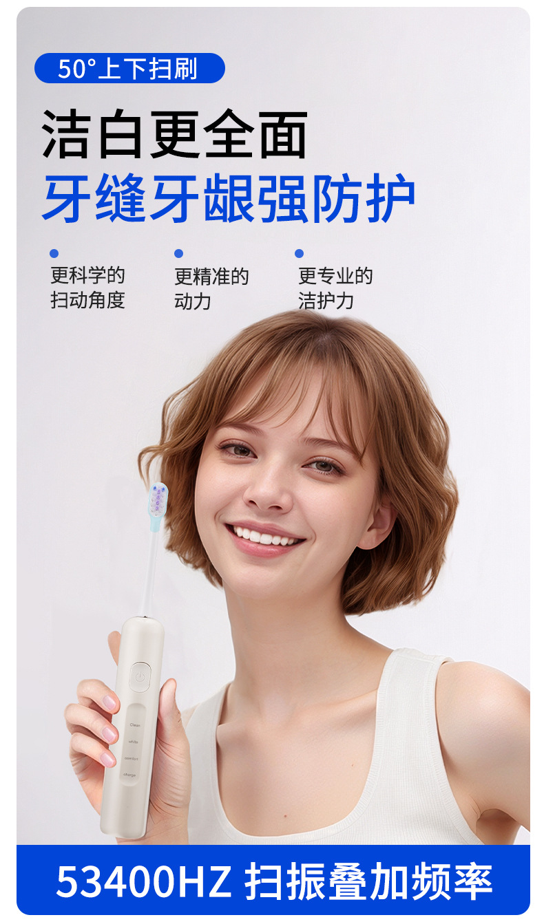 국경 간 신제품 전동 칫솔 스윕 진동 성인 음파 충전 방수 부드러운 강모