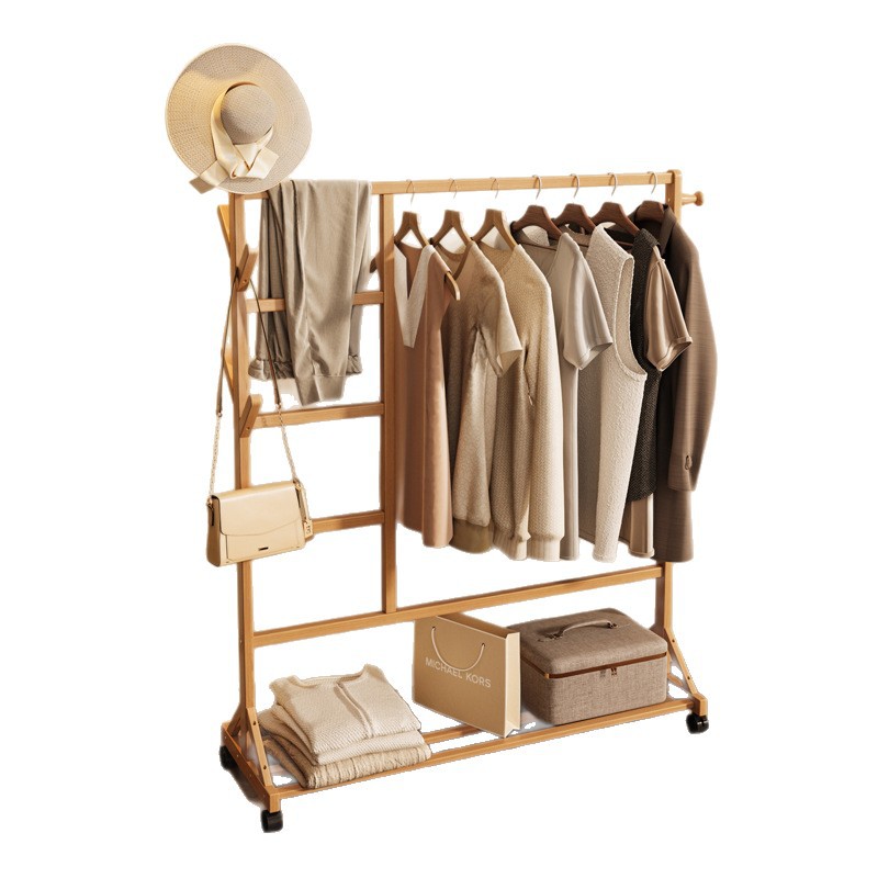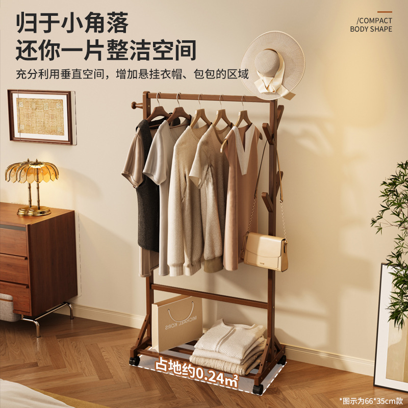 바닥 걸이 단단한 나무 건조 랙 간단한 코트 랙 침실 방 임대 홈 교수형 옷 선반 모바일 거실