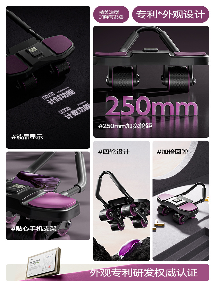 복부 휠 4 륜 팔꿈치 지원 유형 자동 리바운드 롤 복부 근육 휠 얇은 배꼽 피트니스 장비 아티팩트 스포츠 홈