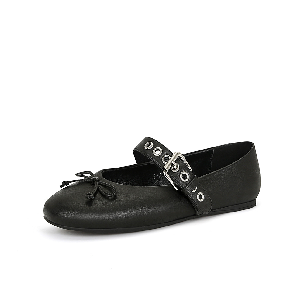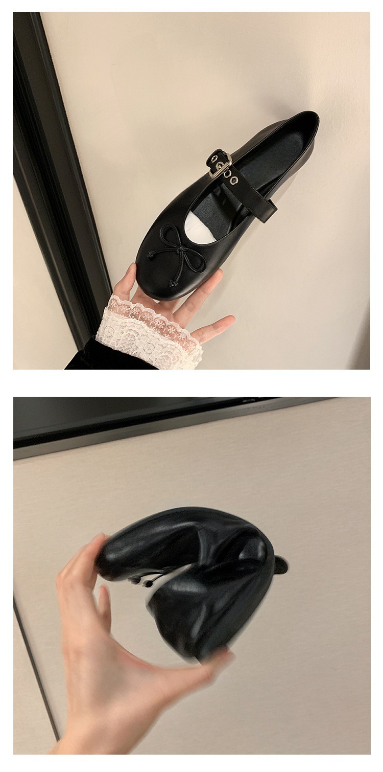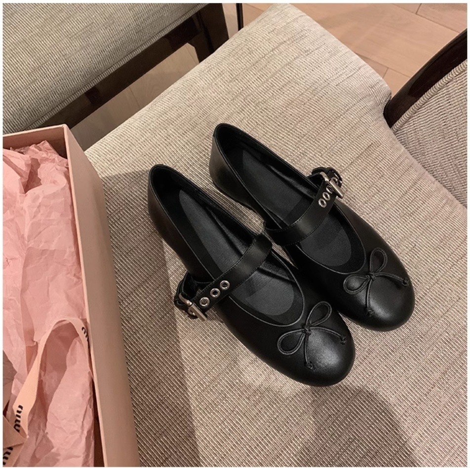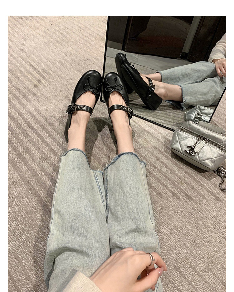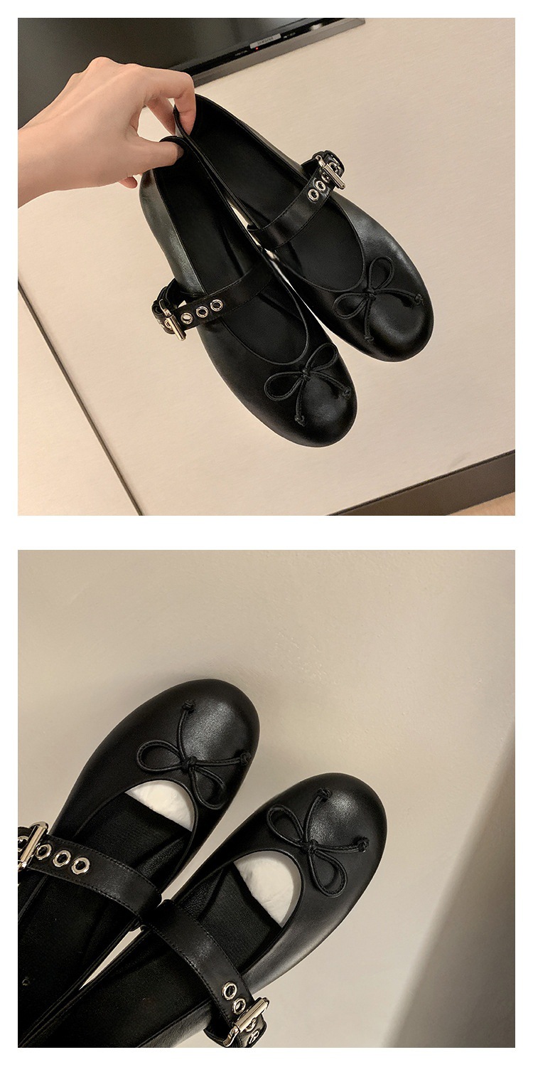 인터넷 유명인 수인인과 같은 스타일의 독특한 소녀~ 리본 장식 양가죽 플랫 발레 슈즈 여성용 메리제인 슈즈