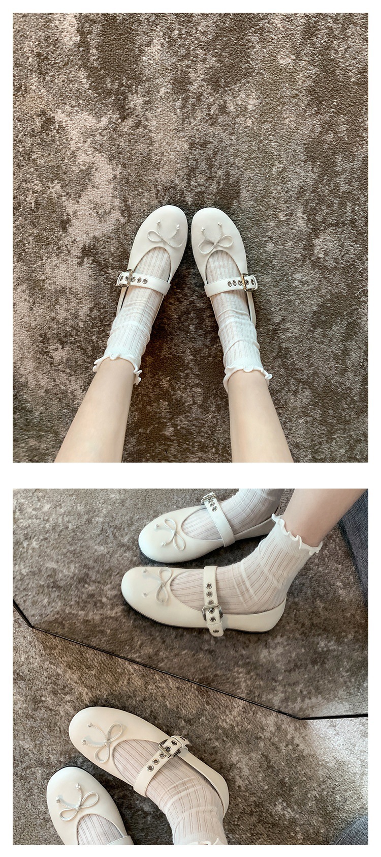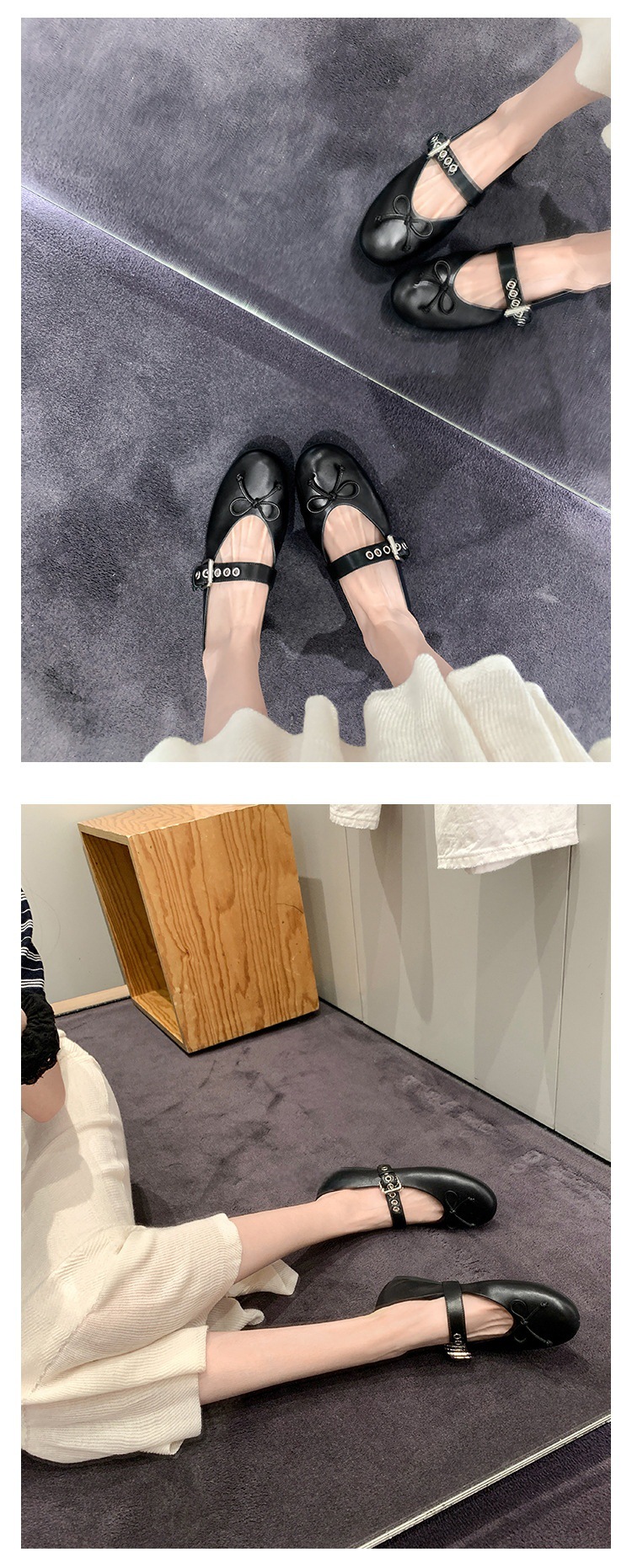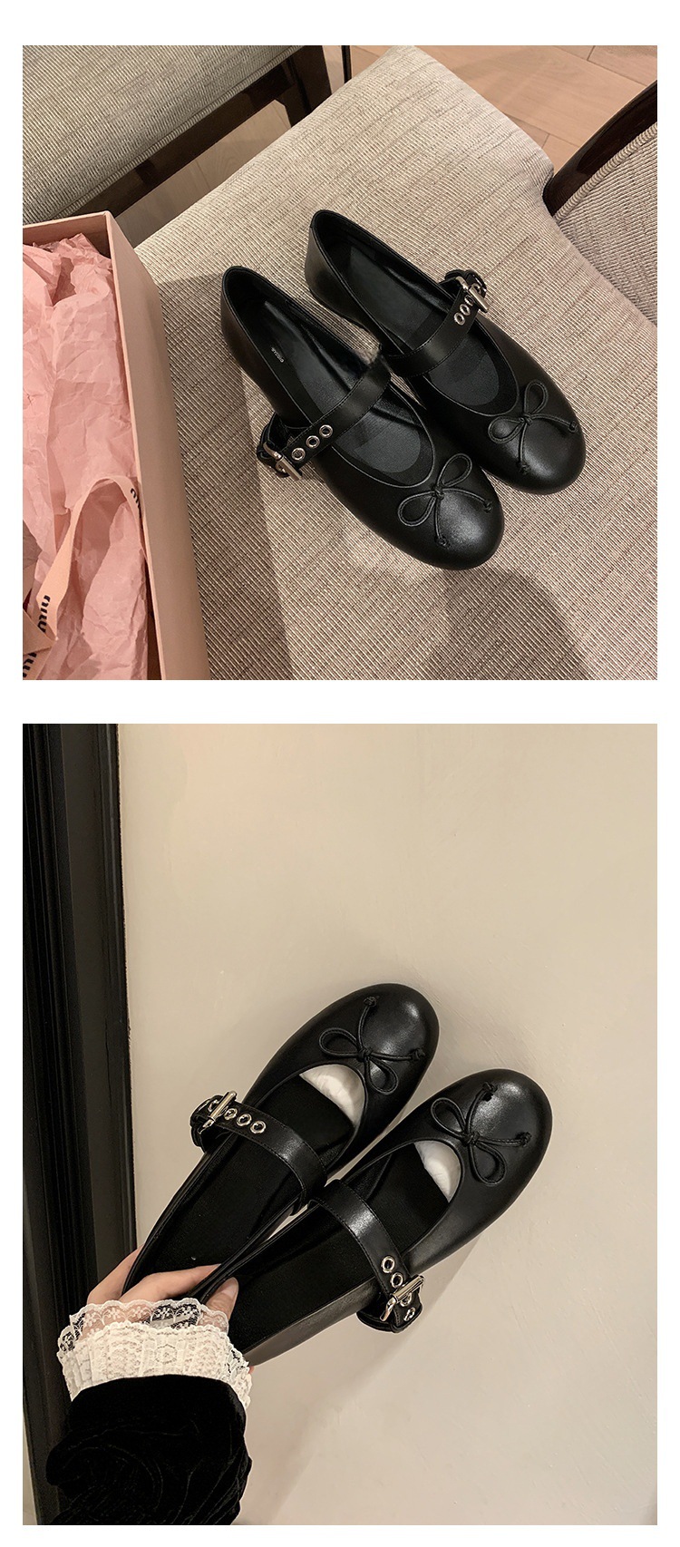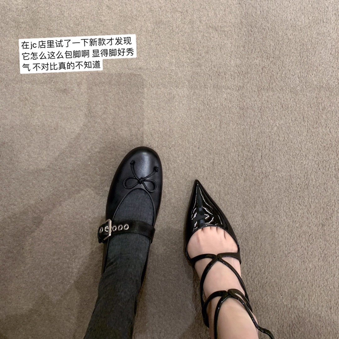 인터넷 유명인 수인인과 같은 스타일의 독특한 소녀~ 리본 장식 양가죽 플랫 발레 슈즈 여성용 메리제인 슈즈