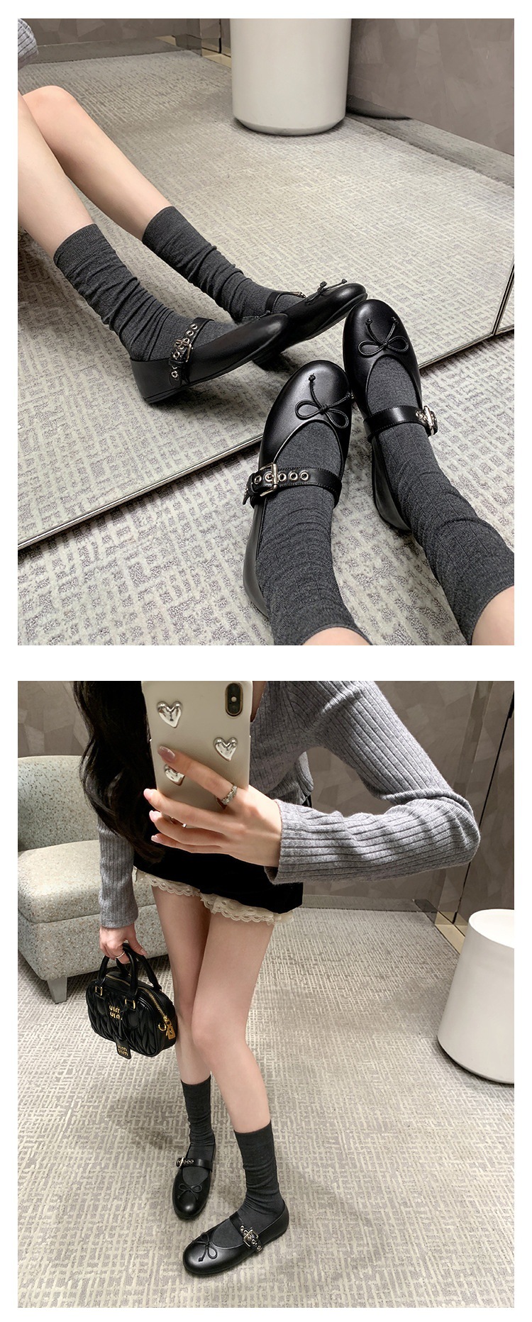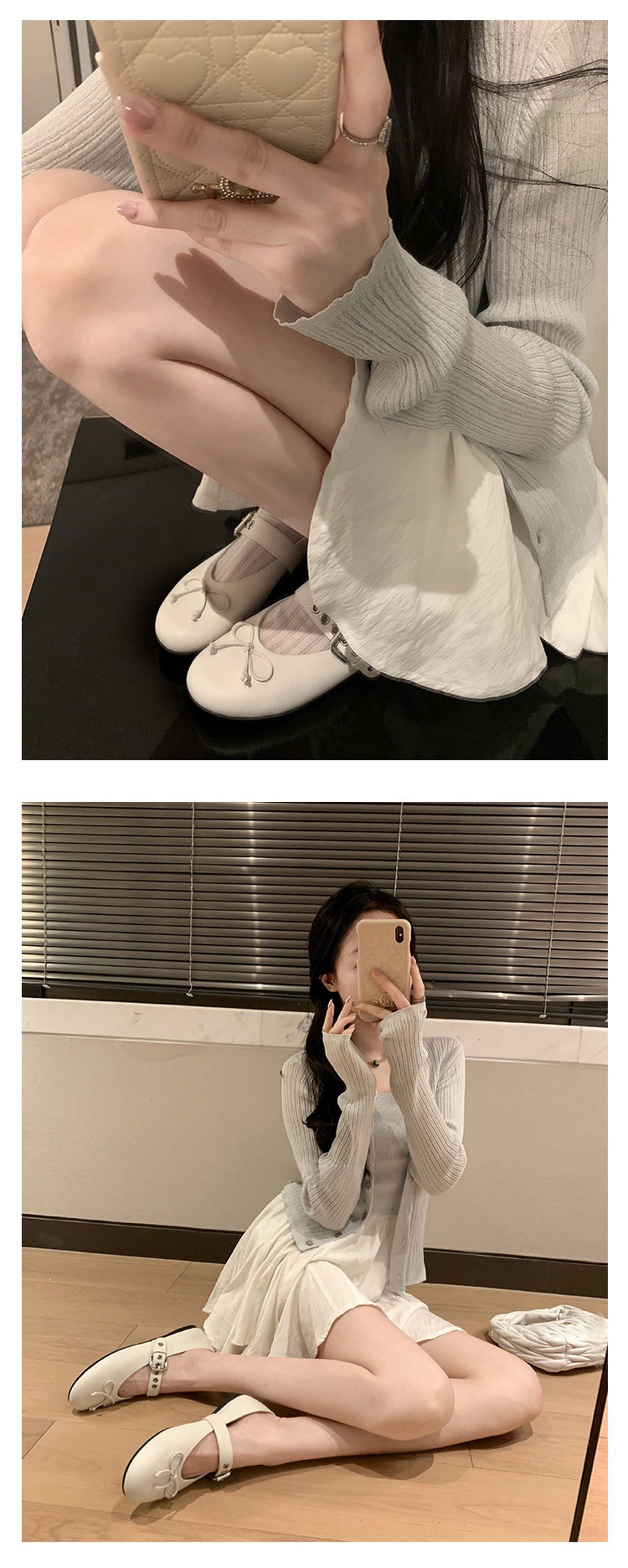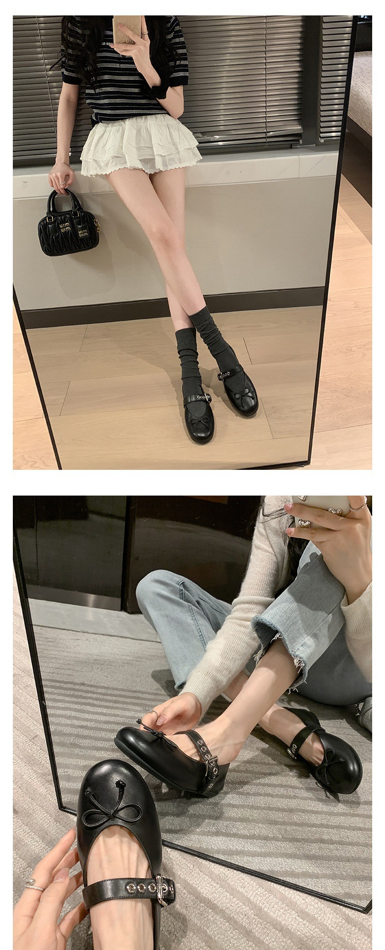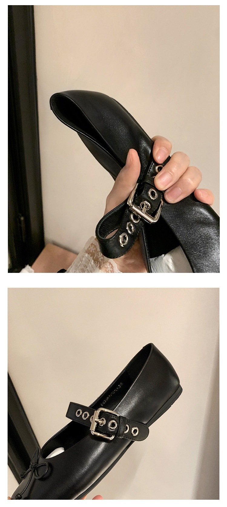 인터넷 유명인 수인인과 같은 스타일의 독특한 소녀~ 리본 장식 양가죽 플랫 발레 슈즈 여성용 메리제인 슈즈