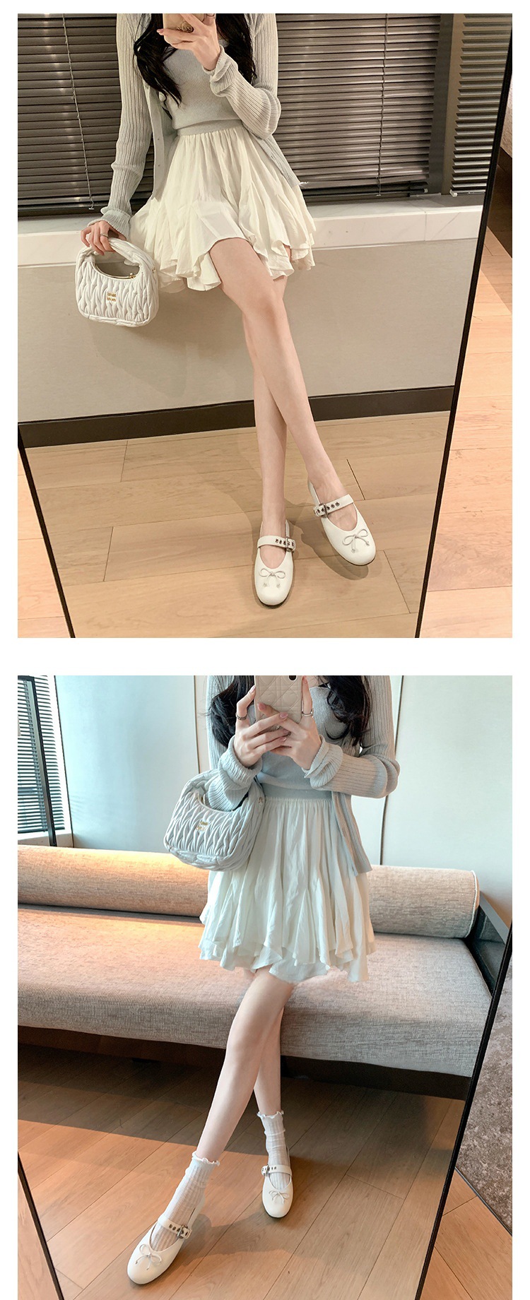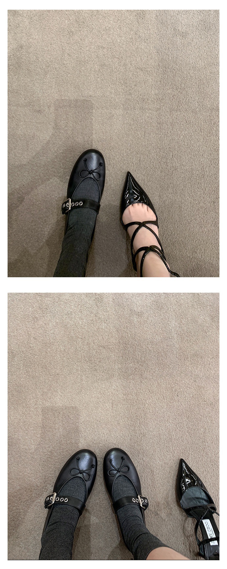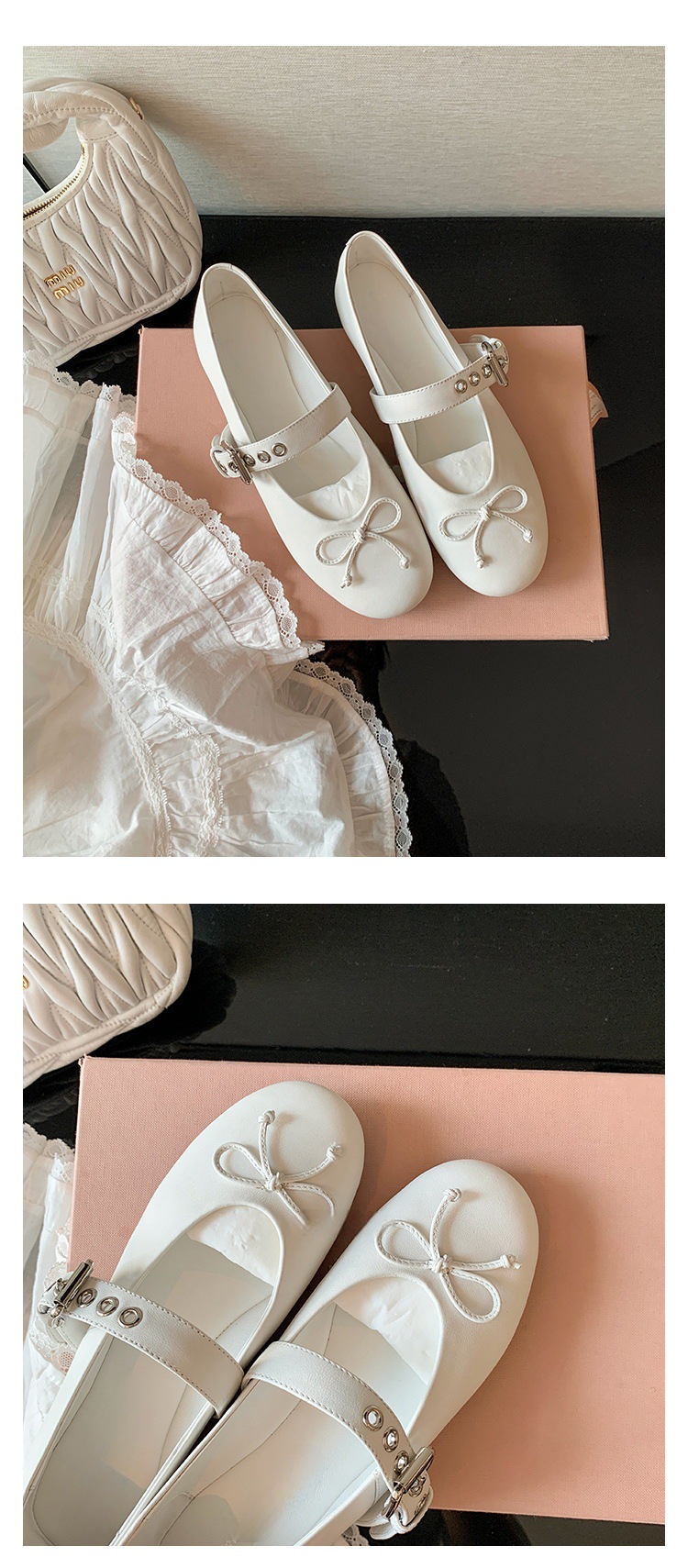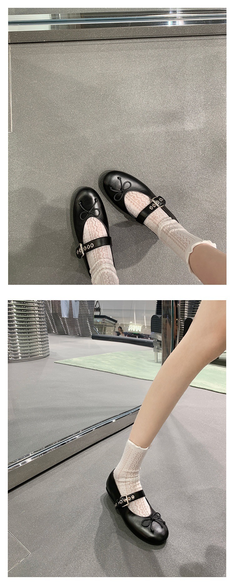 인터넷 유명인 수인인과 같은 스타일의 독특한 소녀~ 리본 장식 양가죽 플랫 발레 슈즈 여성용 메리제인 슈즈