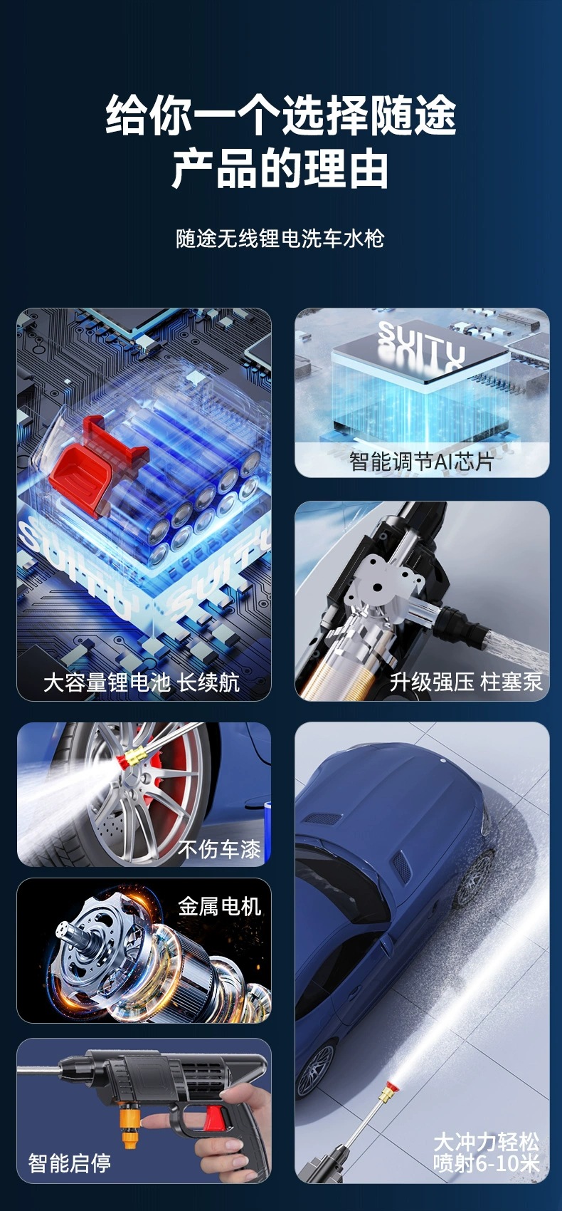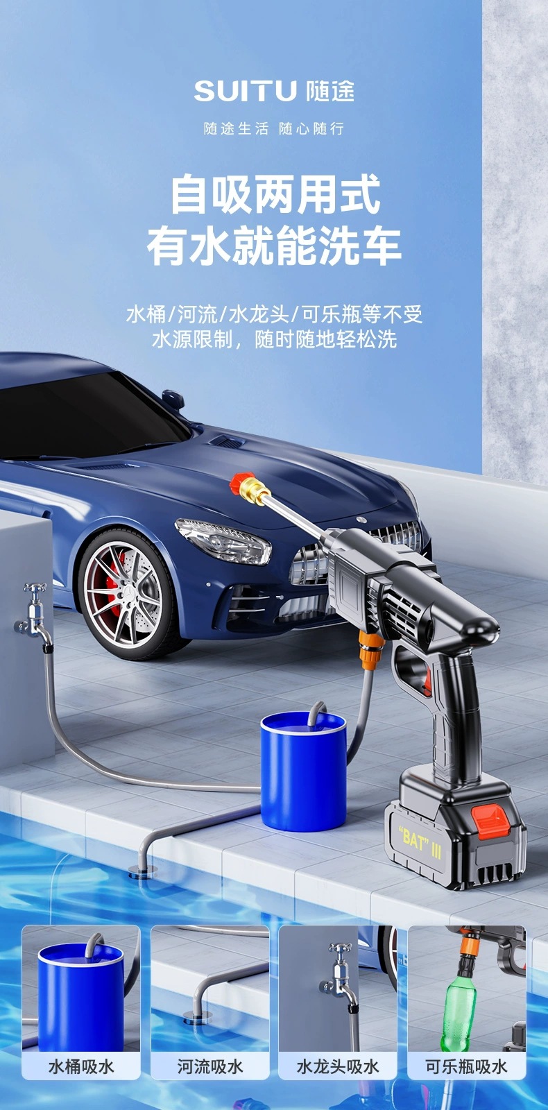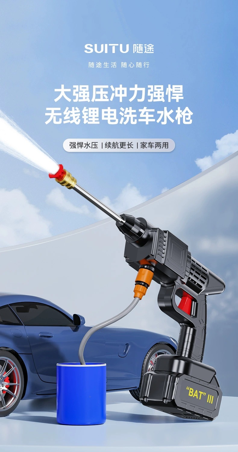무선 세차 물총 물 스프레이 건 가정용 휴대용 리튬 배터리 충전식 고압 세차 물총 세차 기계 도매