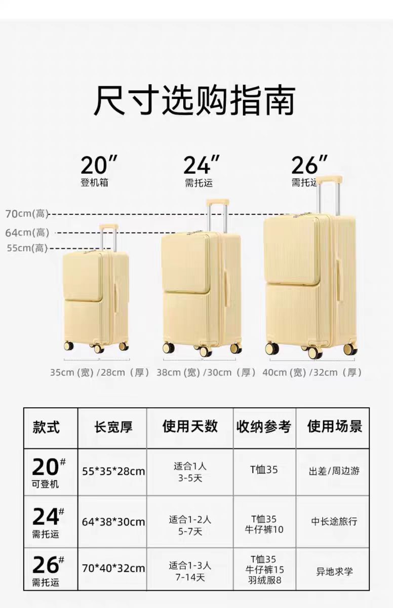 전면 개방형 수하물 여성용 대용량 24inch 트롤리 케이스 남성용 낙하 방지 가방 New 20inch 탑승 케이스 가방