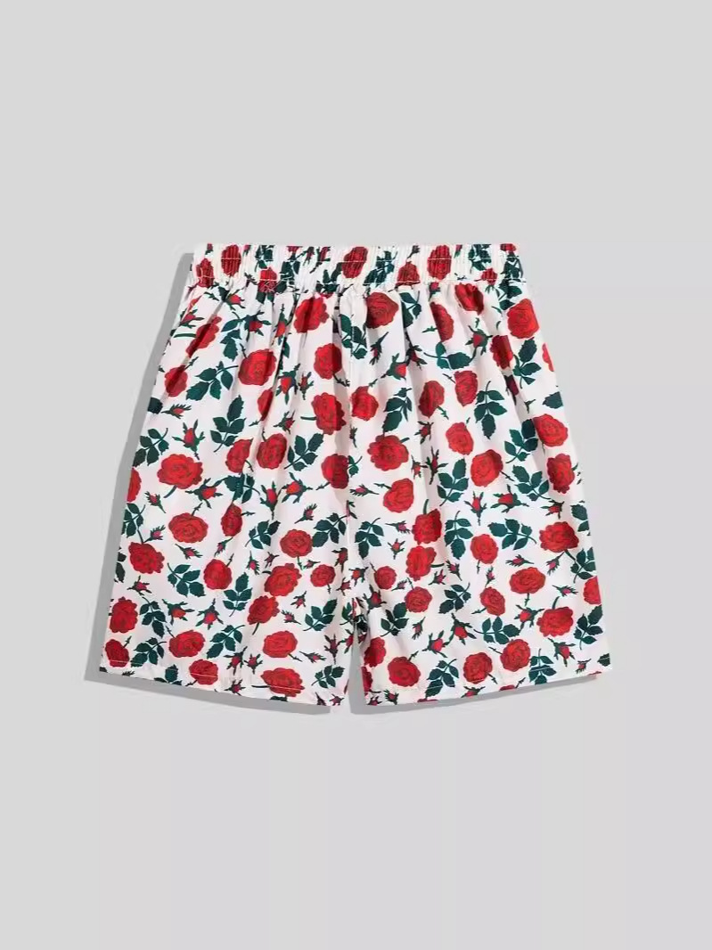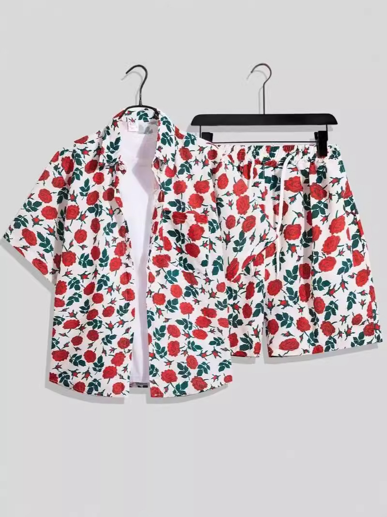 해변 해변 하와이 반팔 꽃 셔츠 세트 남자 여름 유행 브랜드 셔츠 투피스 세트