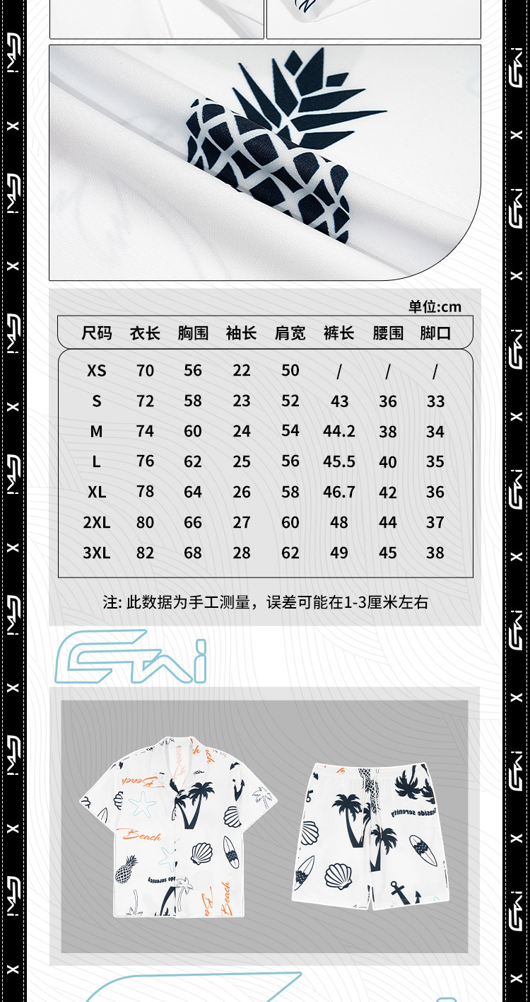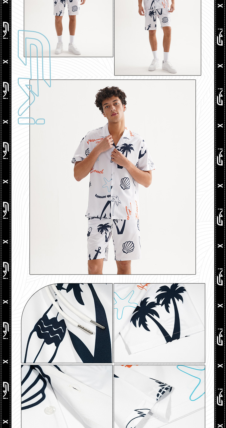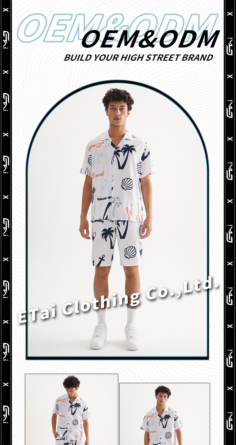 ETAI 남성복 | 여름 캐주얼 비치 스타일 루즈 슈트 패션 하와이안 프린트 셔츠 반바지 투피스 세트