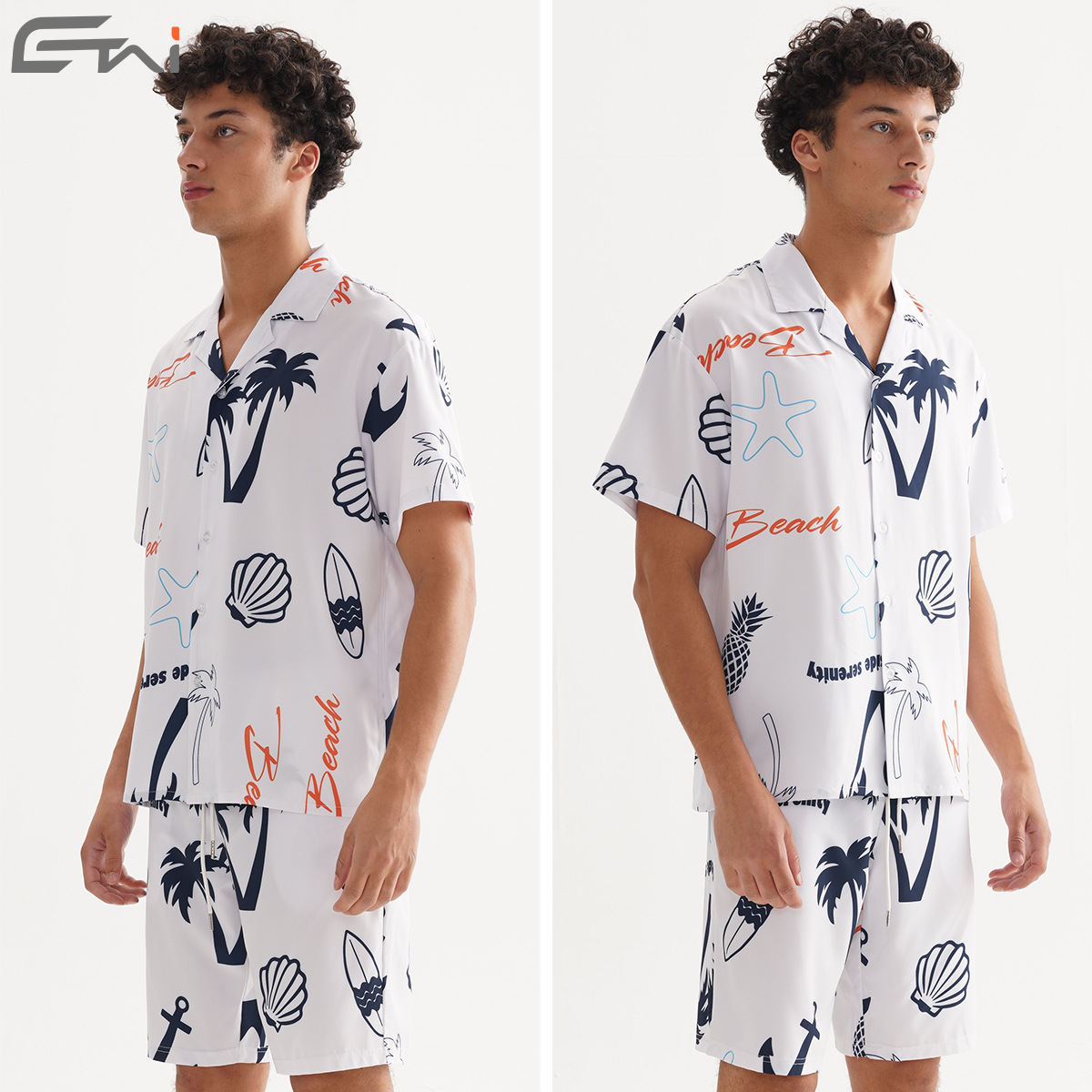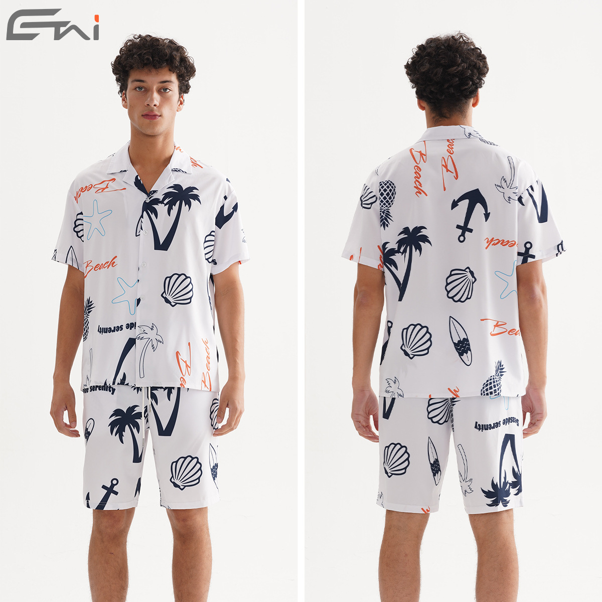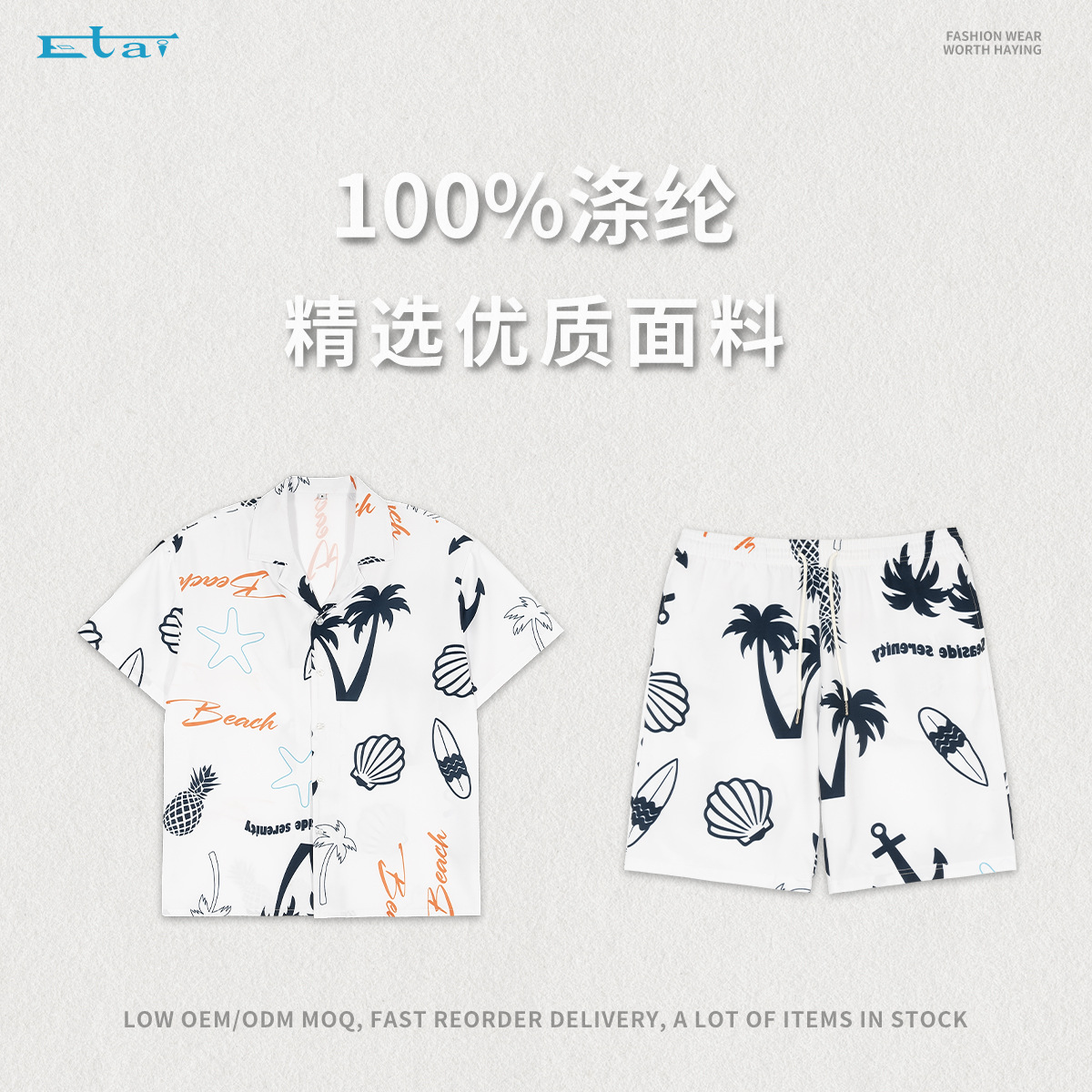 ETAI 남성복 | 여름 캐주얼 비치 스타일 루즈 슈트 패션 하와이안 프린트 셔츠 반바지 투피스 세트