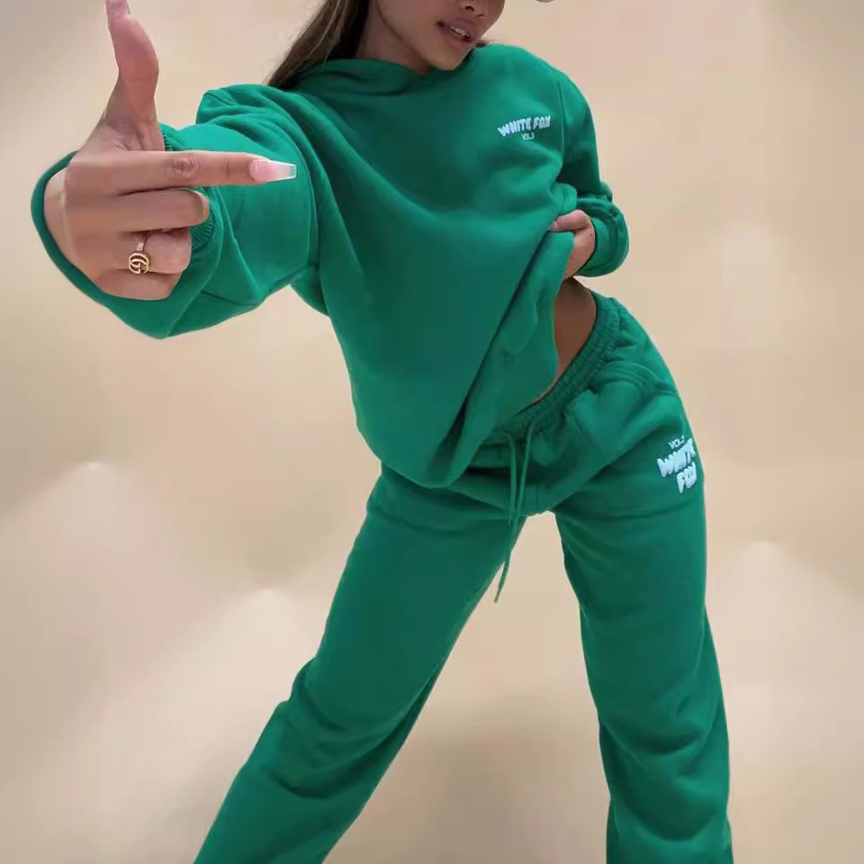 2024 새로운 유럽과 미국의 편지 인쇄 스웨터와 스웨트 팬츠 정장 패션 스포츠 캐주얼 긴팔 풀오버 후드 정장