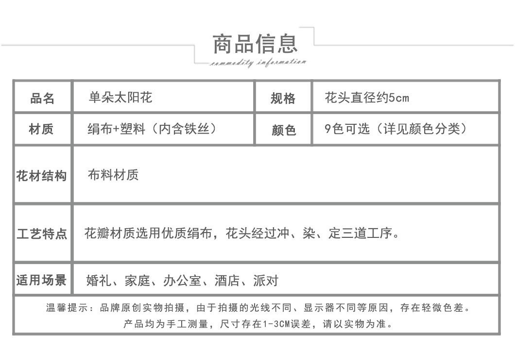 단일 해바라기 모조 꽃 머리핀 DIY 화환 도매 장식 웨딩 레트로 꽃 코사지 사진 소품