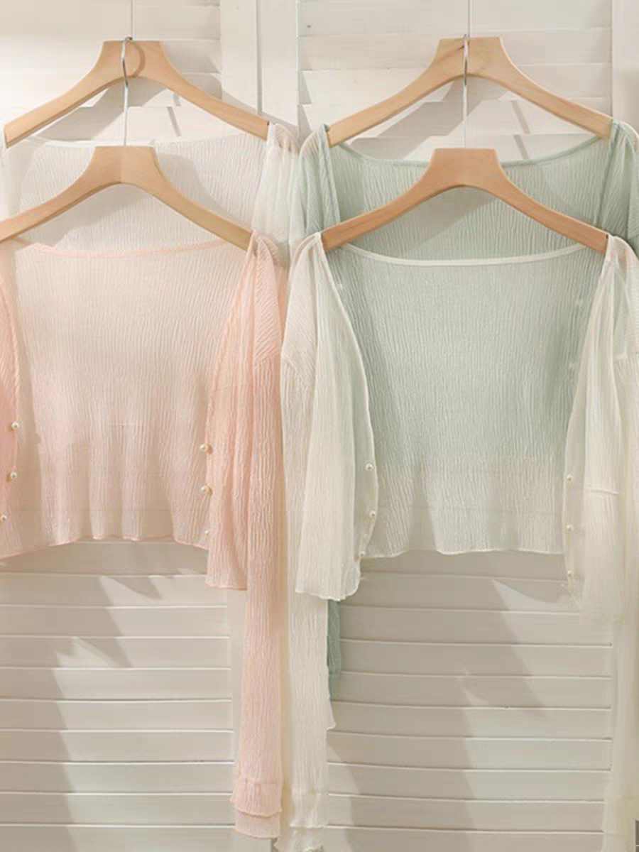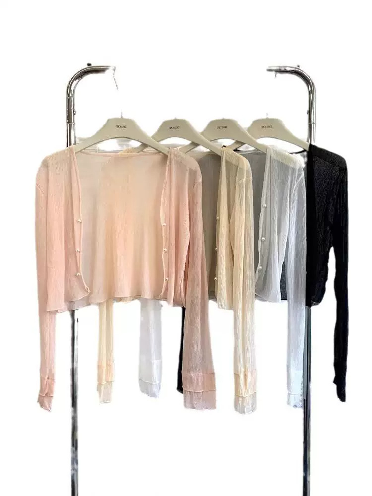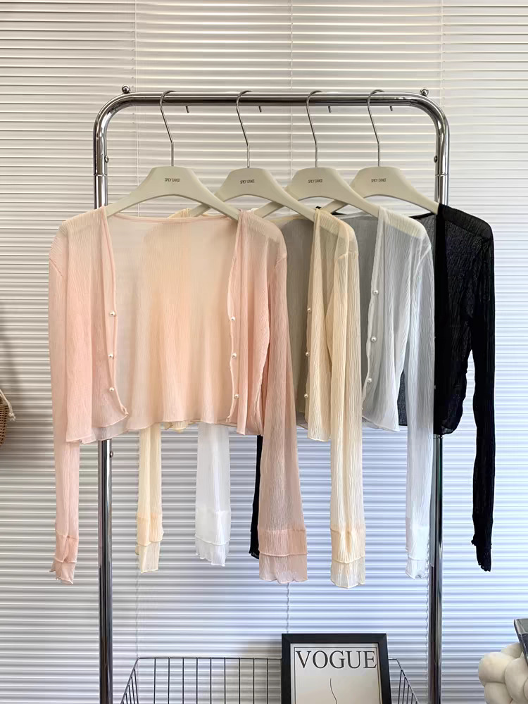외부 착용 얇은 치마 쉬폰 작은 목도리 니트 아이스 실크 태양 보호 카디건 여성의 여름 에어컨 셔츠 짧은 블라우스