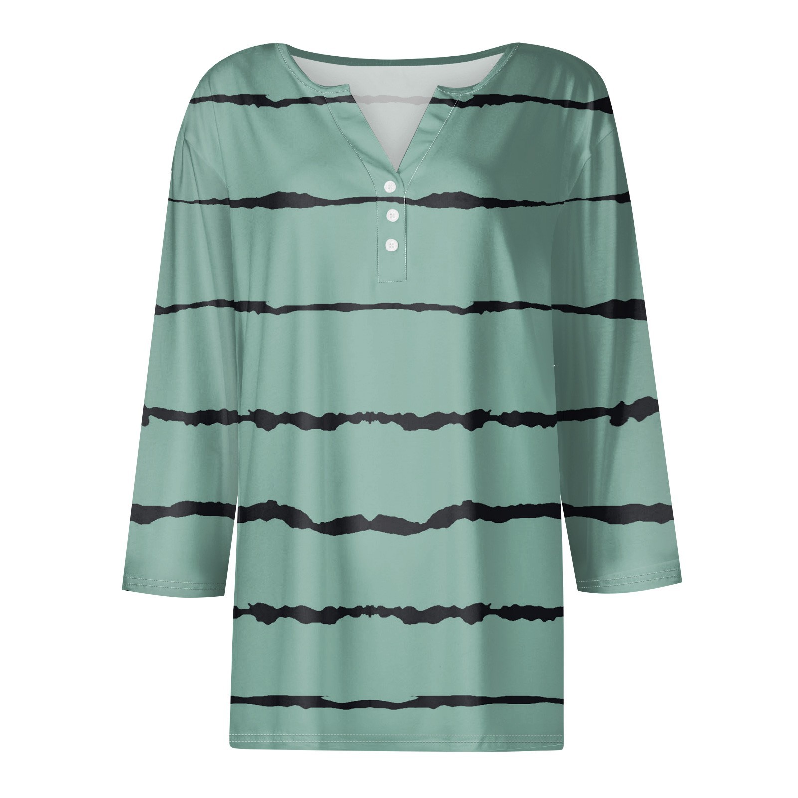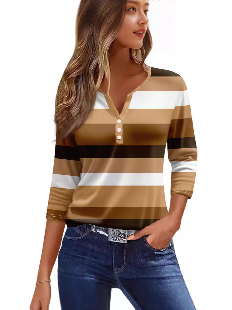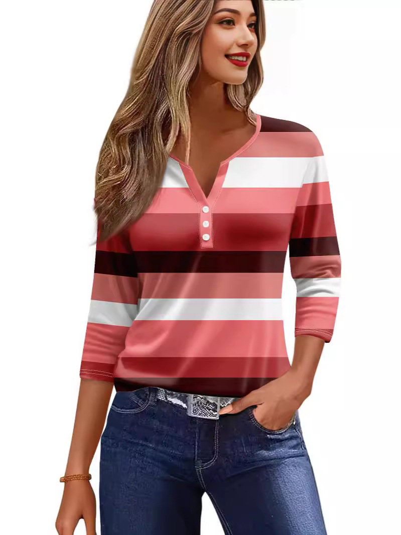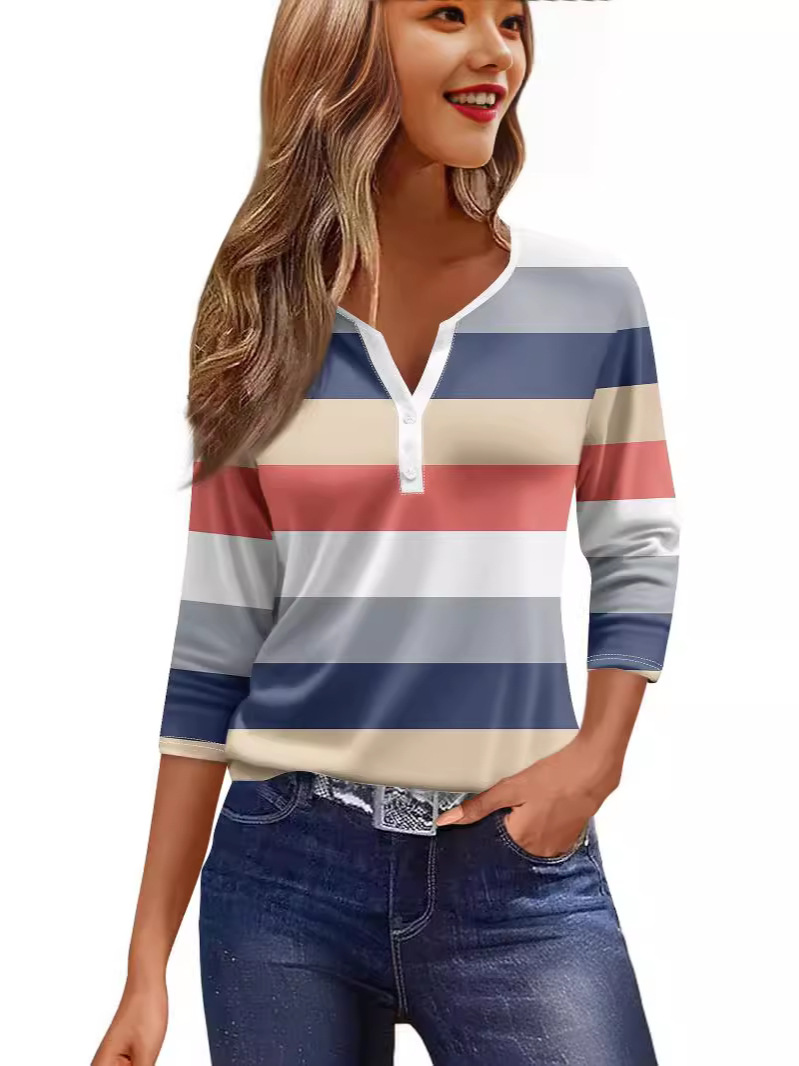 2024 아마존 폭발 여성 티셔츠 V-Neck 3 버튼 인쇄 짧은 소매 유럽과 미국 여성의 최고 소스 공장