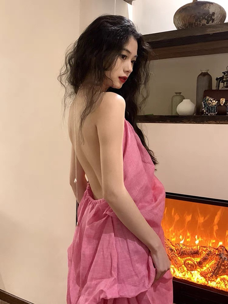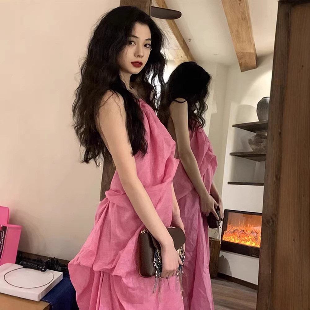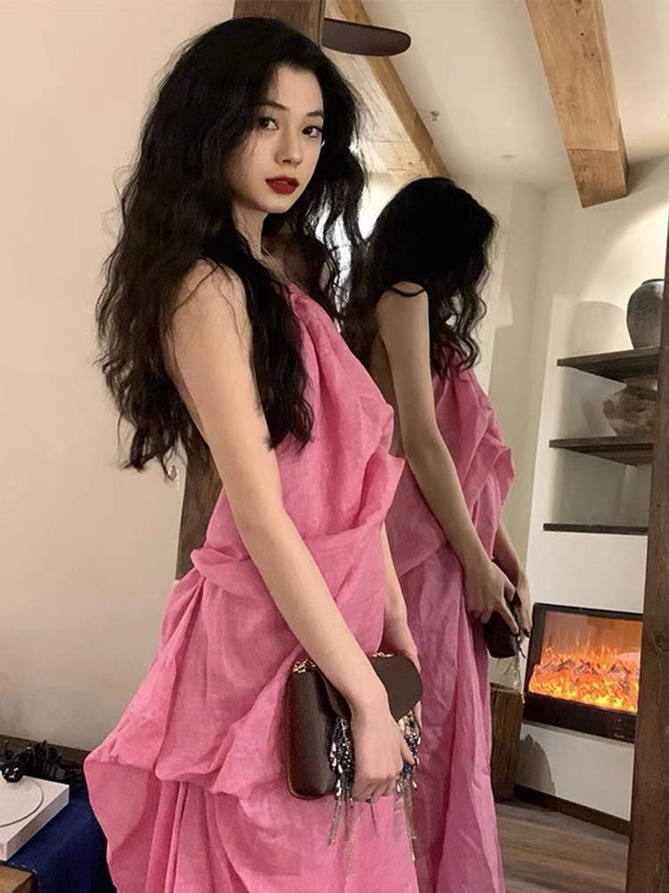 프랑스 스타일 싼야 해변 휴일 원피스 윈난 태국 여행 사진 슈퍼 페어리 넥 교수형 스트랩 원피스