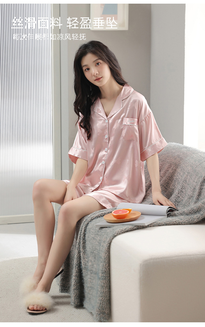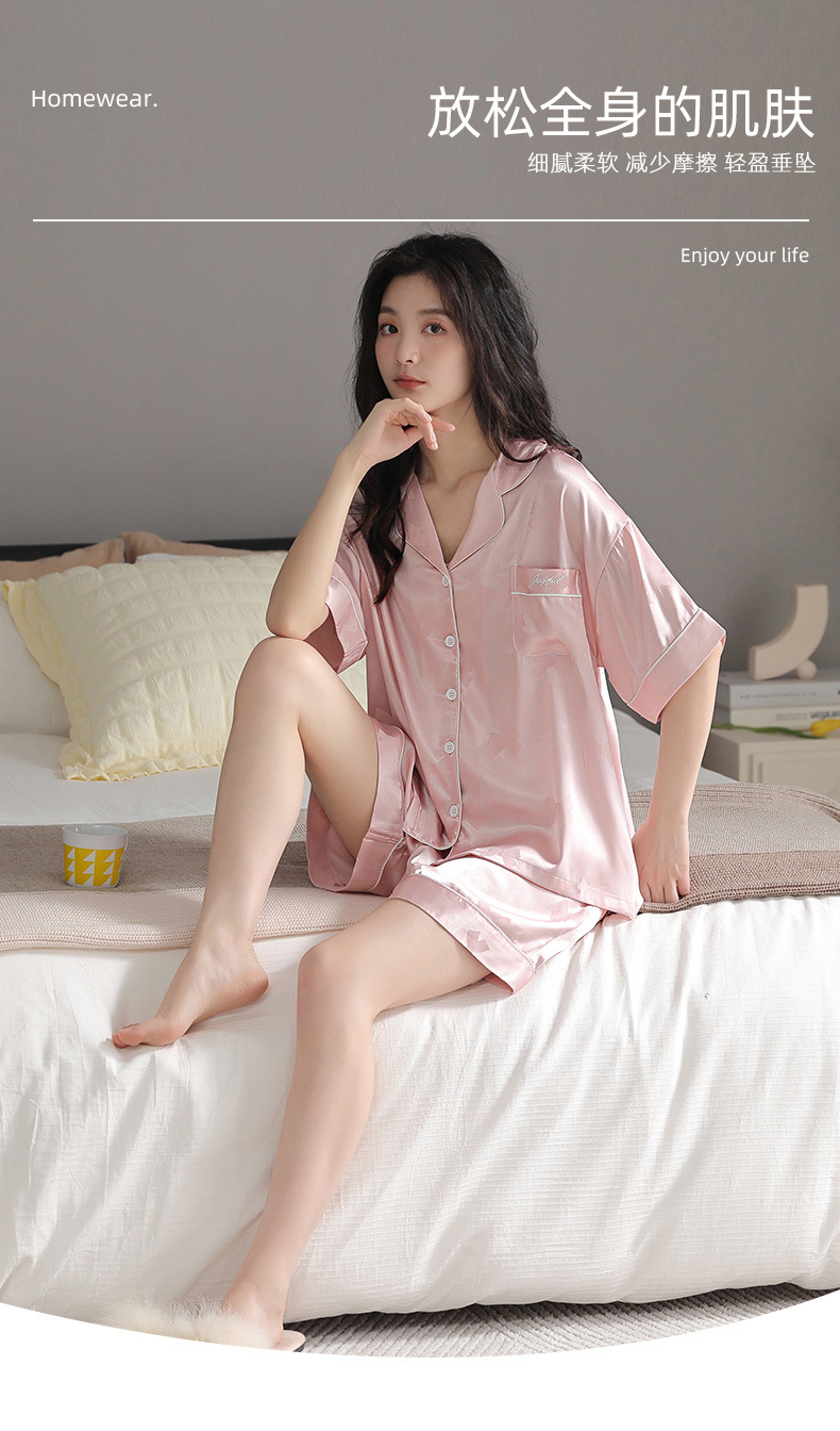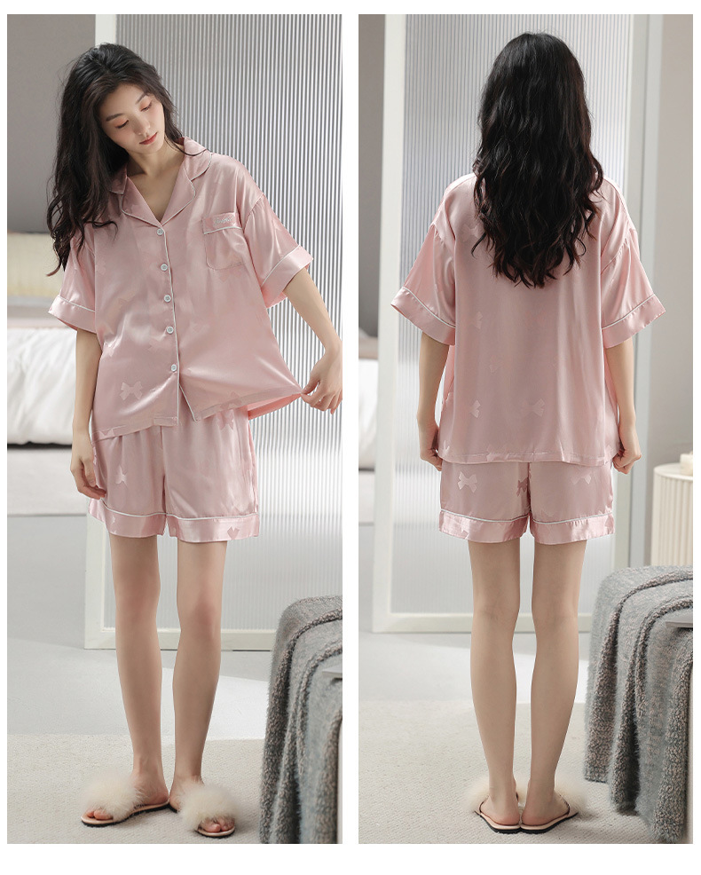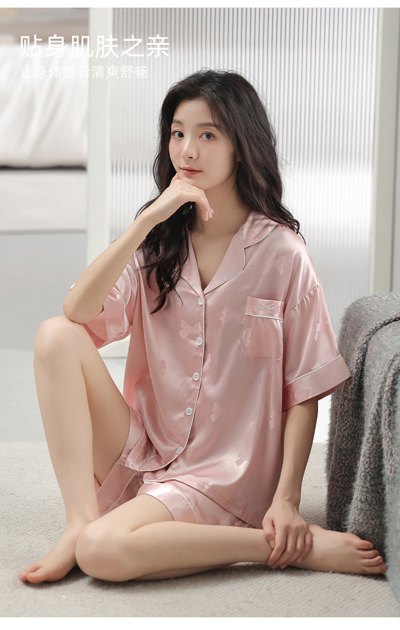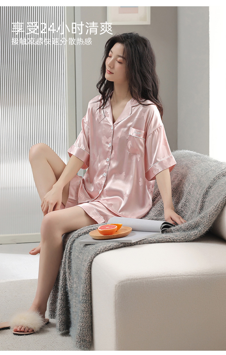 2024 새로운 도착 파자마 여성 여름 아이스 실크 하이 엔드 얇은 반팔 핑크 실크 소녀의 겉옷 홈 옷