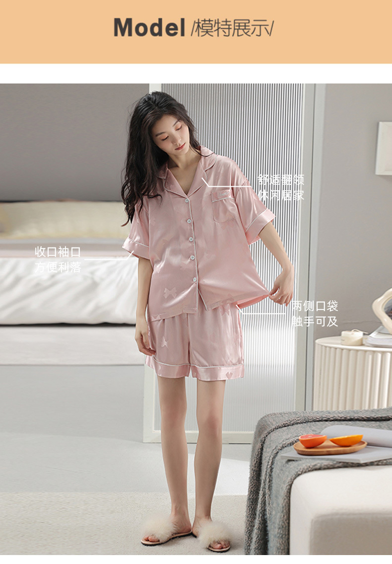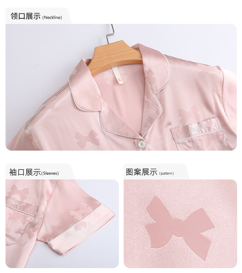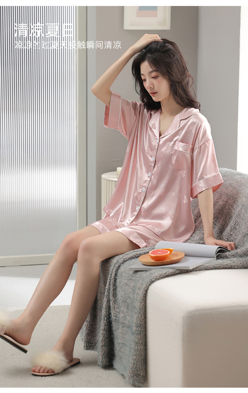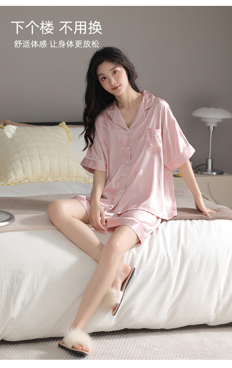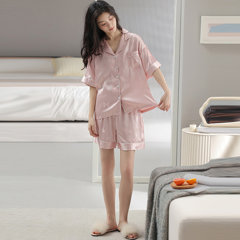 2024 새로운 도착 파자마 여성 여름 아이스 실크 하이 엔드 얇은 반팔 핑크 실크 소녀의 겉옷 홈 옷