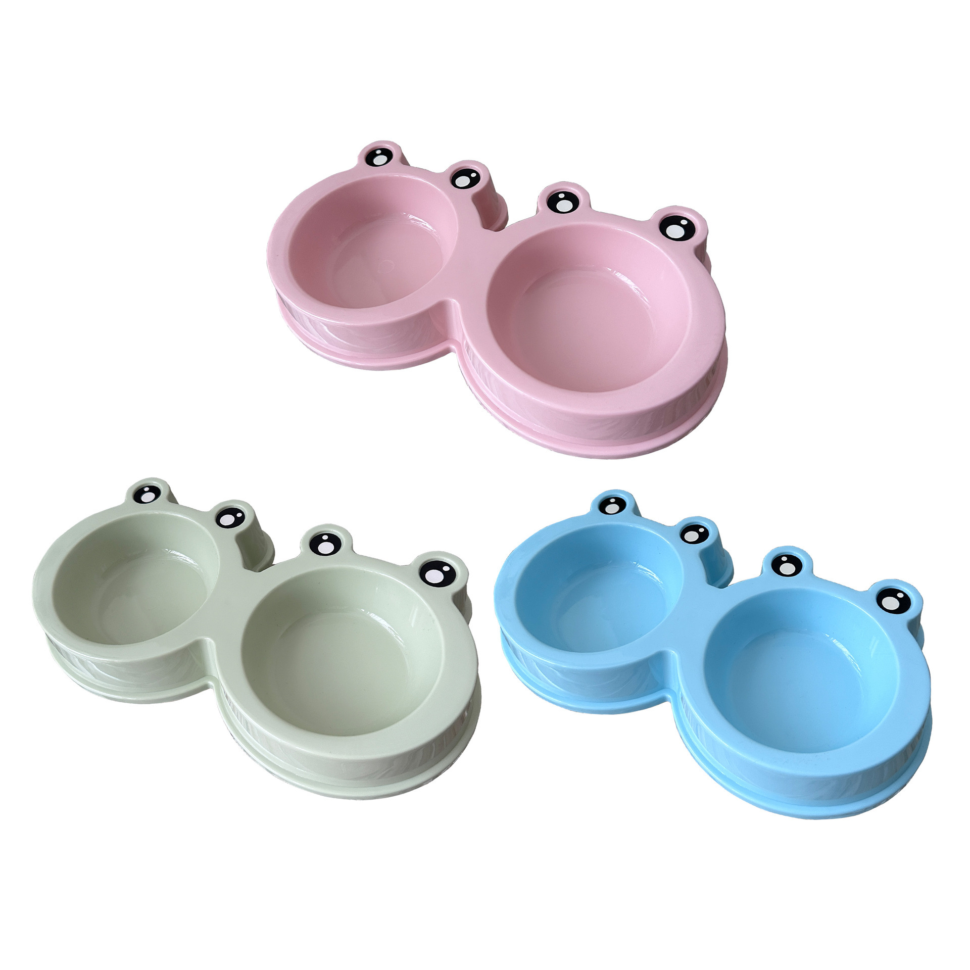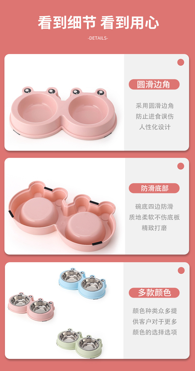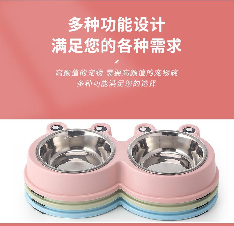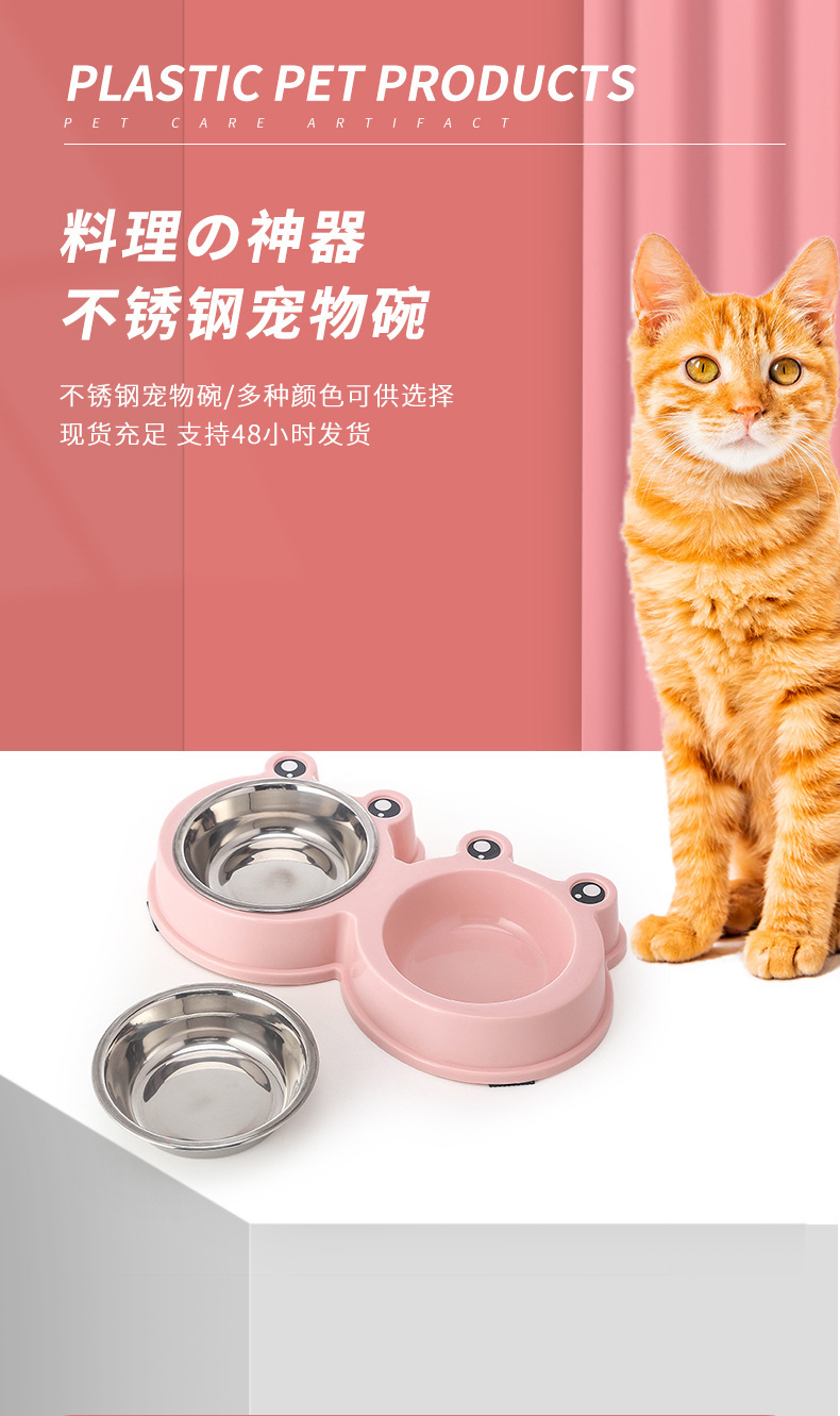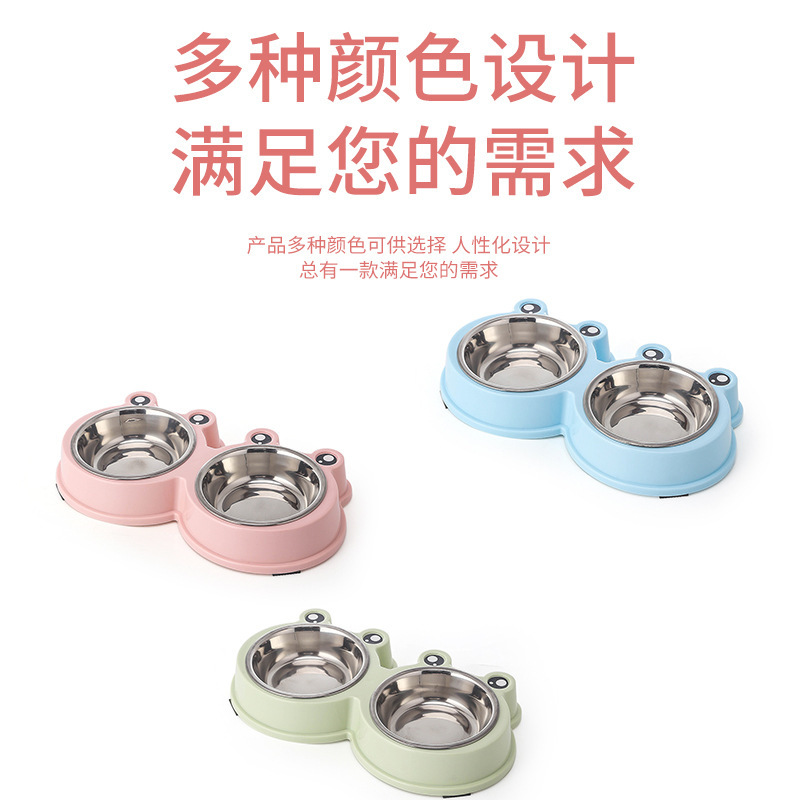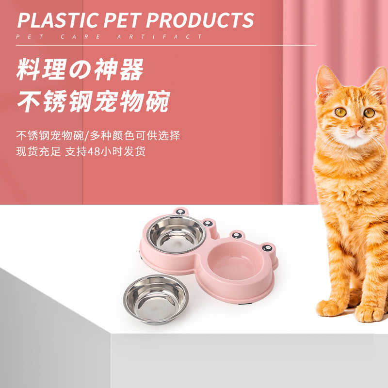 국경 간 새로운 애완 동물 그릇 만화 큰 눈 개구리 더블 그릇 애완 동물 스테인레스 스틸 그릇 고양이 그릇 애완 동물 용품