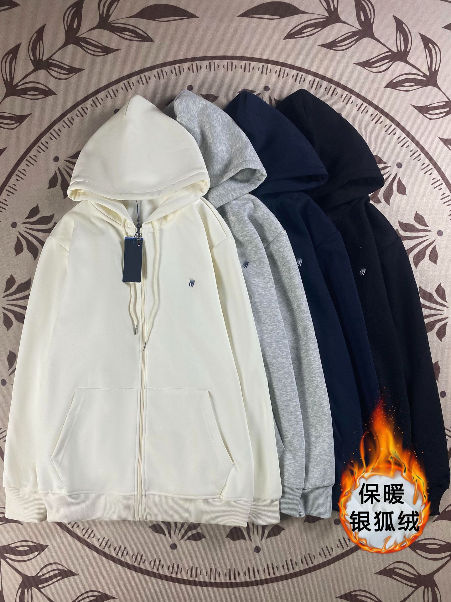 크로스보더 대형 사이즈 리틀 레드 마 후드 RL 가디건 순면 스웨트셔츠 자수 대형 사이즈 남성 폴로 후드 스웨트셔츠 재킷