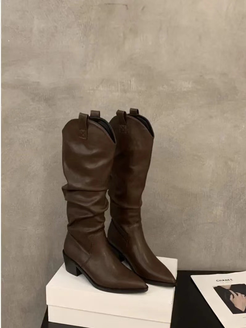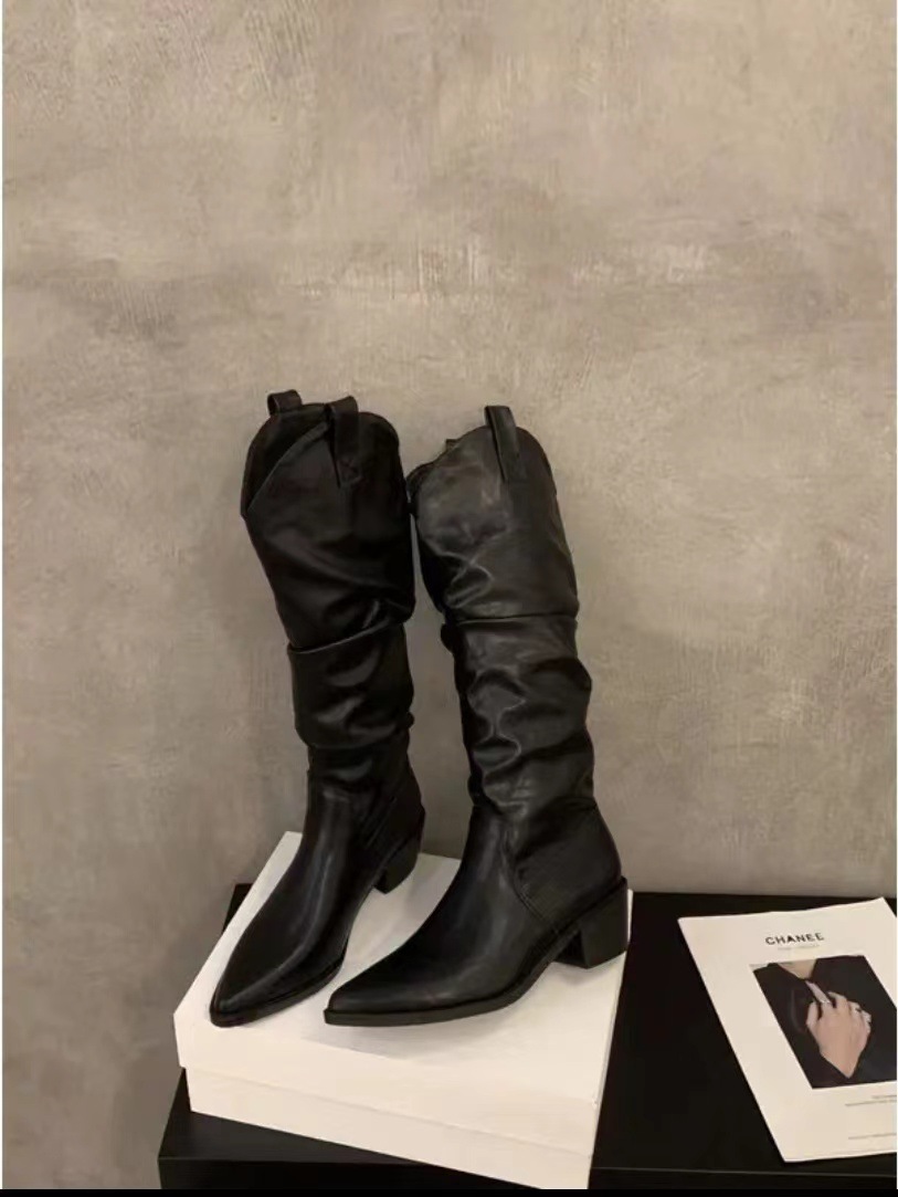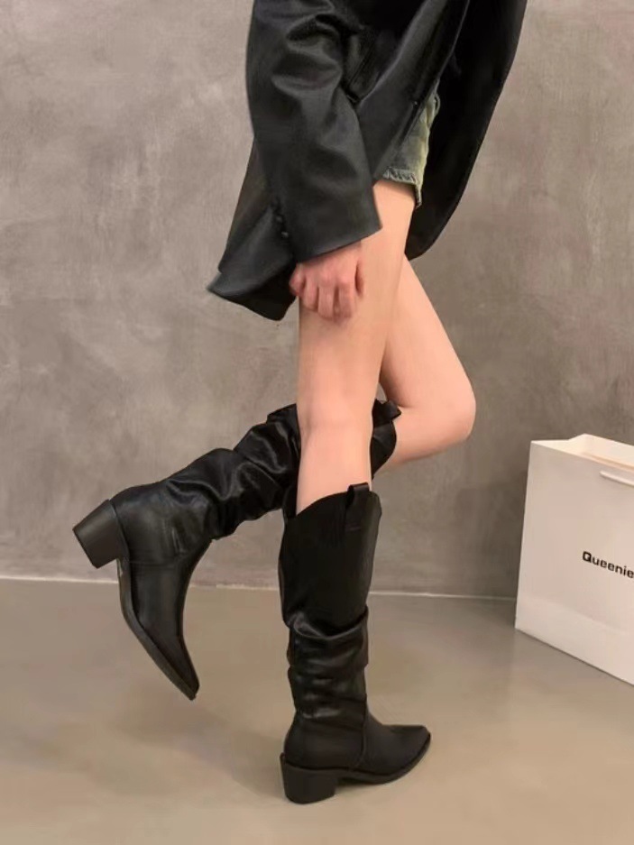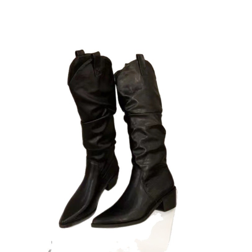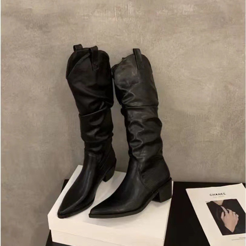2024 가을과 겨울 새로운 두꺼운 뒤꿈치 뾰족한 V-입 얇은 긴 트렌디 쿨 편안한 포인팅 마틴 여성용 부츠