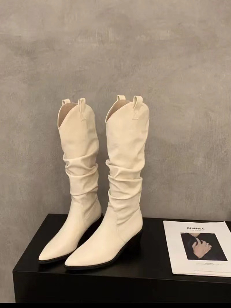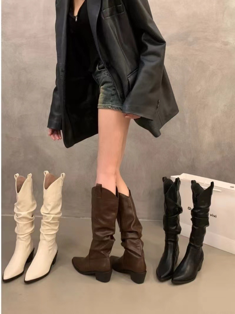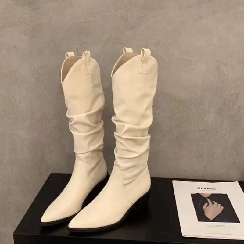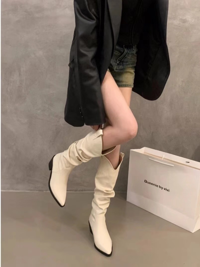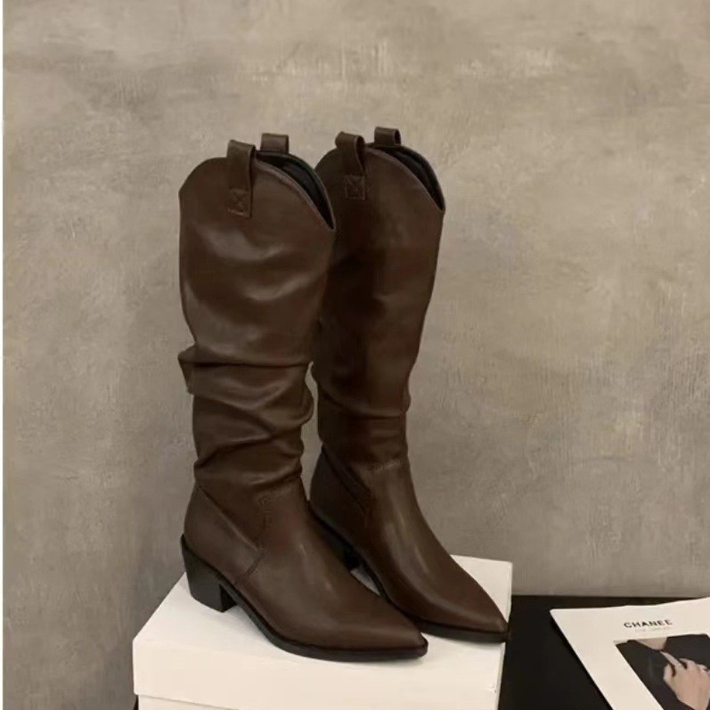 2024 가을과 겨울 새로운 두꺼운 뒤꿈치 뾰족한 V-입 얇은 긴 트렌디 쿨 편안한 포인팅 마틴 여성용 부츠