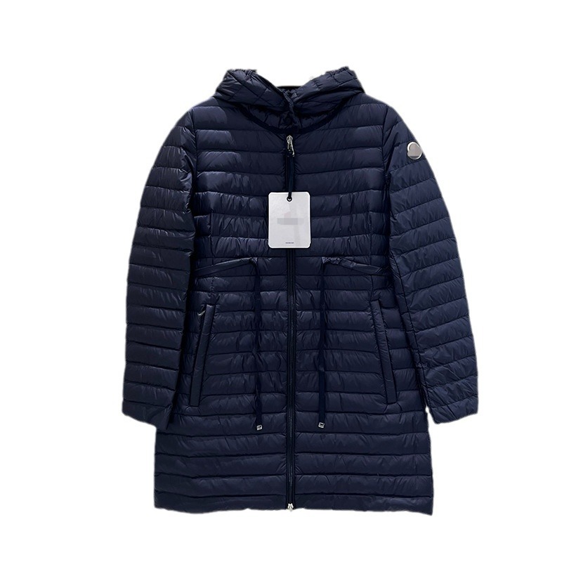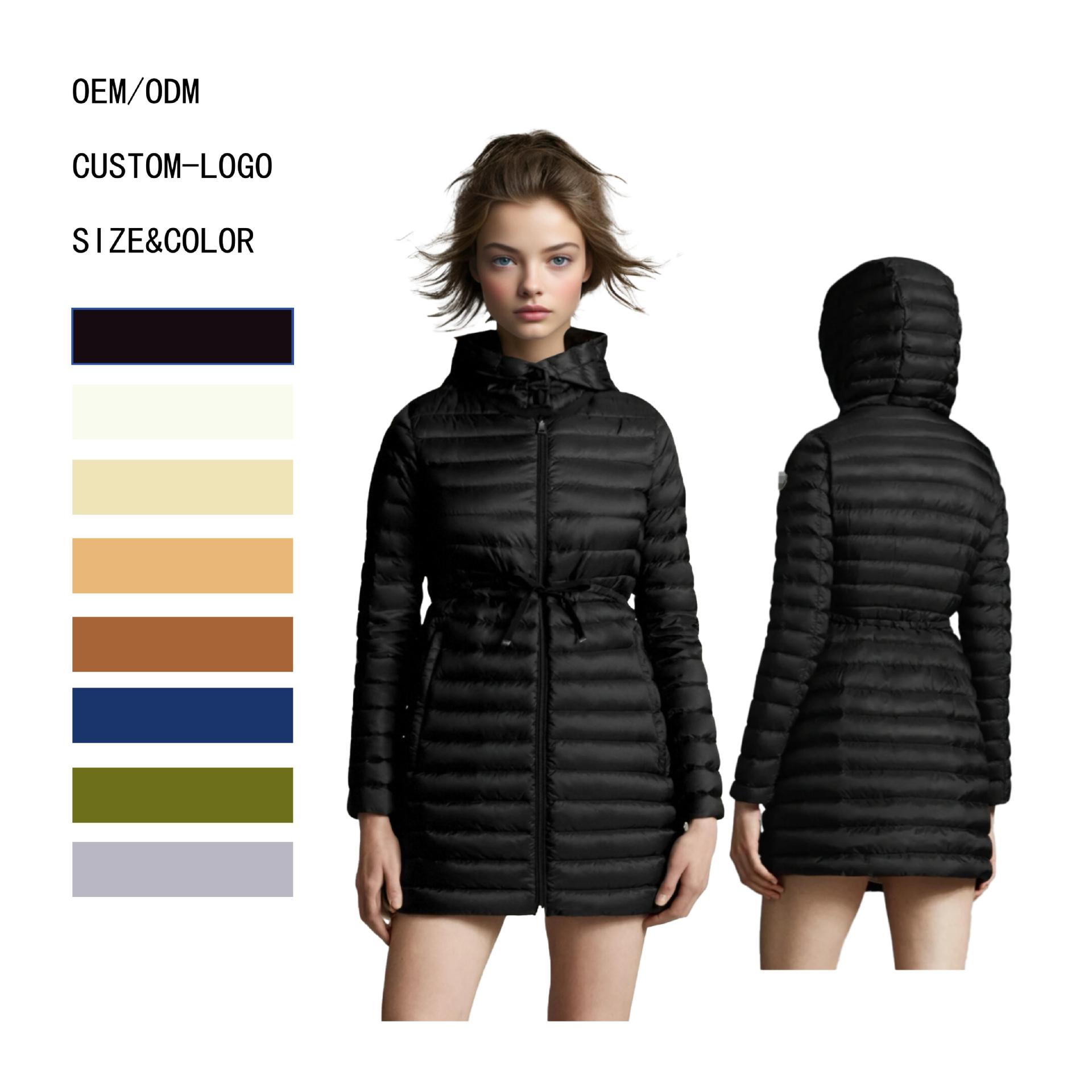2024 뜨거운 제품 여성 겨울 슬림 다운 재킷 긴 후드 재킷 라이트 퀼트 넥타이 허리 패션 재킷