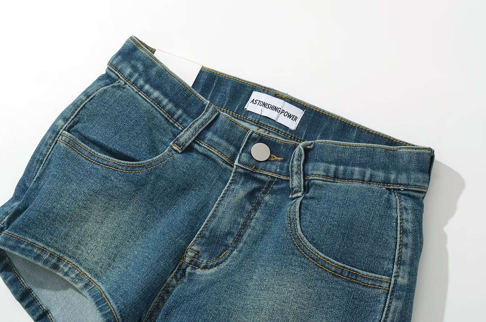 전체 힙합 패드 뜨거운 소녀 낮은 허리 데님 반바지 여성 여름 미국식 꽉 막힌 라인 허리 얇은 엉덩이 핫 팬츠