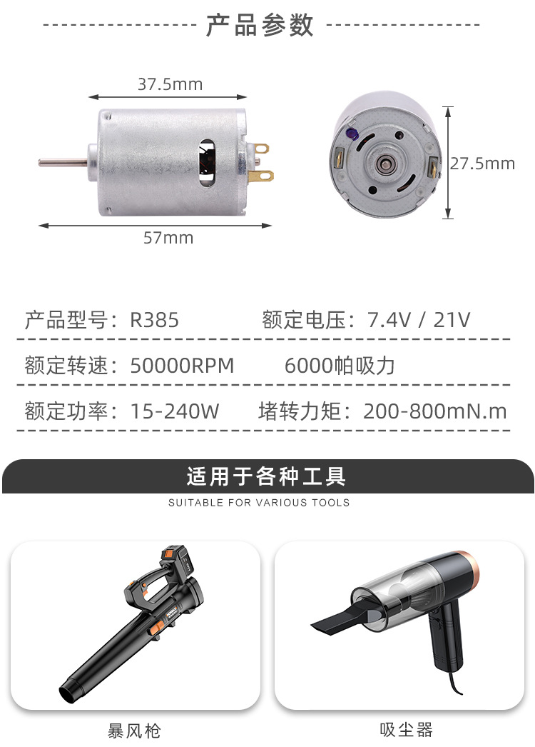 R385 마이크로 모터 진공 청소기 대형 토크 진동 모터 브러시 DC 폭풍 총 모터 모터 도매