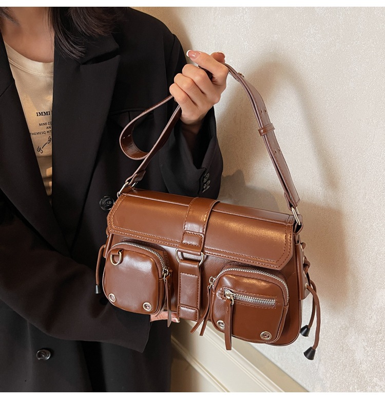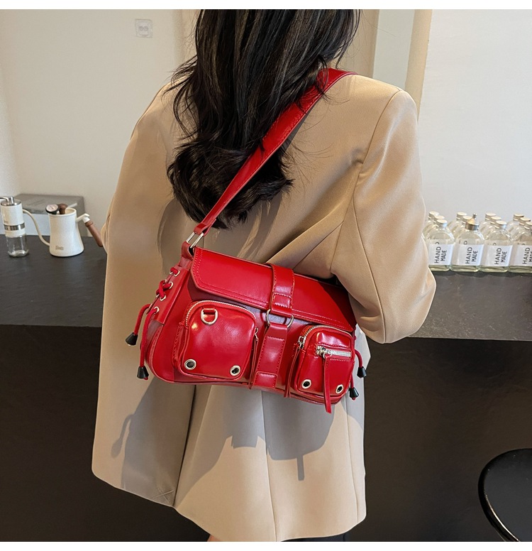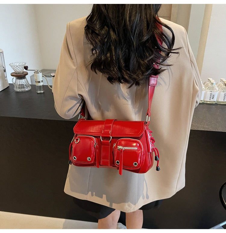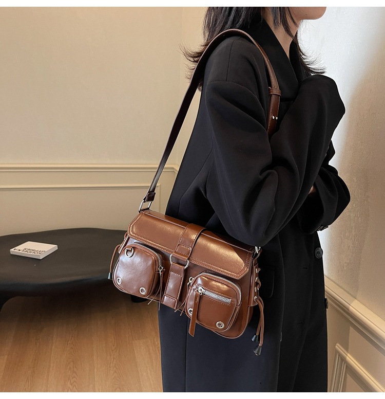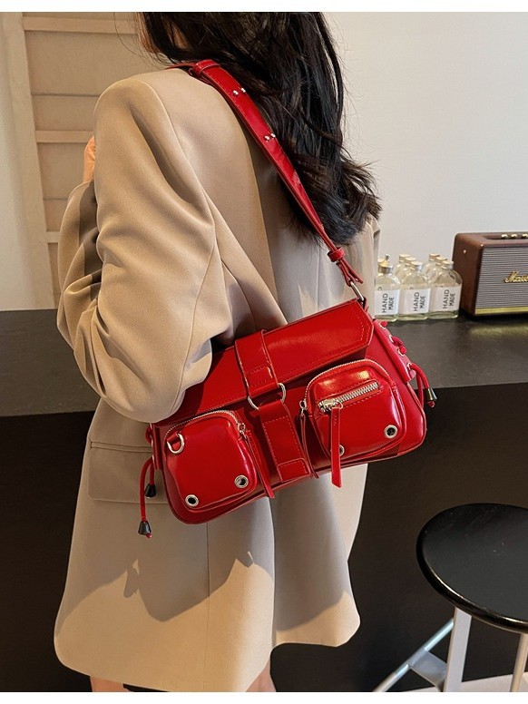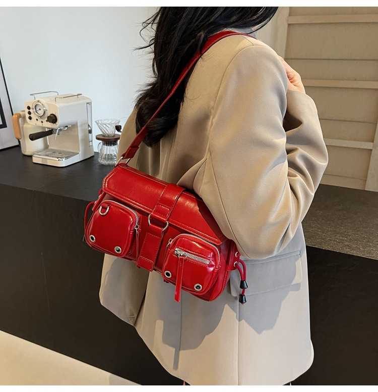 문자 메시지 시원한 뜨거운 소녀 겨드랑이 가방 바게트 가방 여성의 2024 새로운 틈새 디자인 오토바이 가방 숄더백 메신저 가방