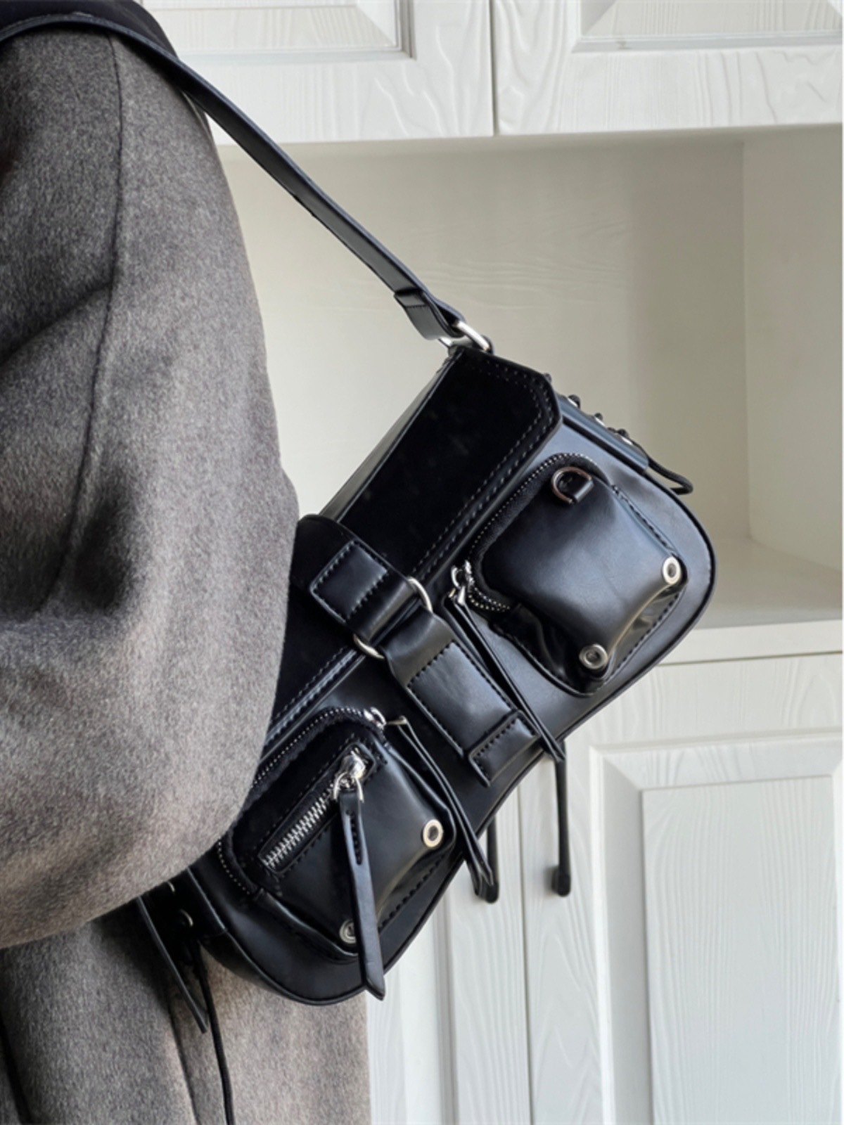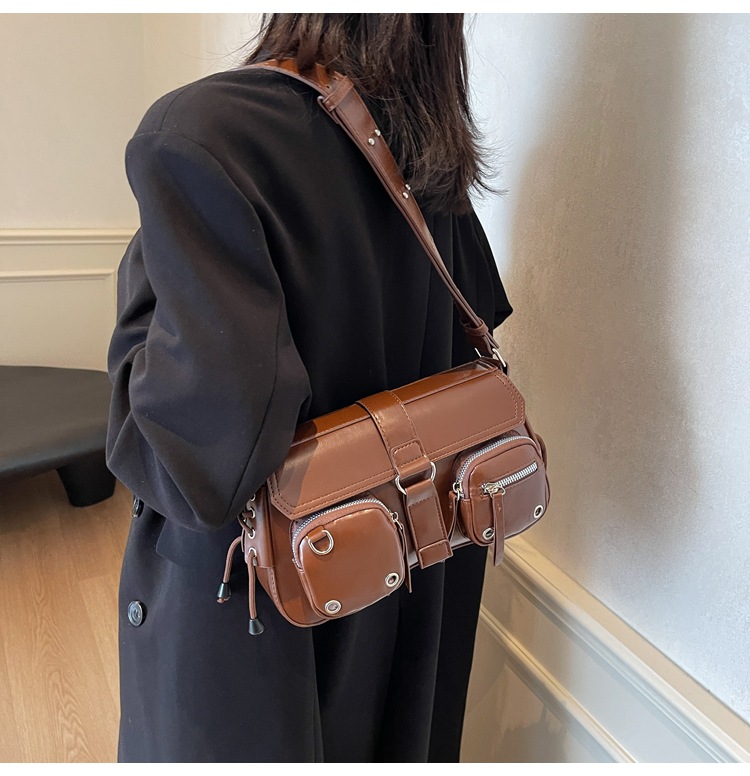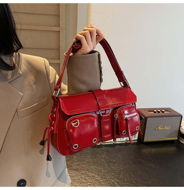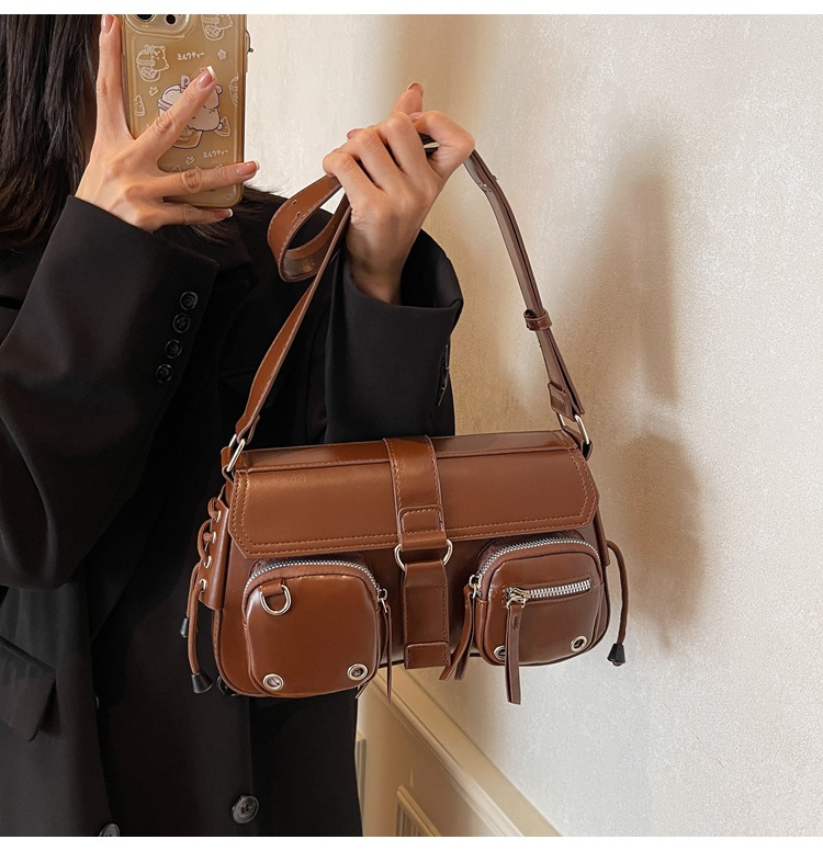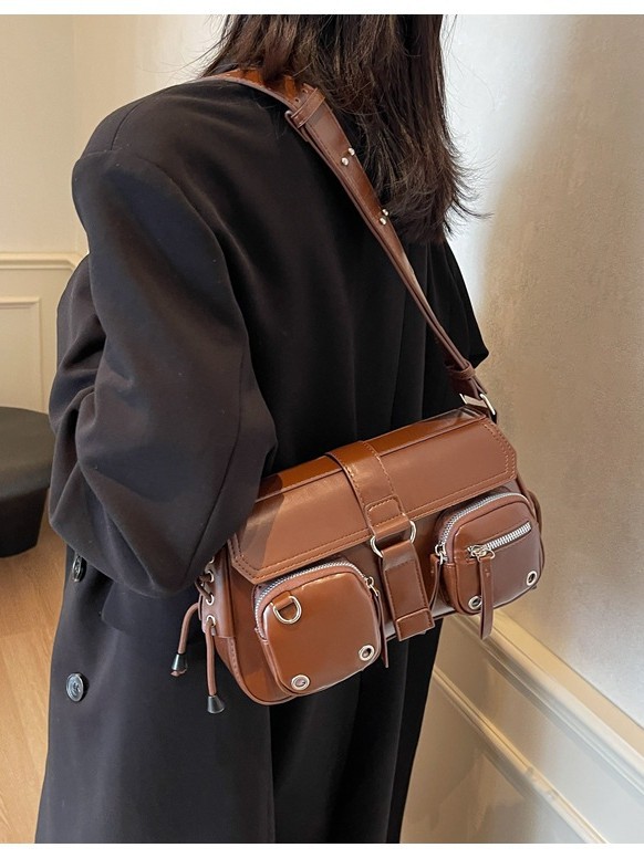 문자 메시지 시원한 뜨거운 소녀 겨드랑이 가방 바게트 가방 여성의 2024 새로운 틈새 디자인 오토바이 가방 숄더백 메신저 가방