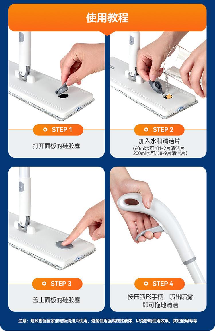 Bao Jiajie 손으로 씻을 수있는 무료 플랫 걸레 바닥 걸레 인공물 스프레이 2024 새로운 가정용 게으른 걸레 그물