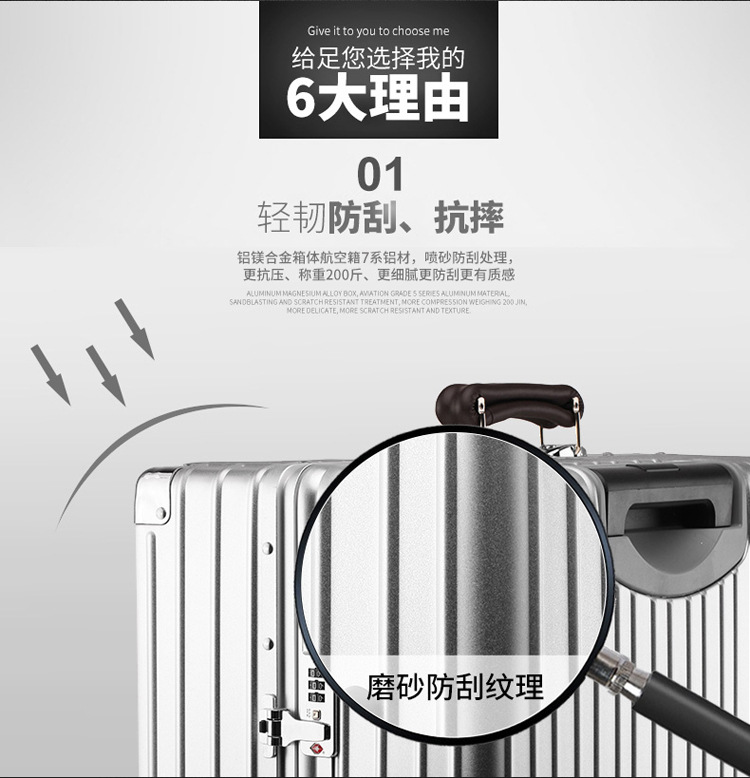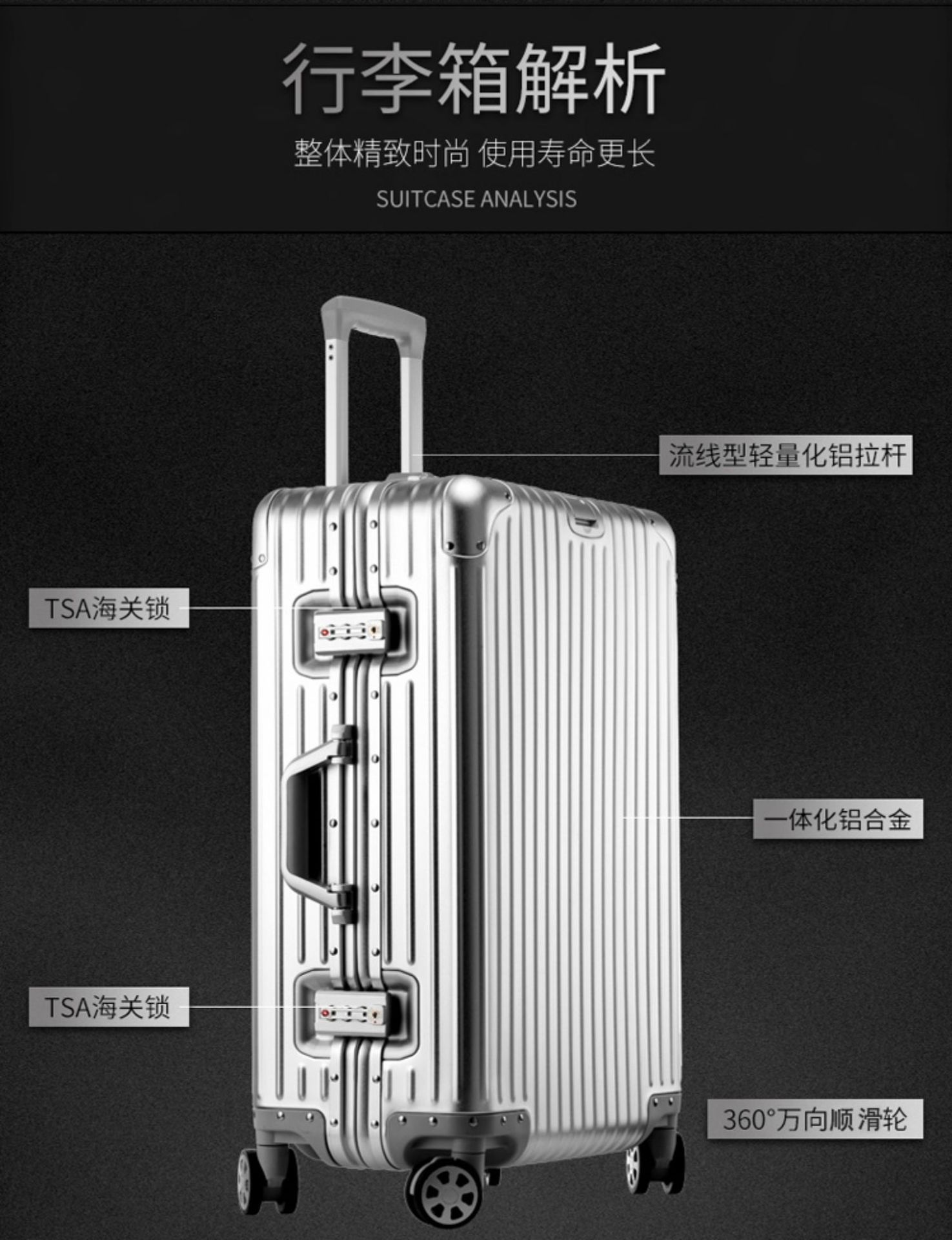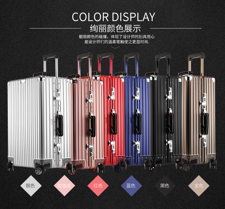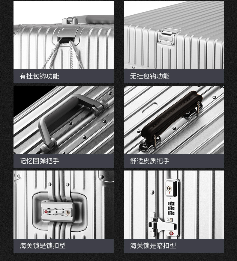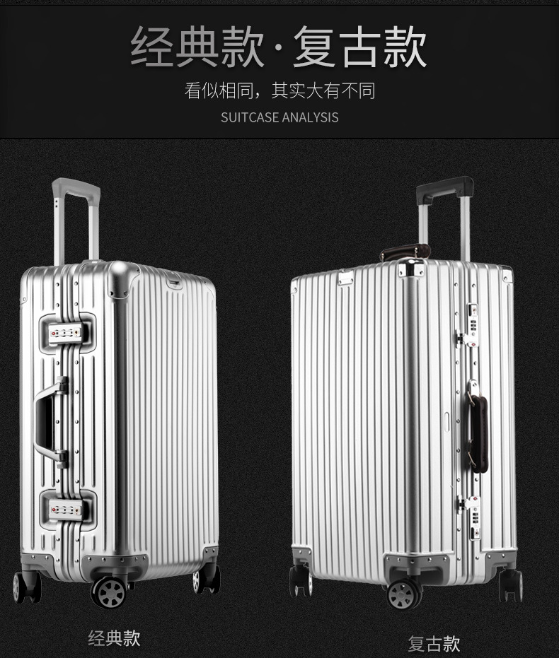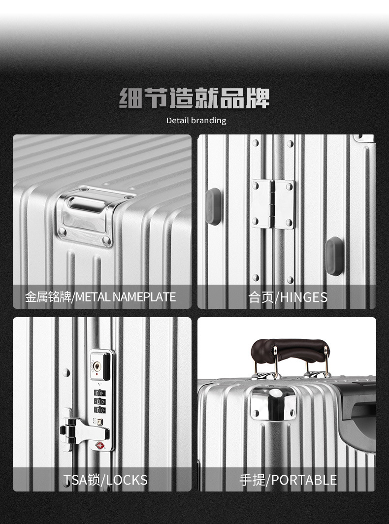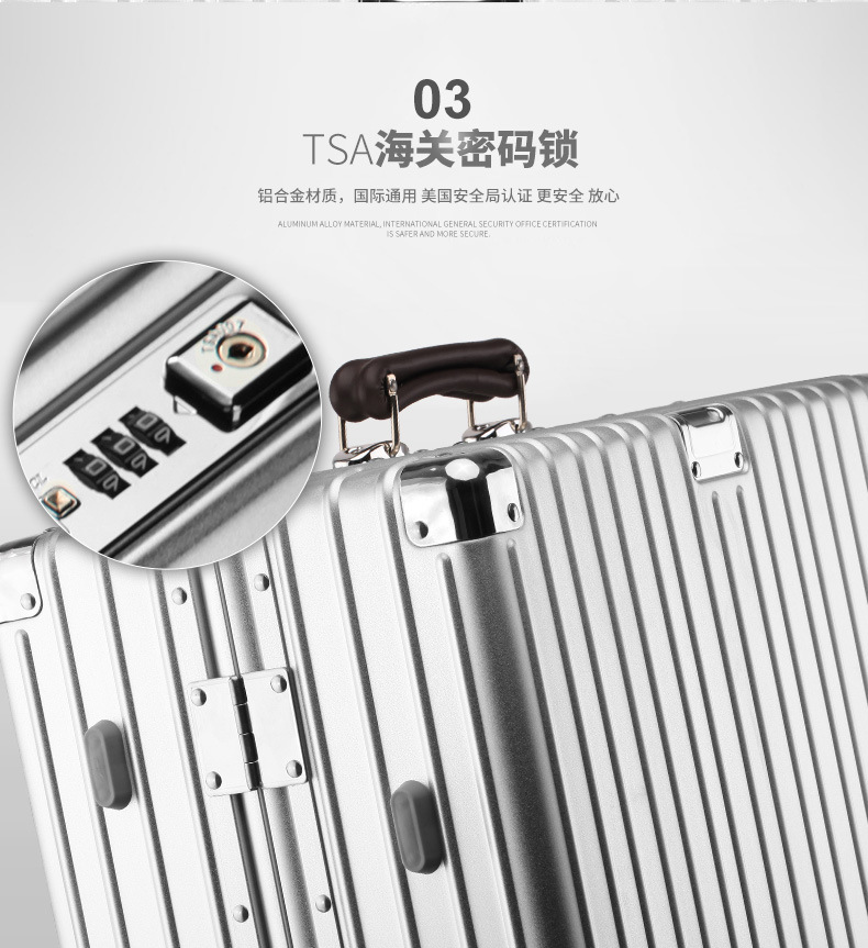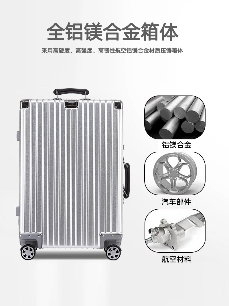올 알루미늄-마그네슘 합금 여행가방, 트롤리 캐리어, 비밀번호 잠금 기능이 있는 기내용 캐리어, 휴대용 가죽 여행가방, 알루미늄 프레임 여행가방, 내압 및 방수 기능