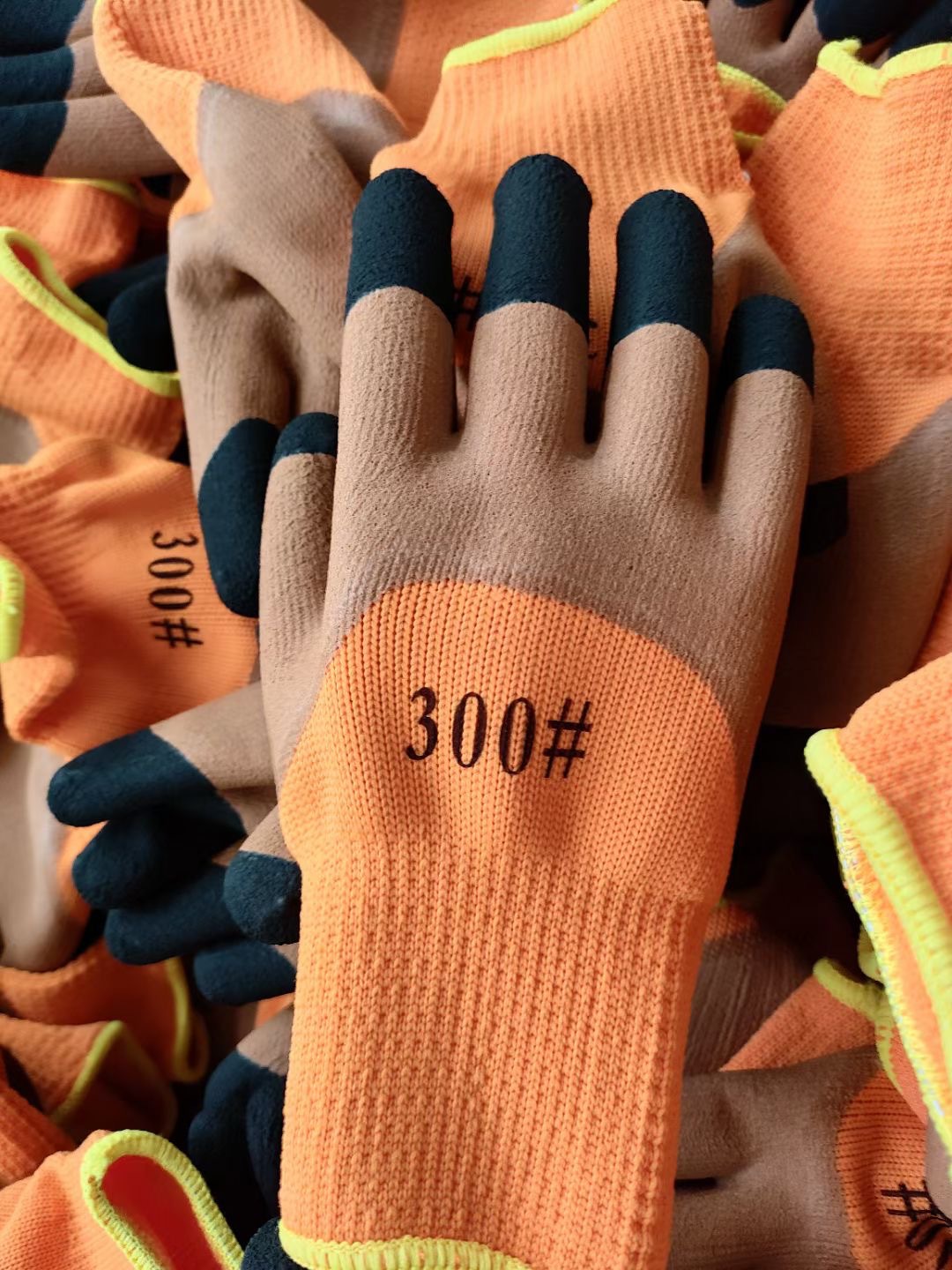 노란색과 검은색 니트릴 강화 손가락 장갑